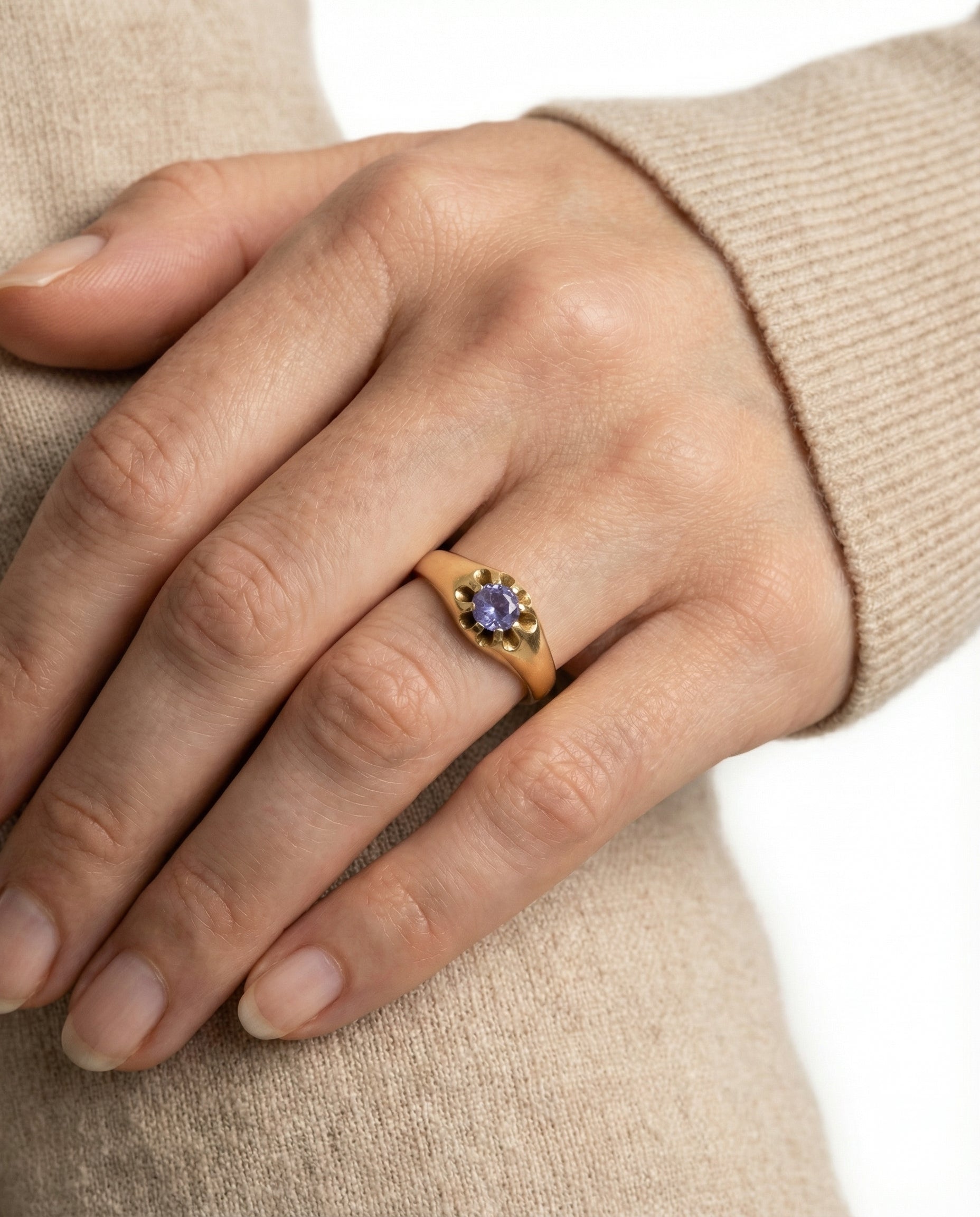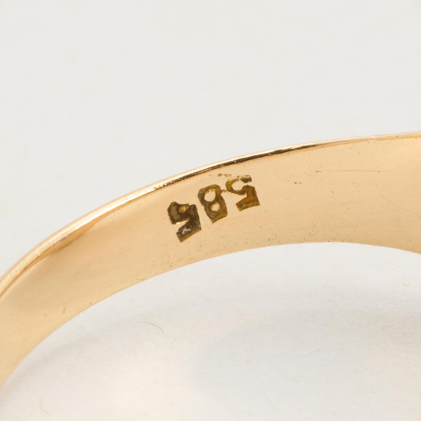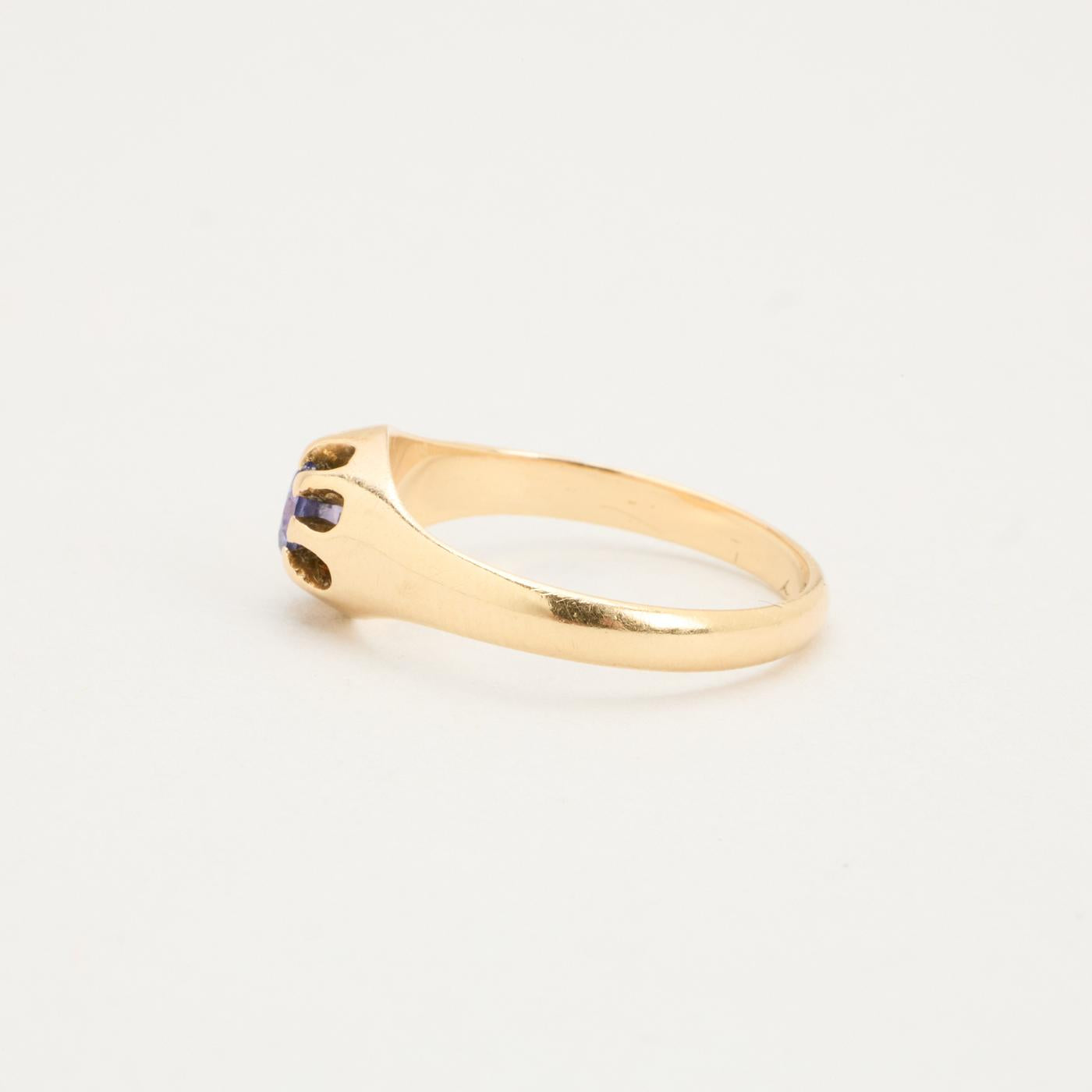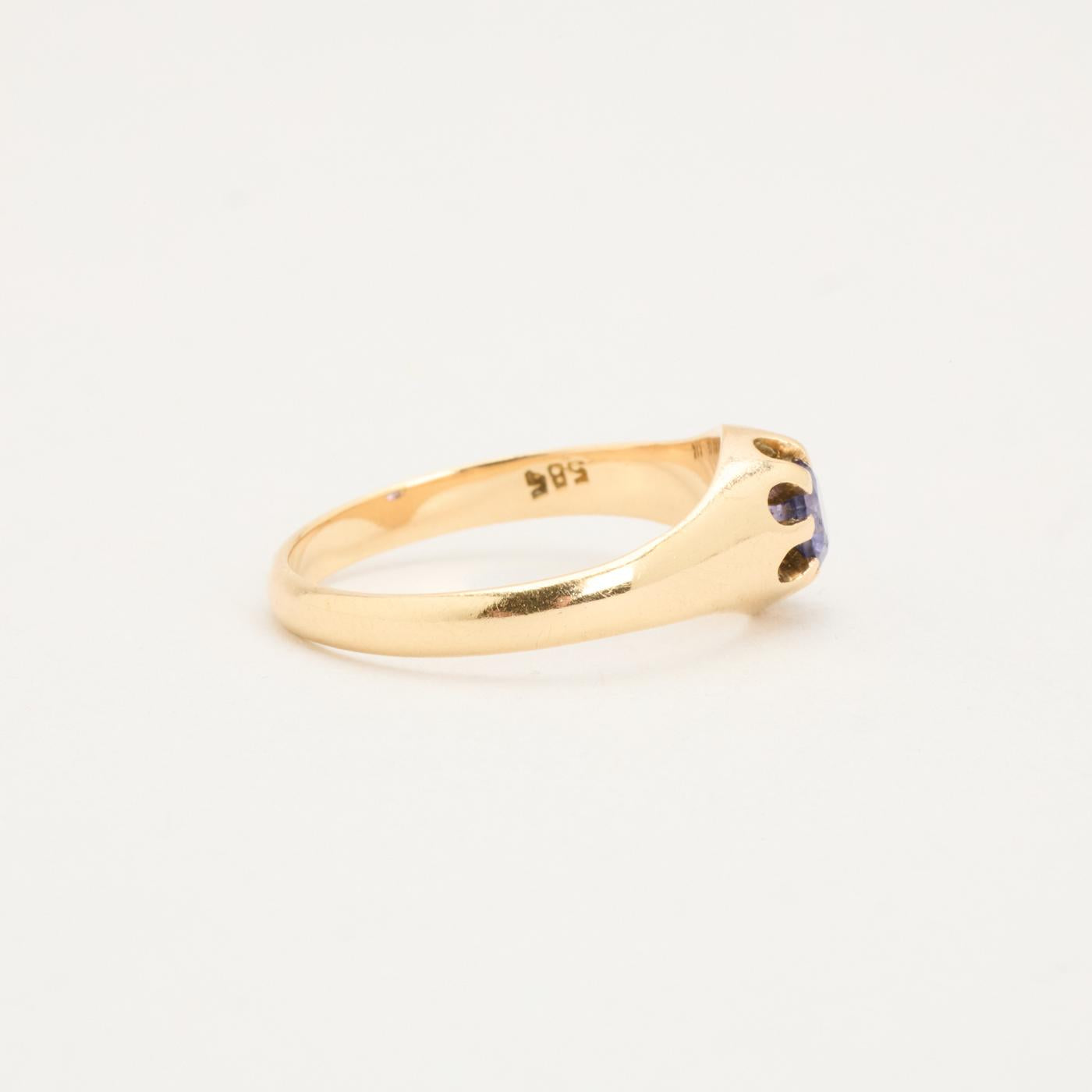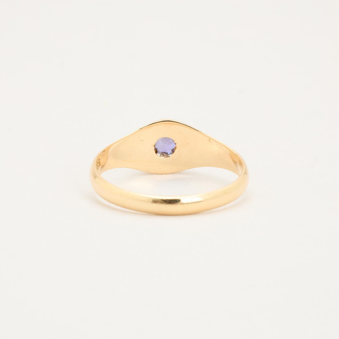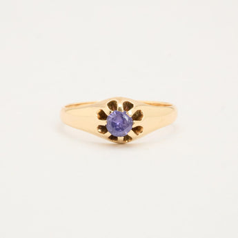 Gypsyring i 14K guld med lilla sten, Str. 53