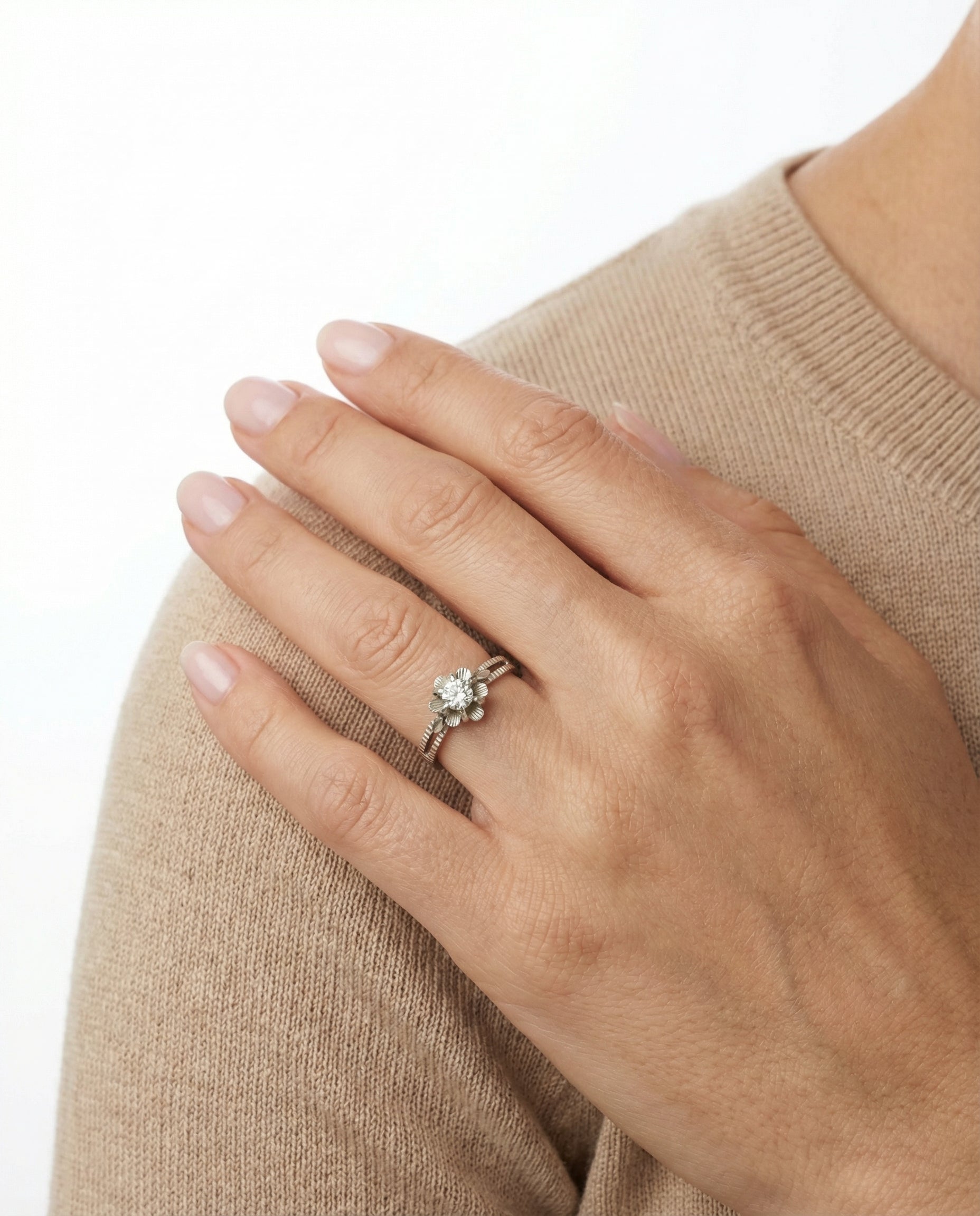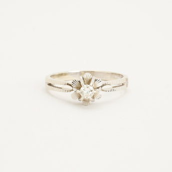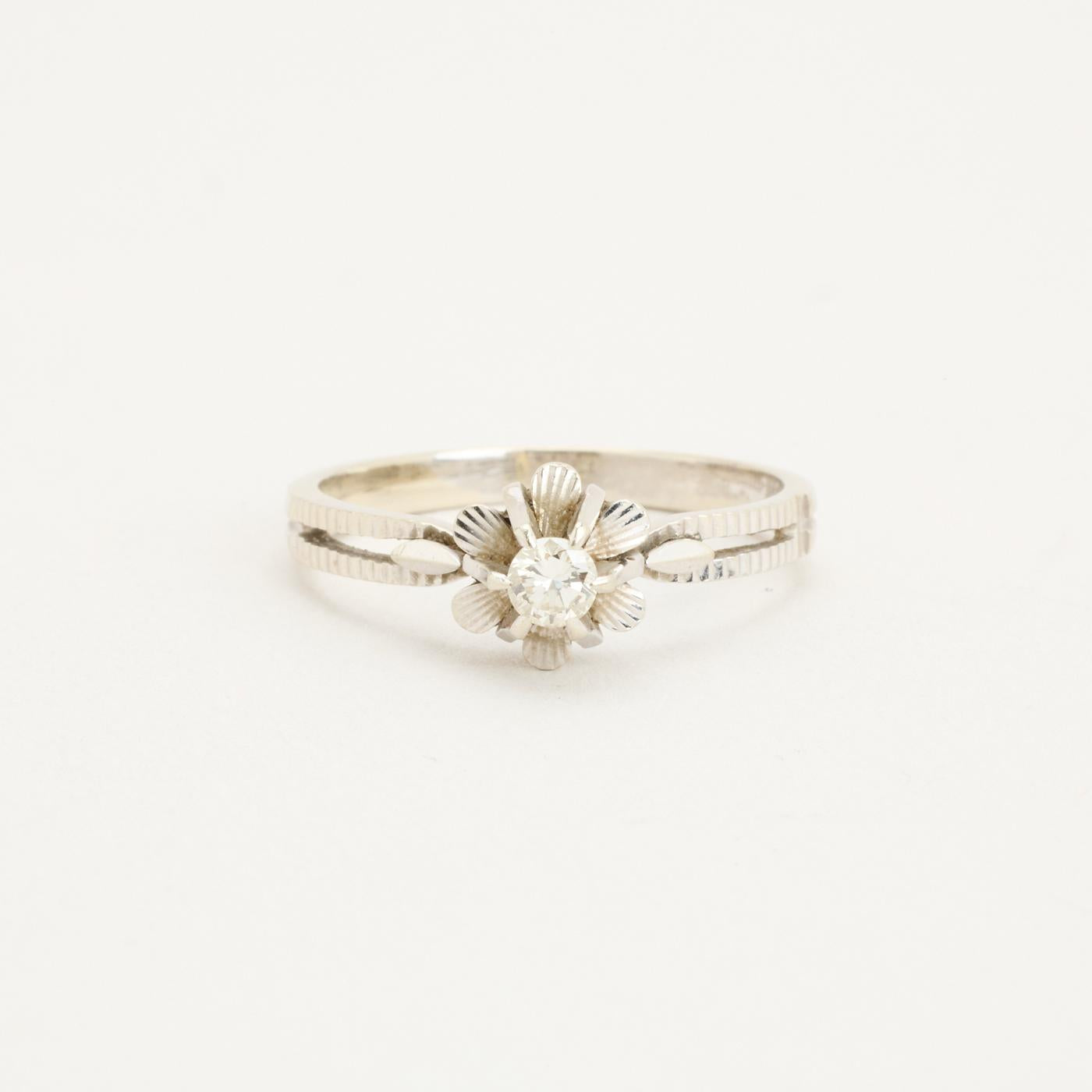 Blomsterring i 18K hvidguld med en diamant (0.16 ct), Str. 57