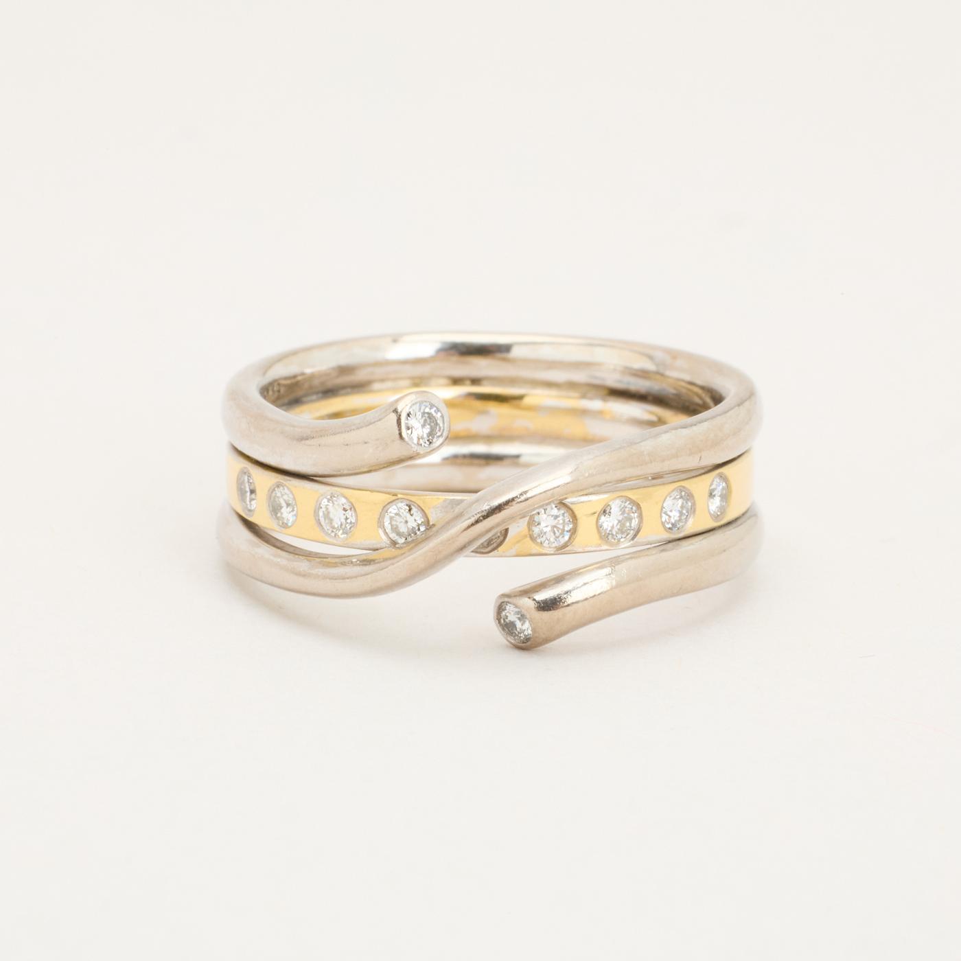 Georg Jensen Magic Crossoverring med diamant i 18 karat str. 57