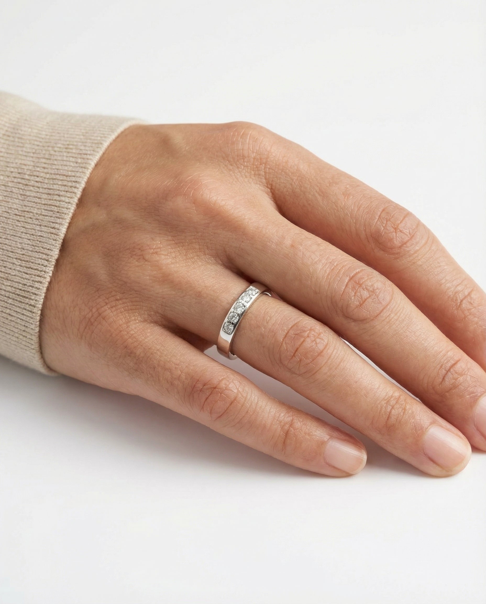 Alliancering i 14K hvidguld med diamanter (0.09 ct), Str. 60