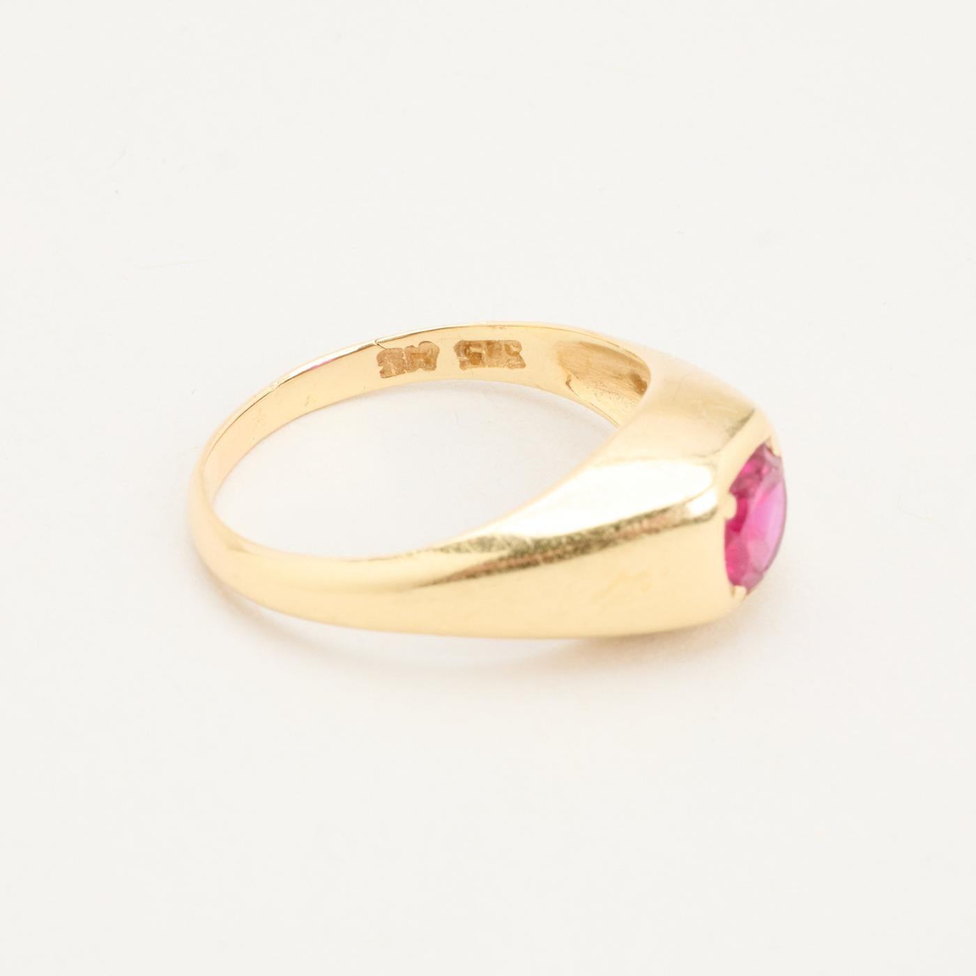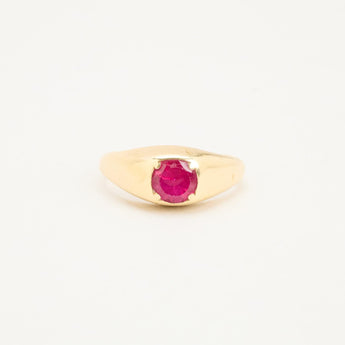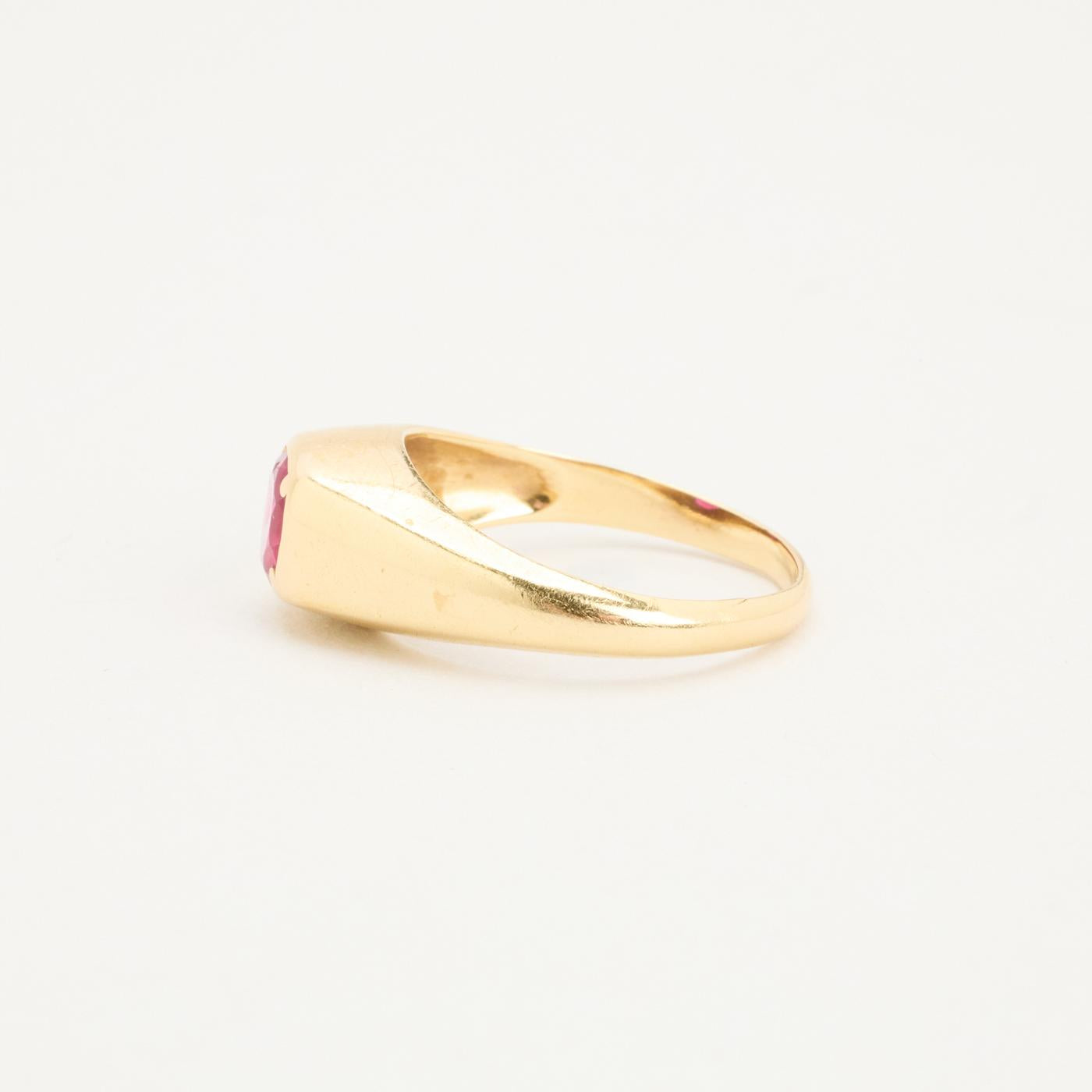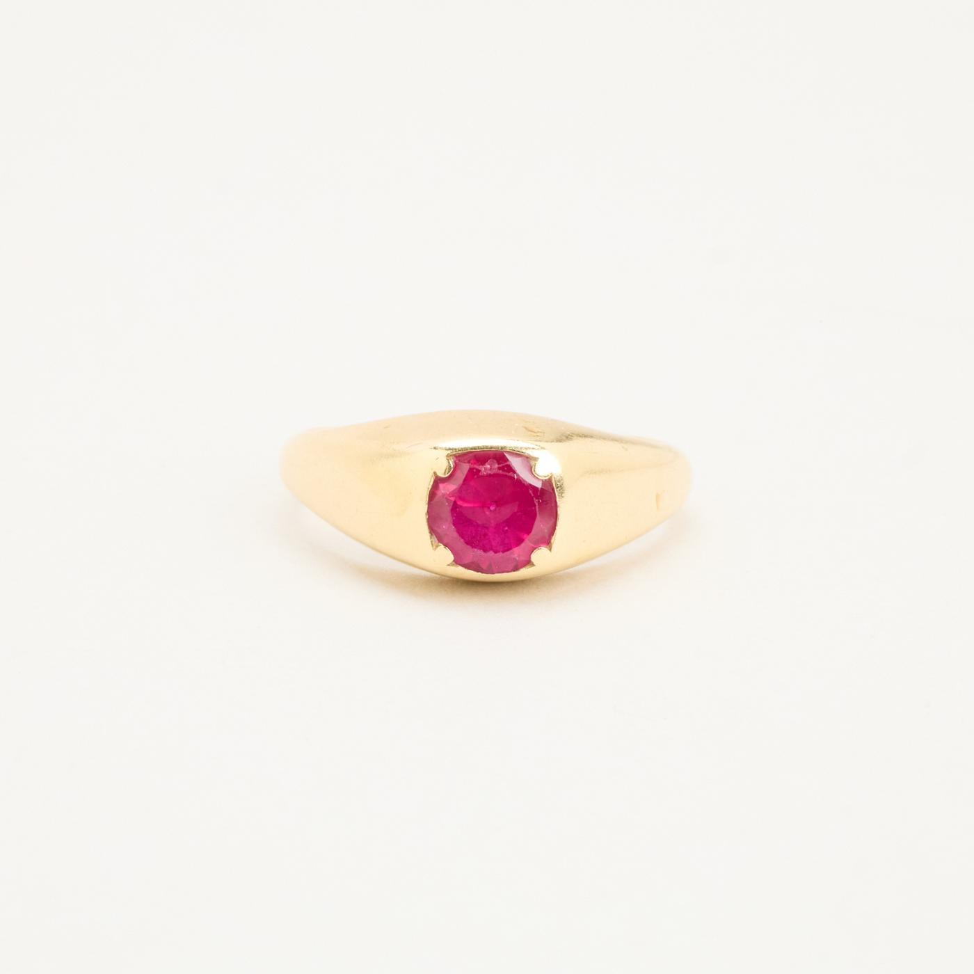 Signetring i 14 karat med rød sten str. 56