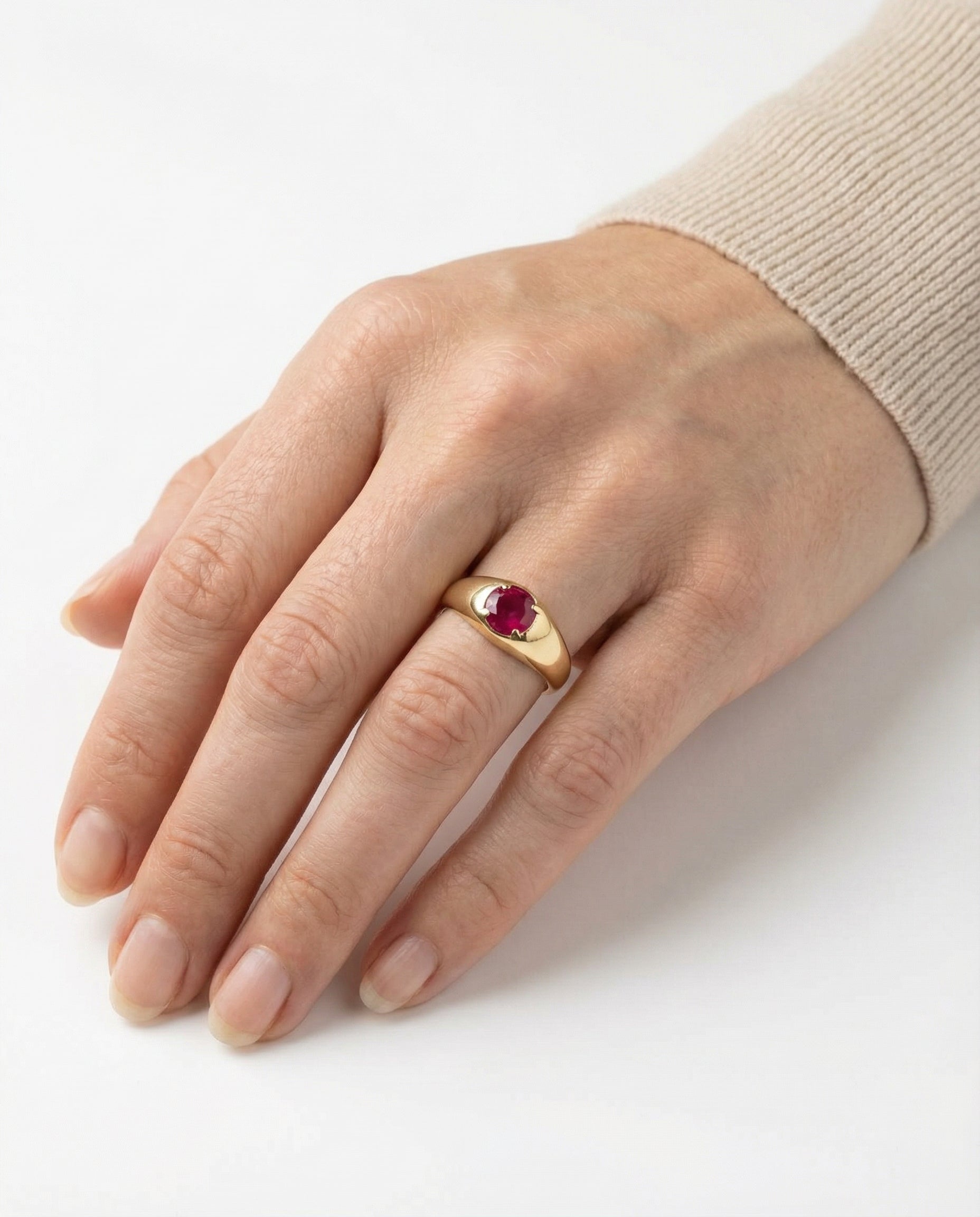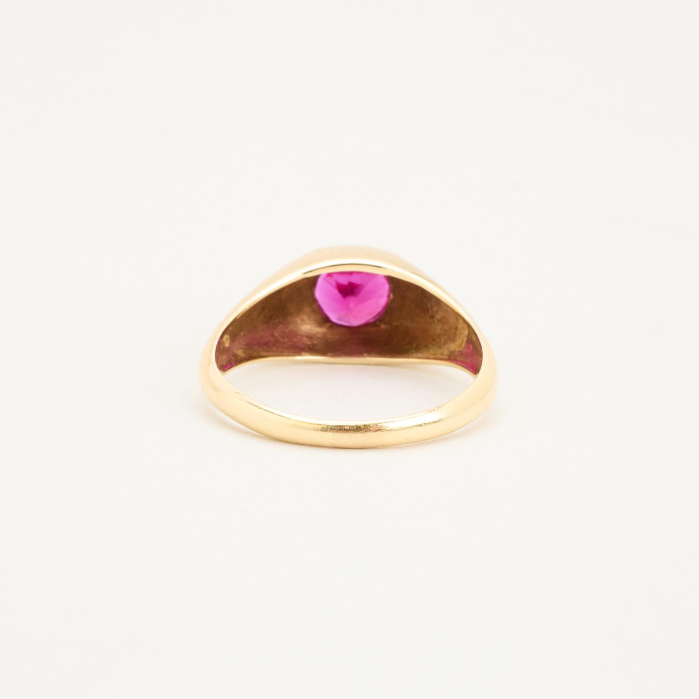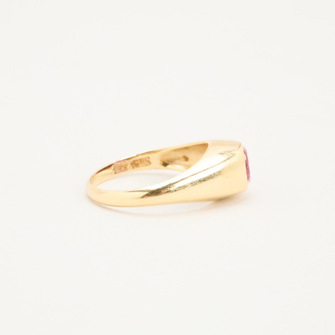 Signetring i 14 karat med rød sten str. 56
