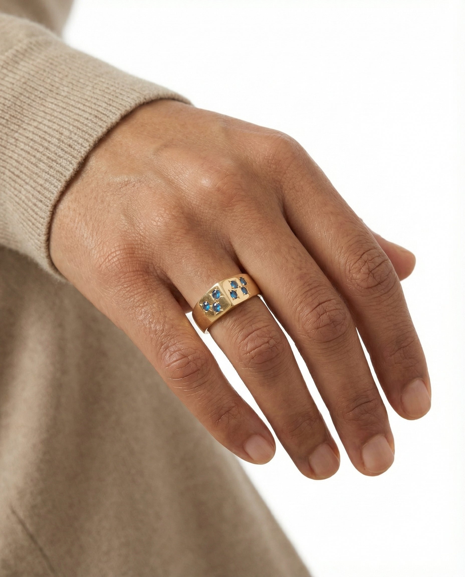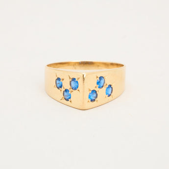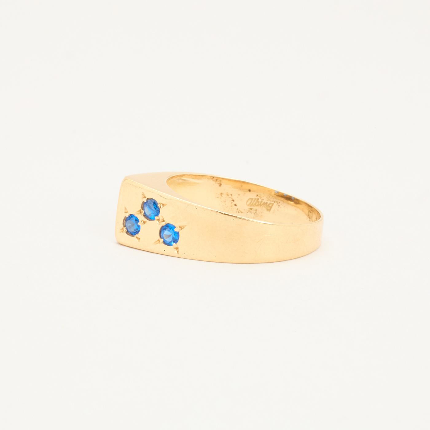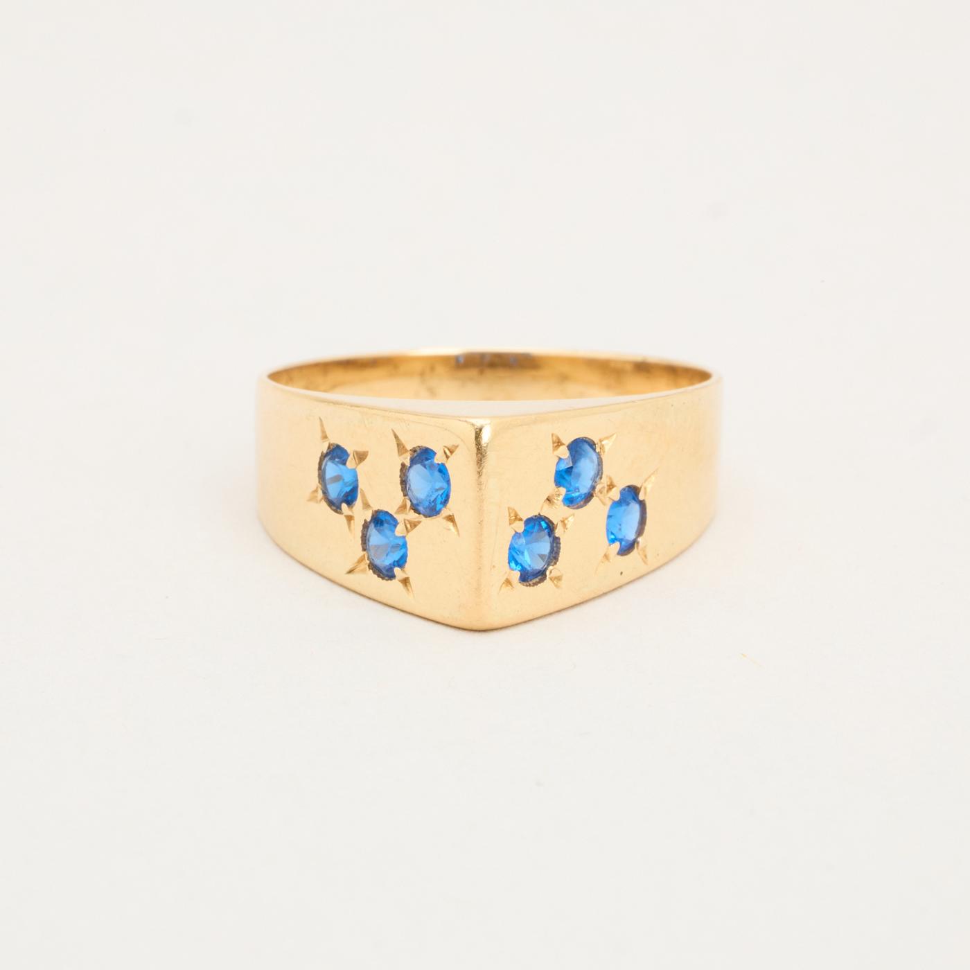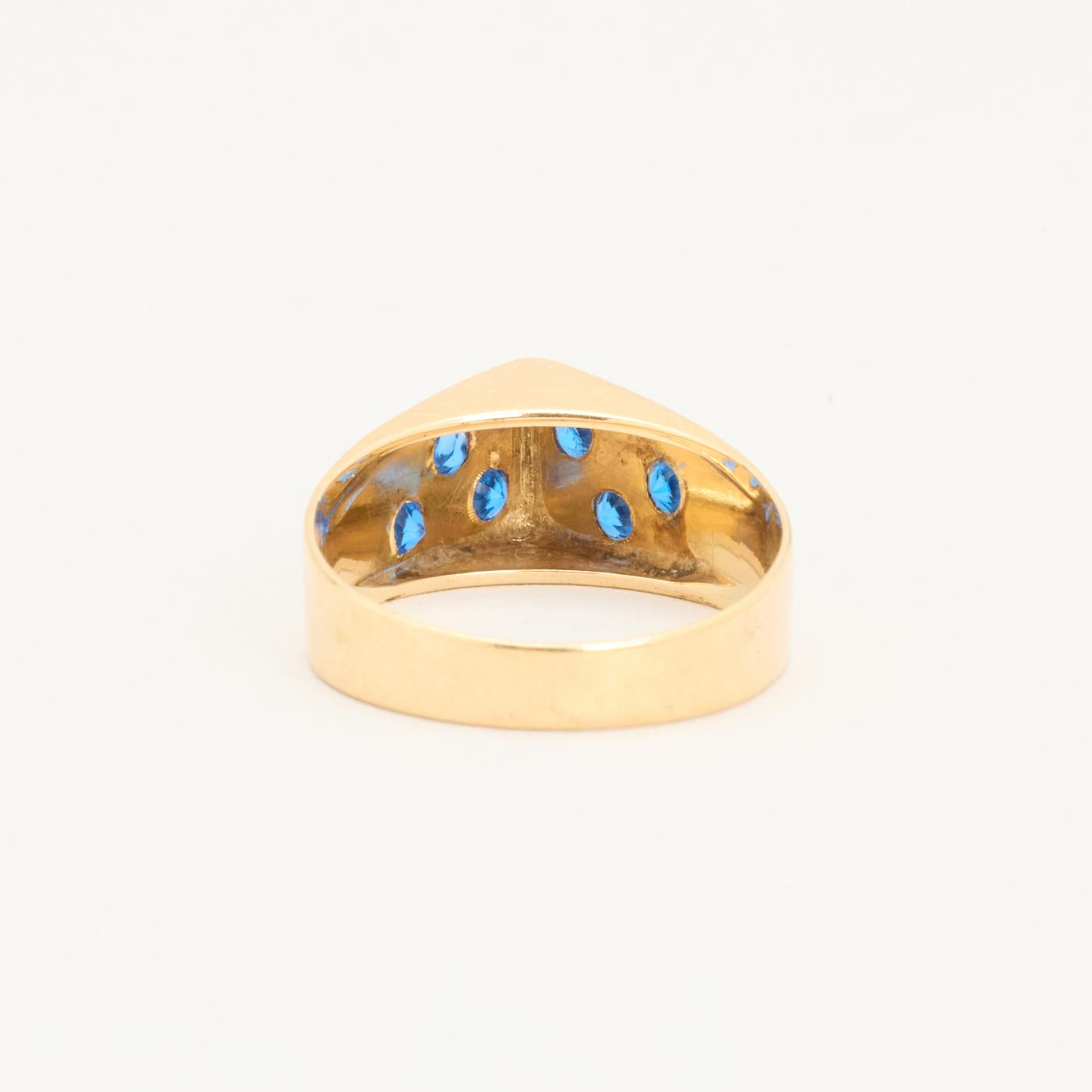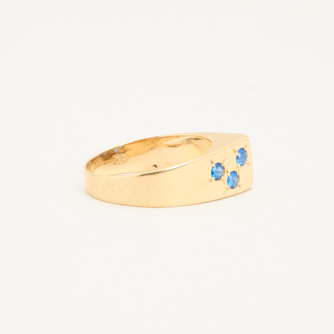 Statement ring i 14K guld med blå sten, str. 53, 2.8 g