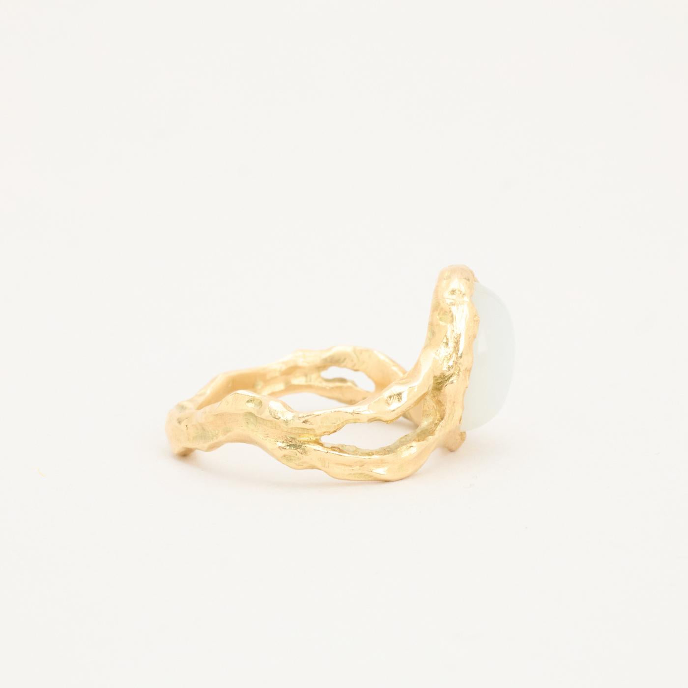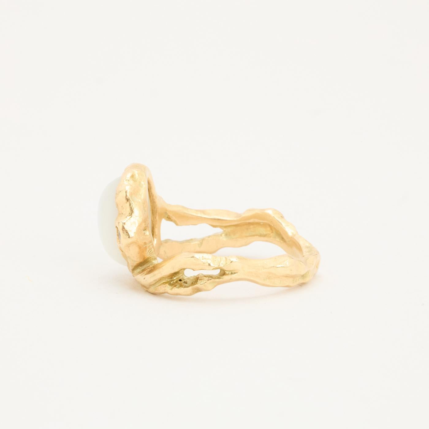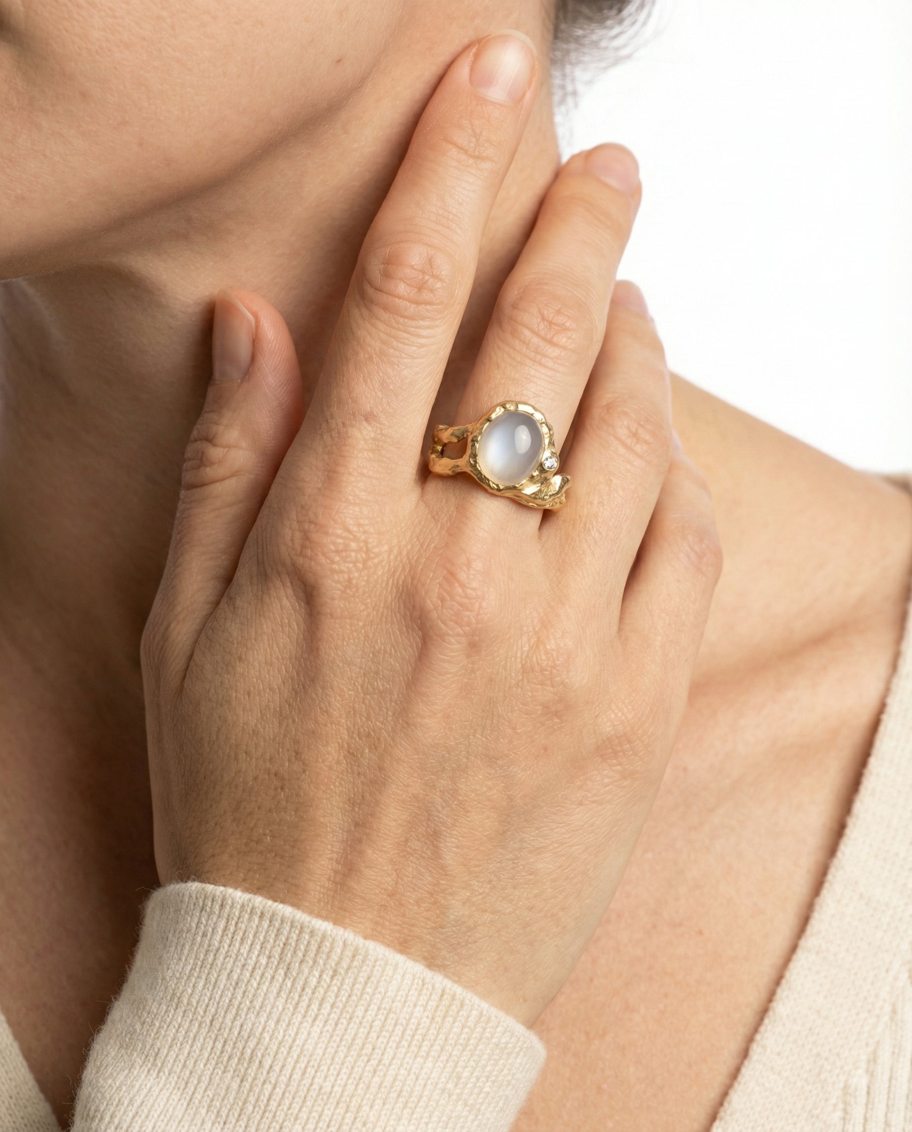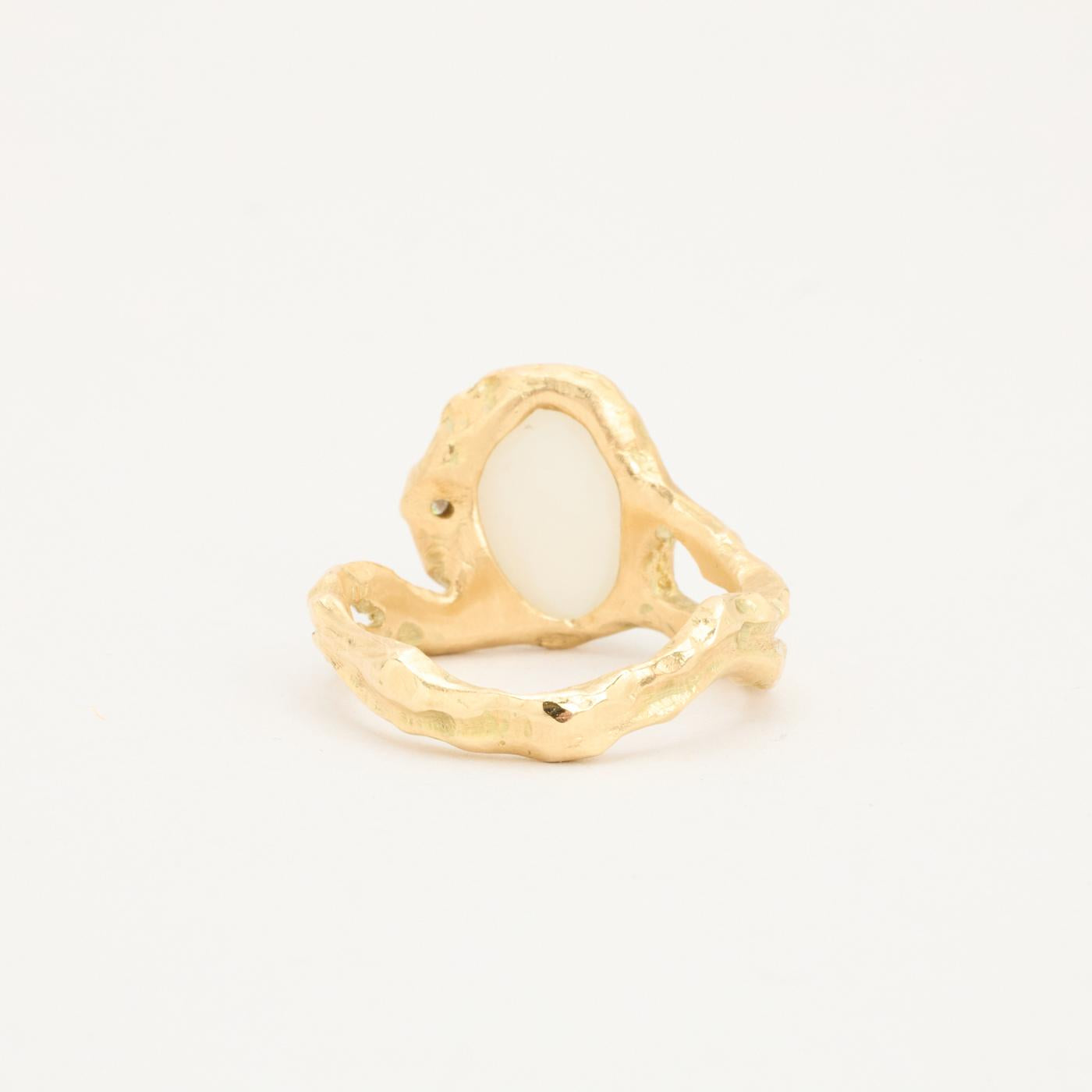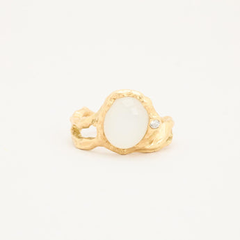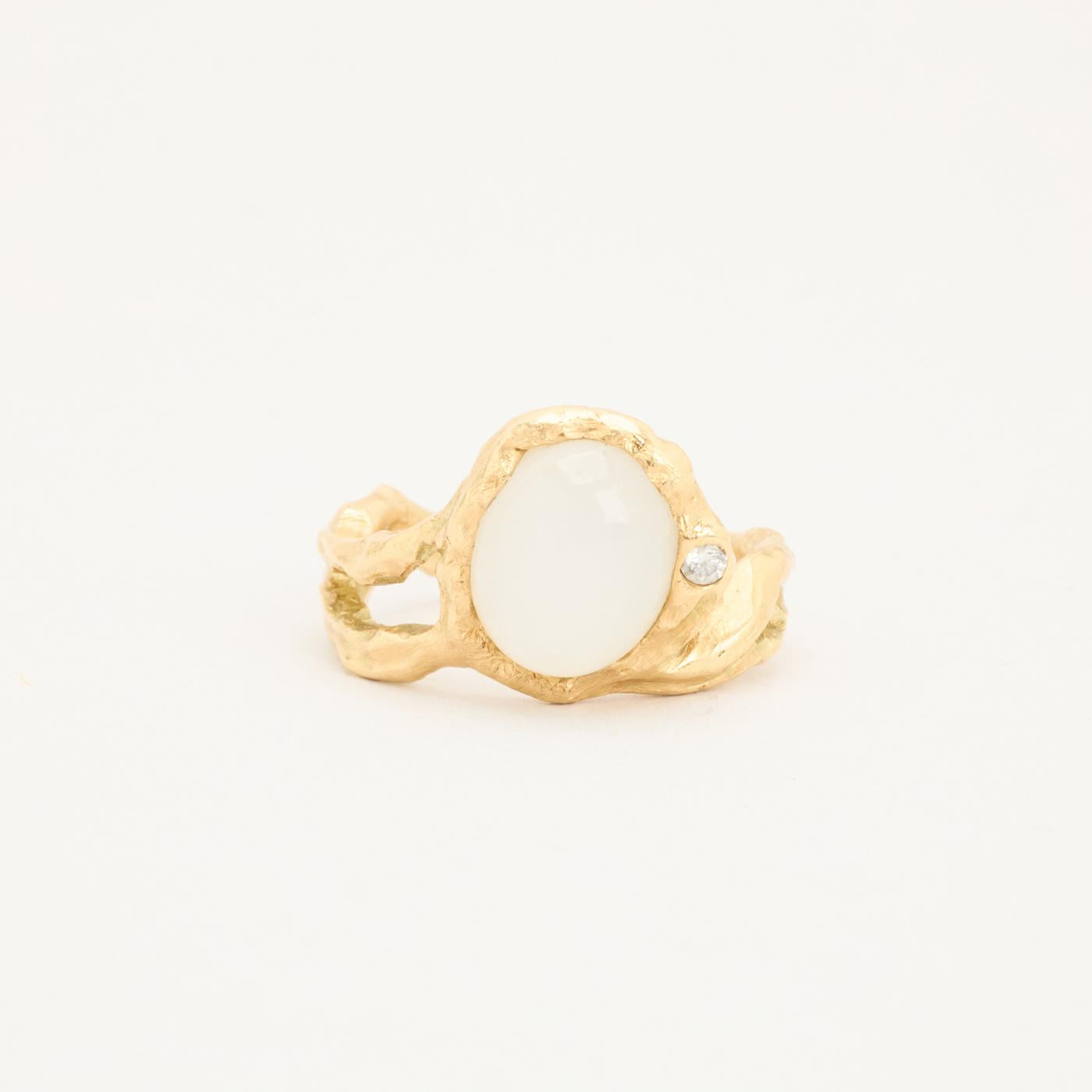 Cocktailring i 14K guld med en diamant (0.02 ct) og en månesten, Str. 52