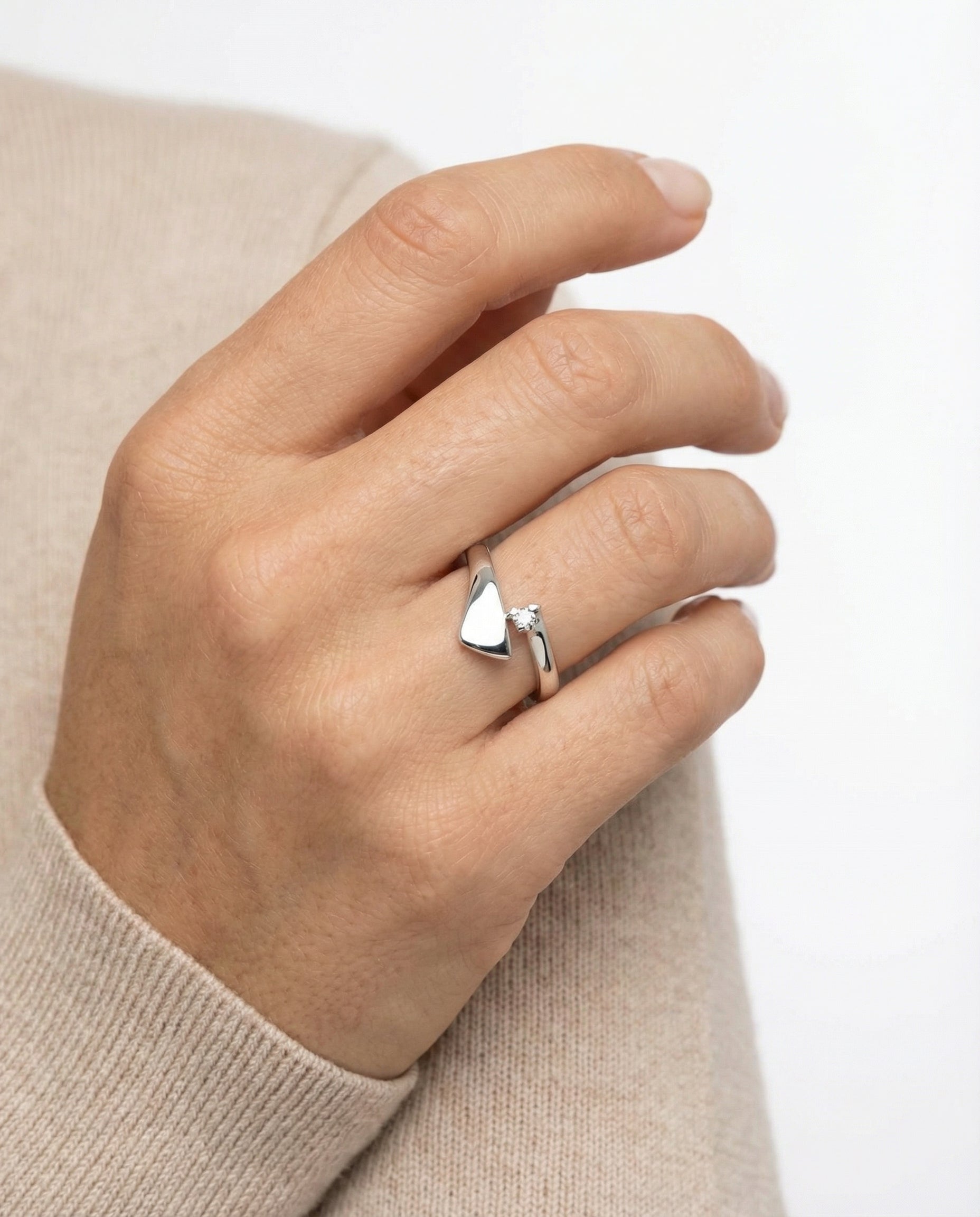 Crossoverring i 14K hvidguld med en diamant (0.02 ct), Str. 55