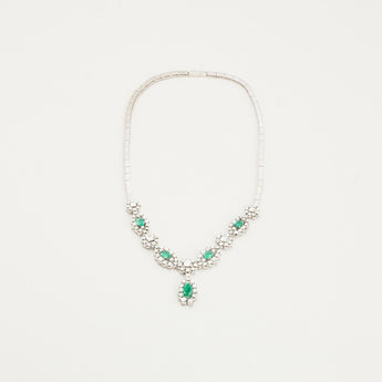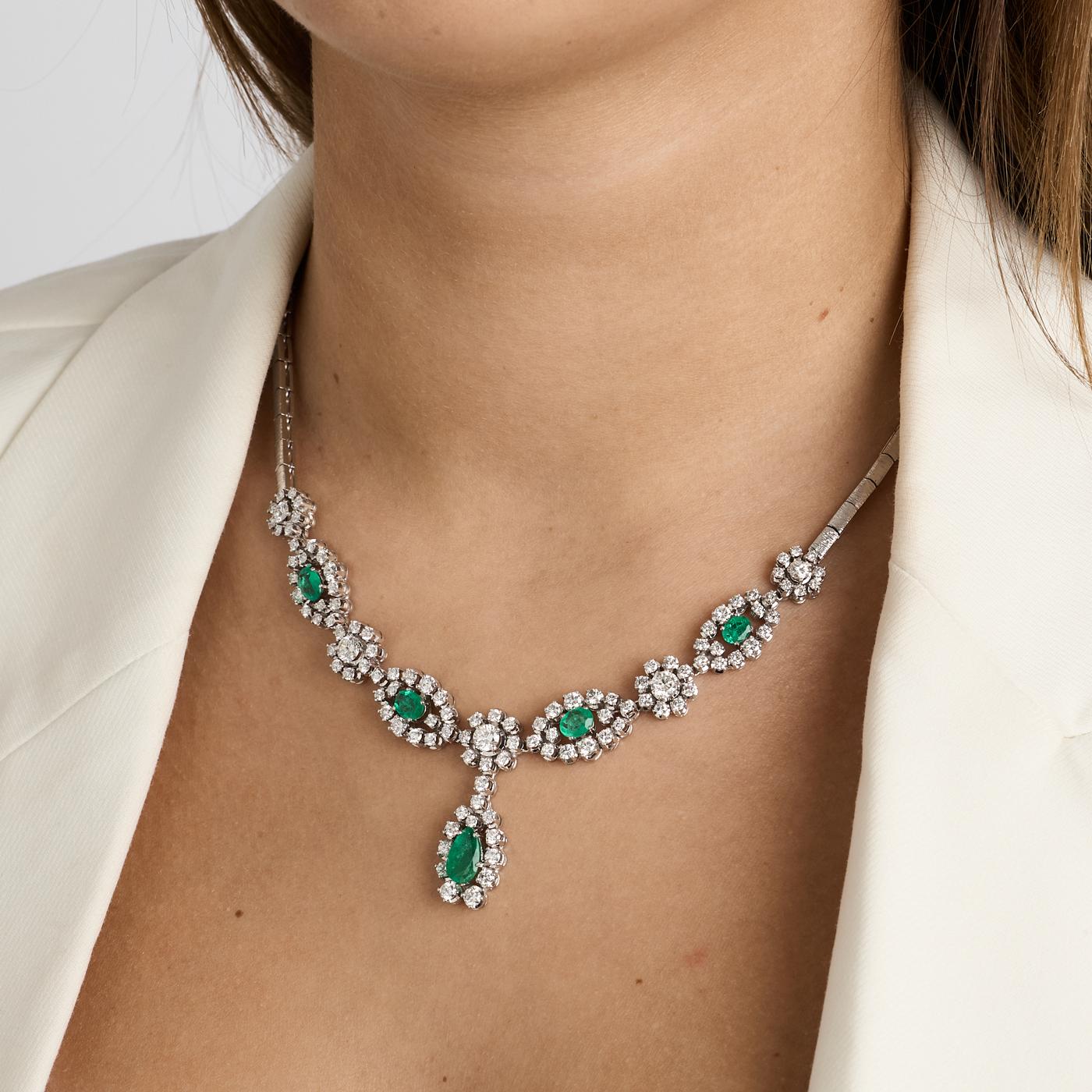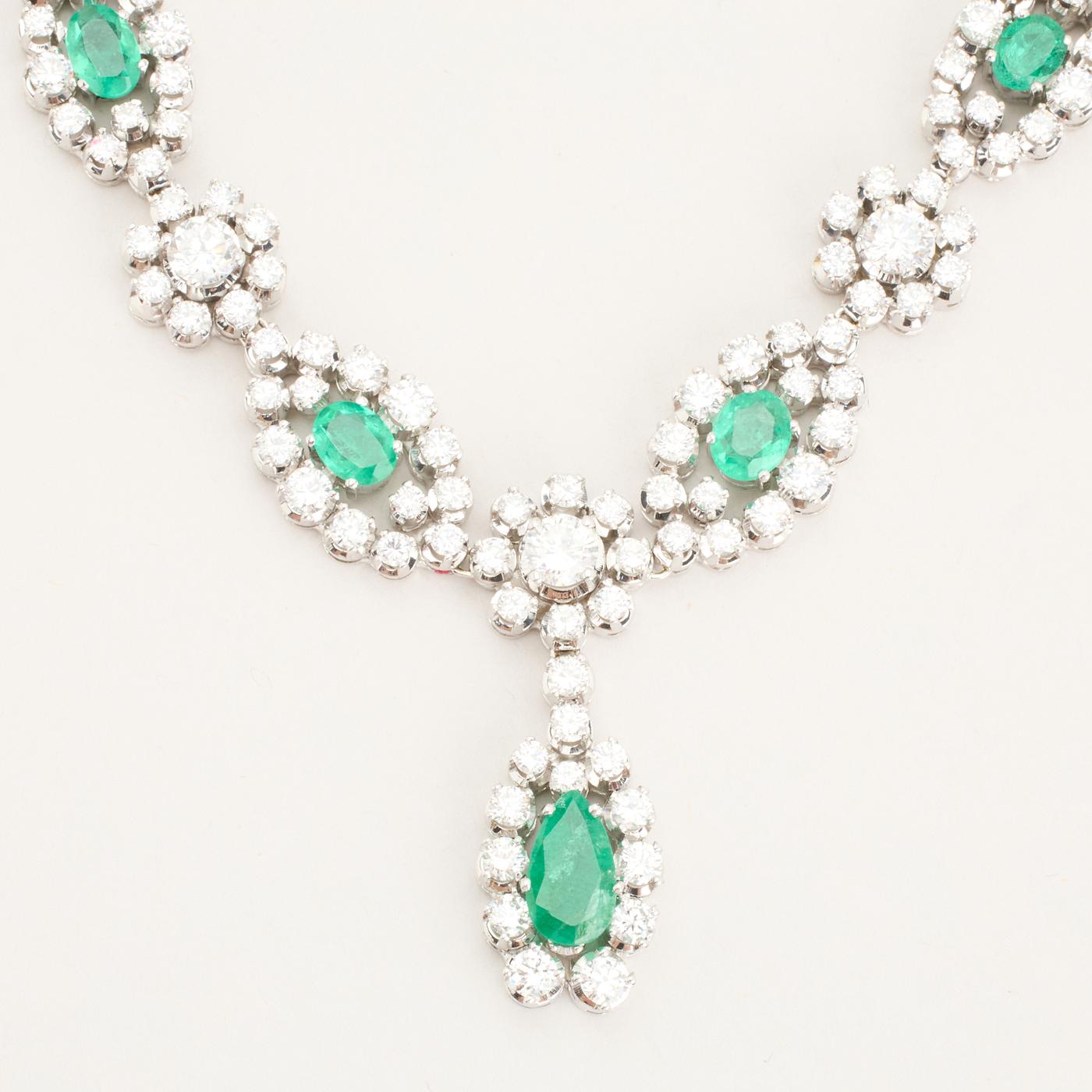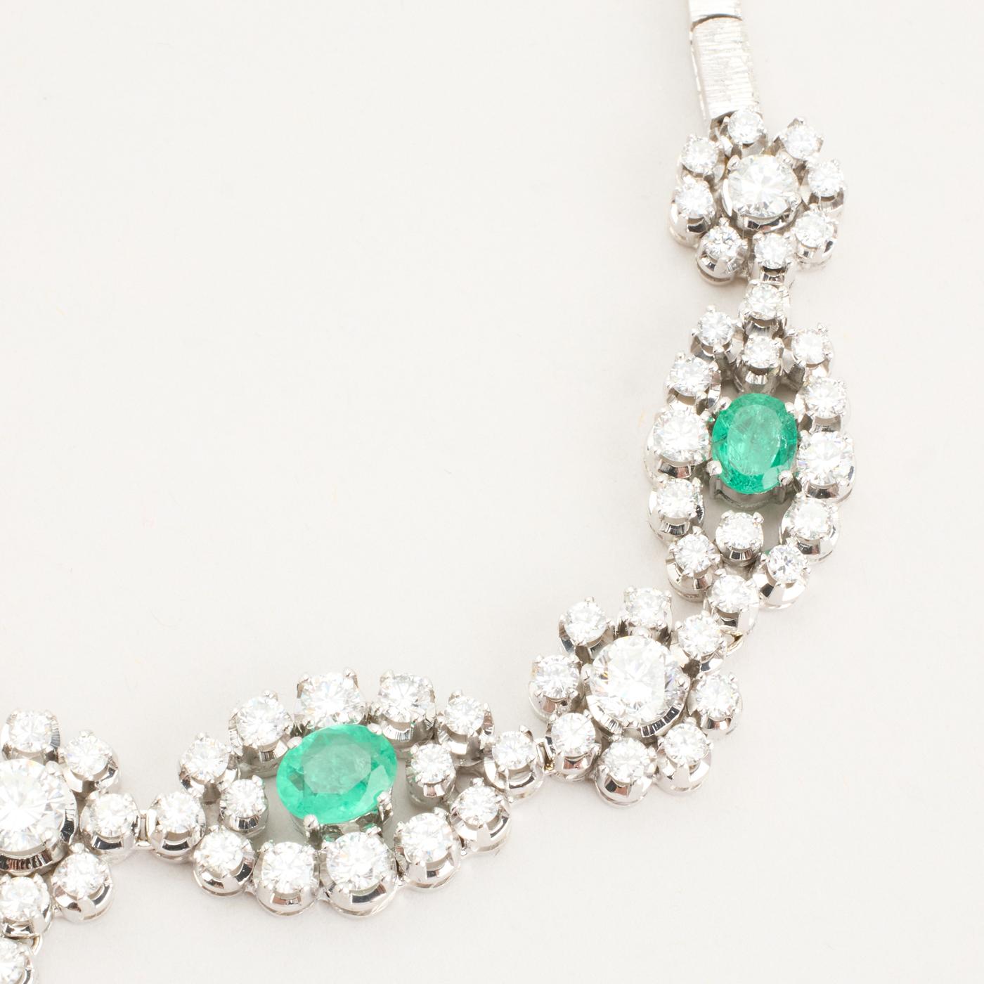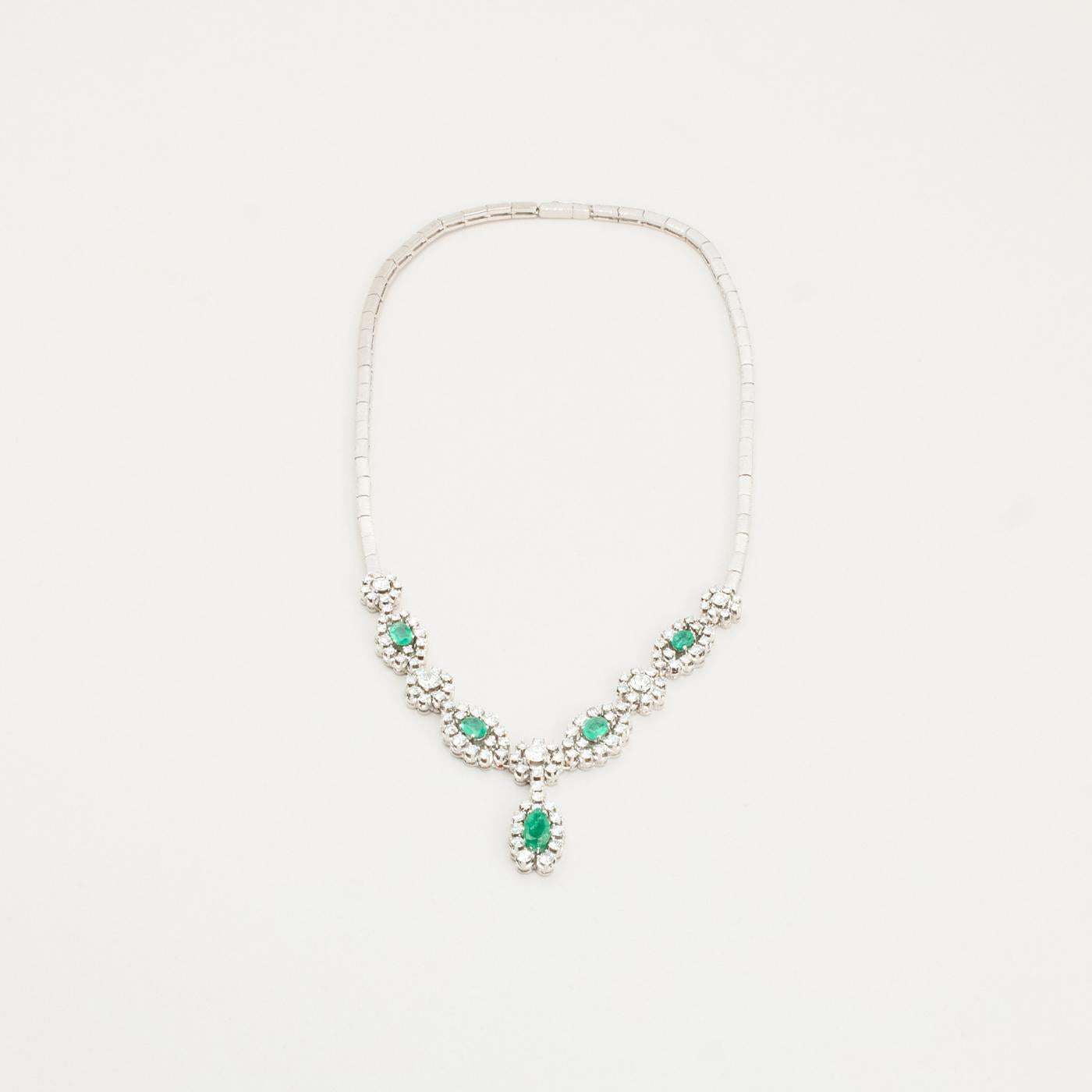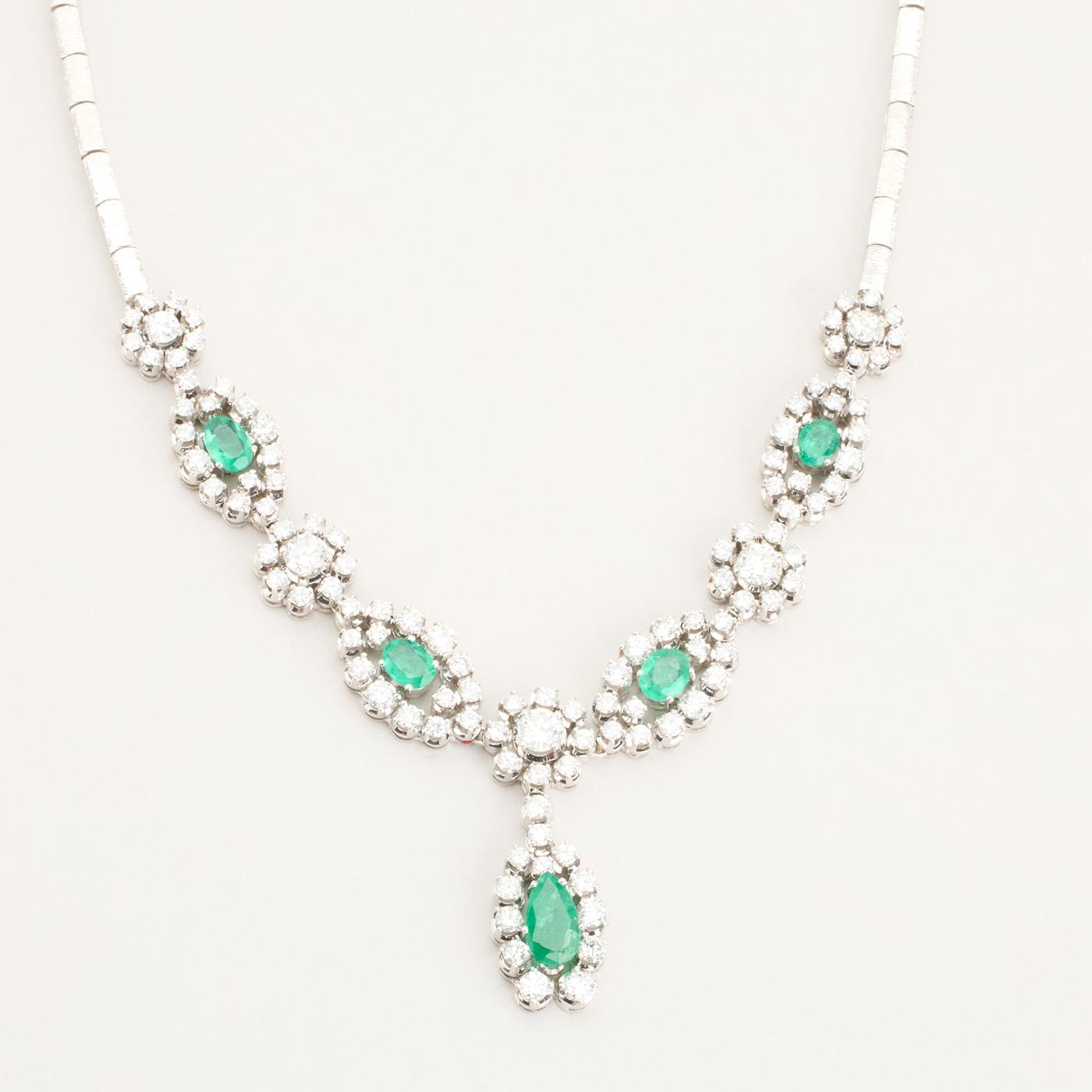 Collier i 18K hvidguld med diamanter (8.04 ct) og smaragder, 46 cm