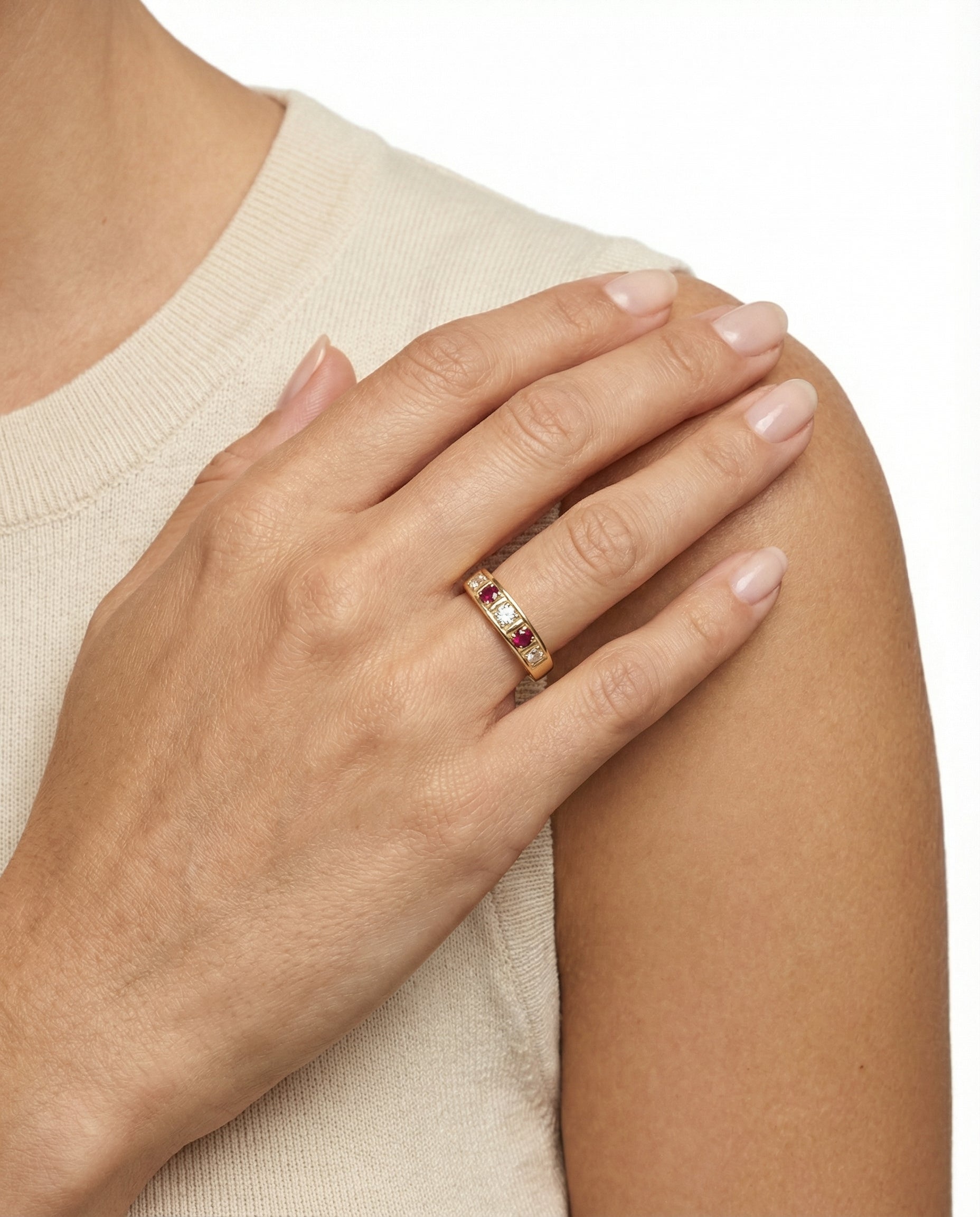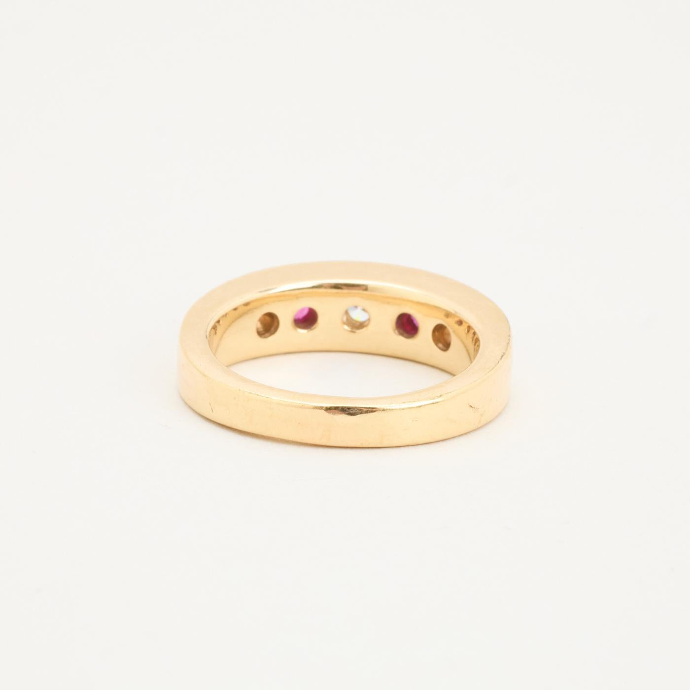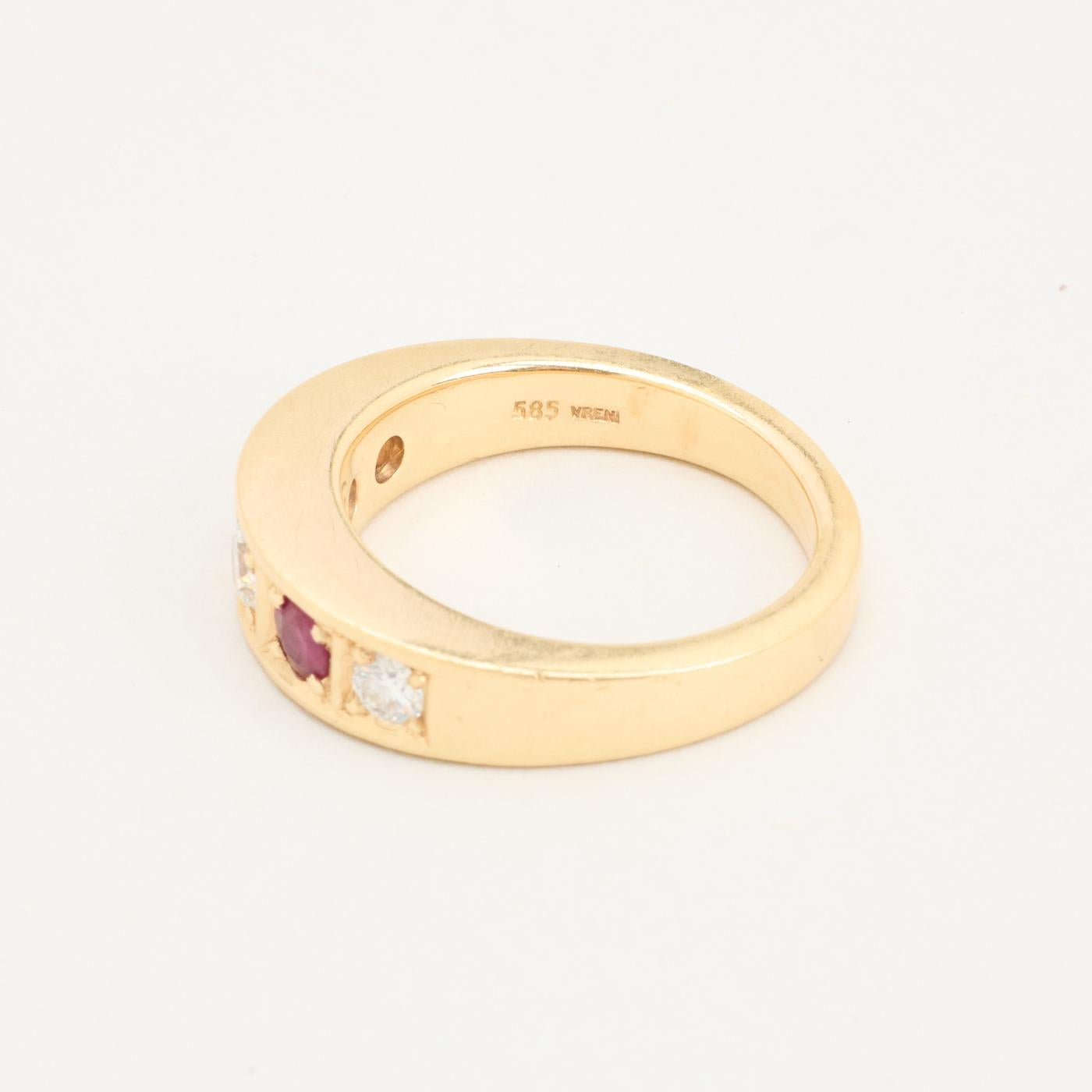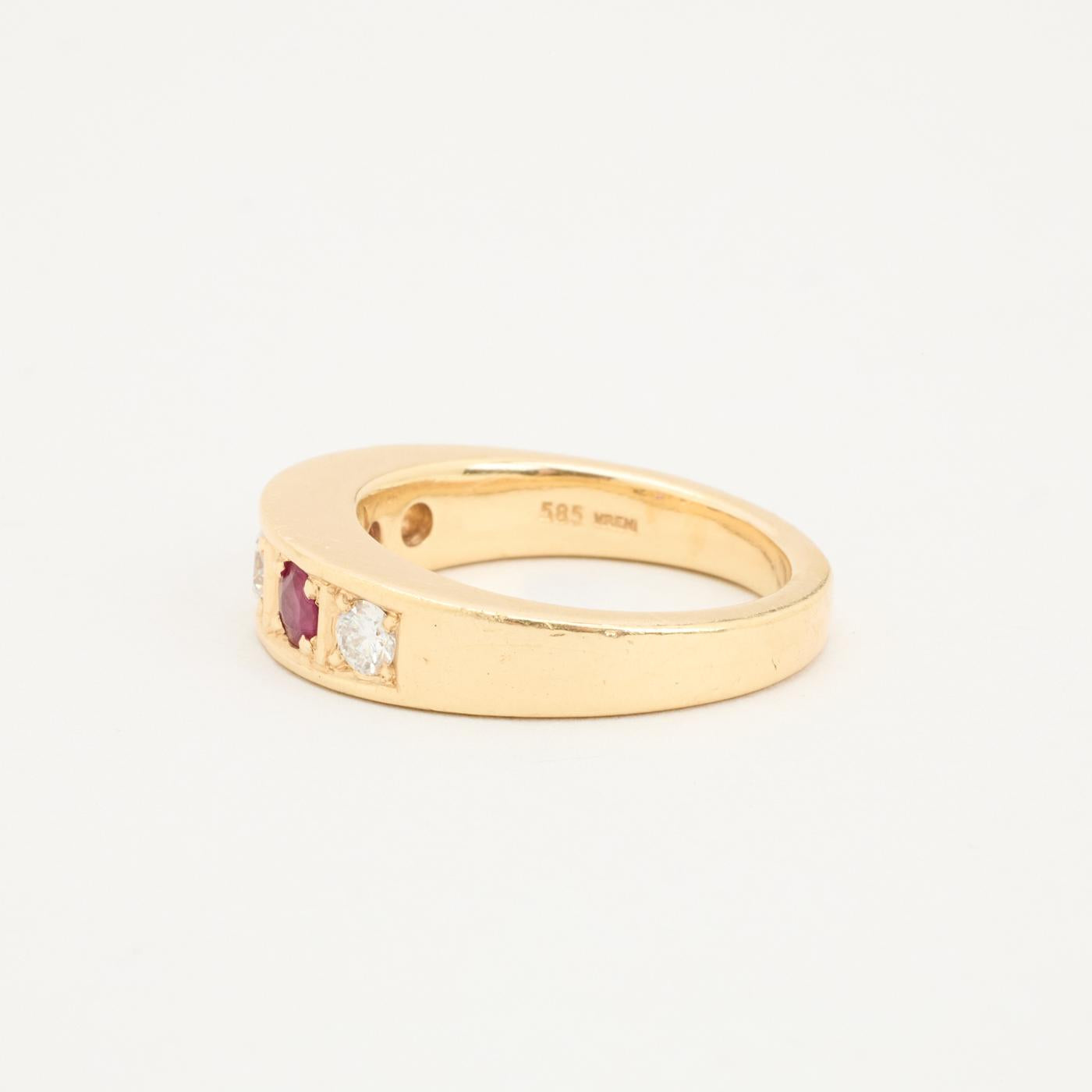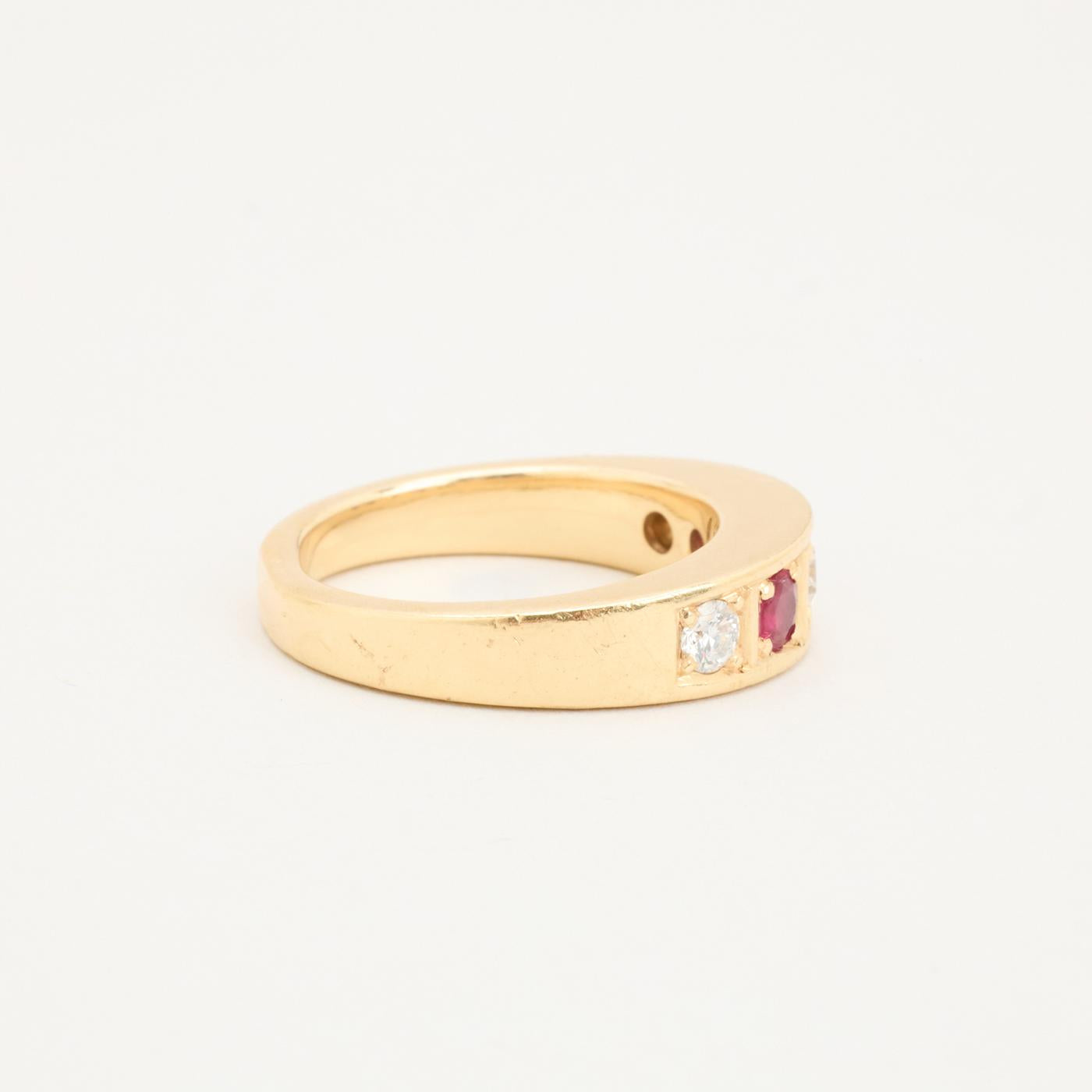 Gypsyring i 14K guld med flere diamanter (0.46 ct) og rubiner, Str. 56