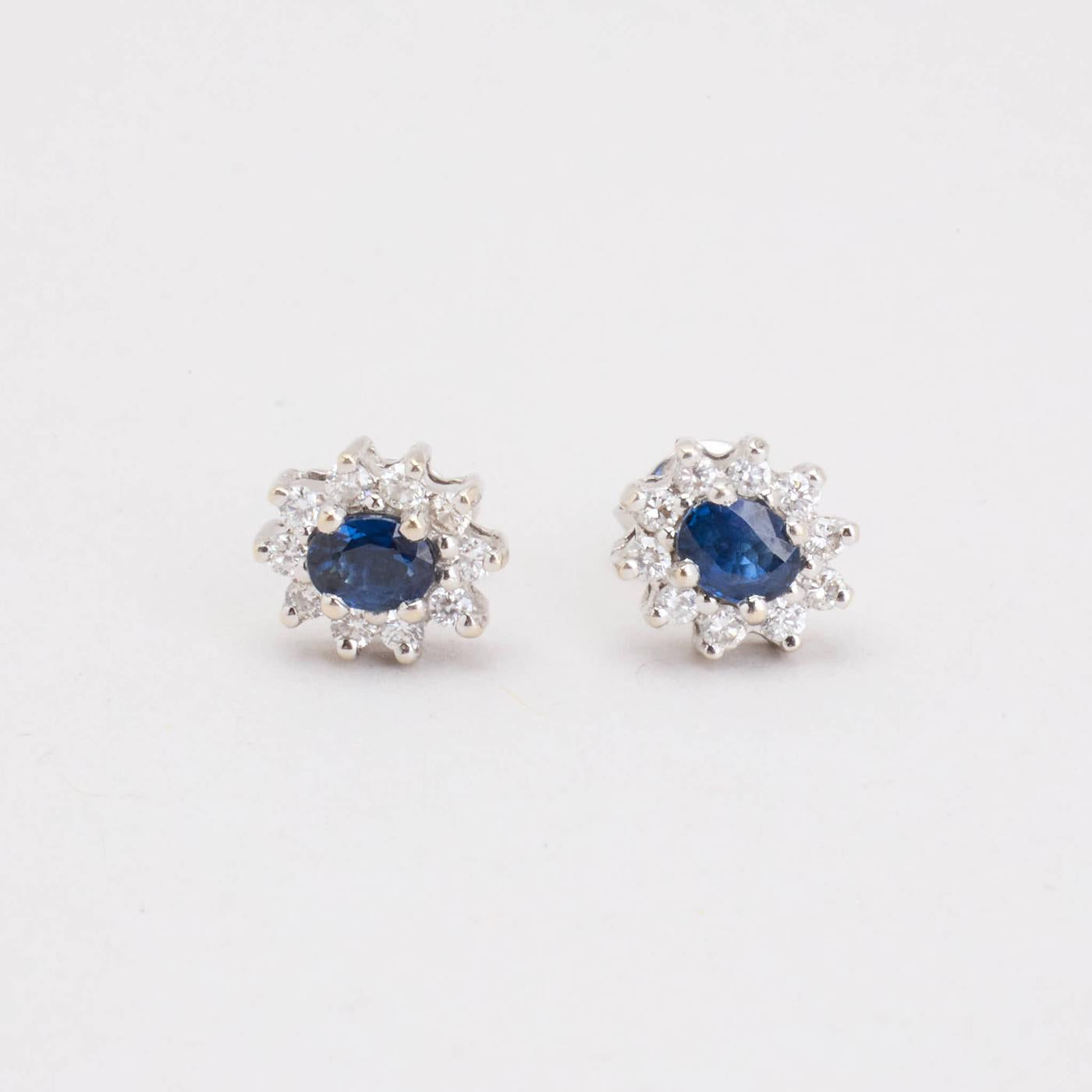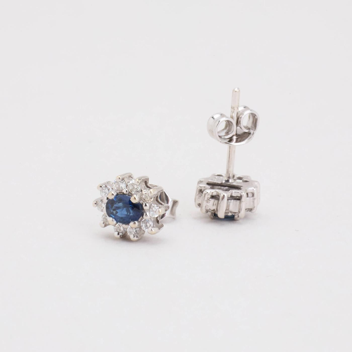 Roset øreringe med diamant (0.21 ct) i 18 karat med en Safir, 0.8 cm