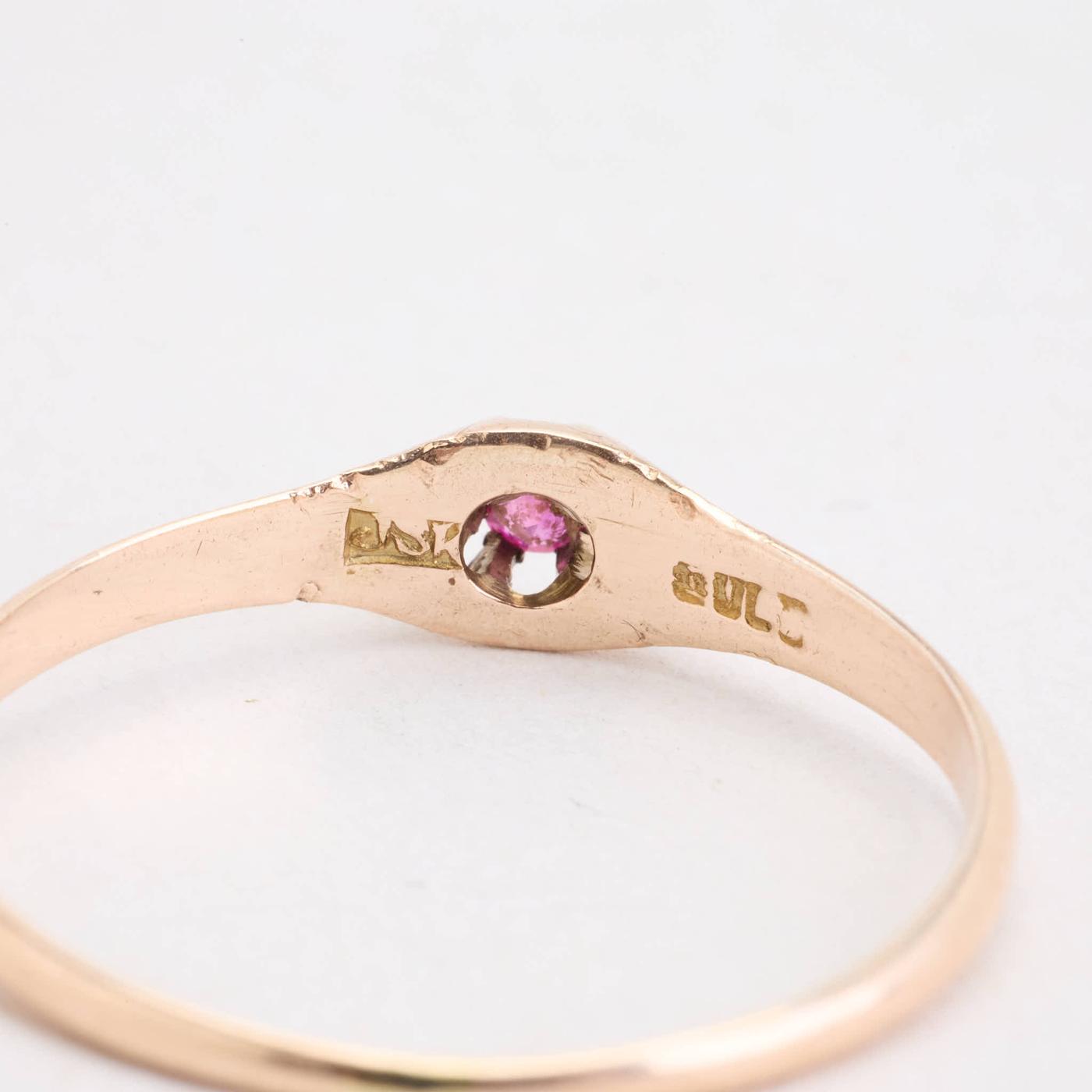 Solitairering i 8K guld med en rød sten, Str. 61, 1.2 g