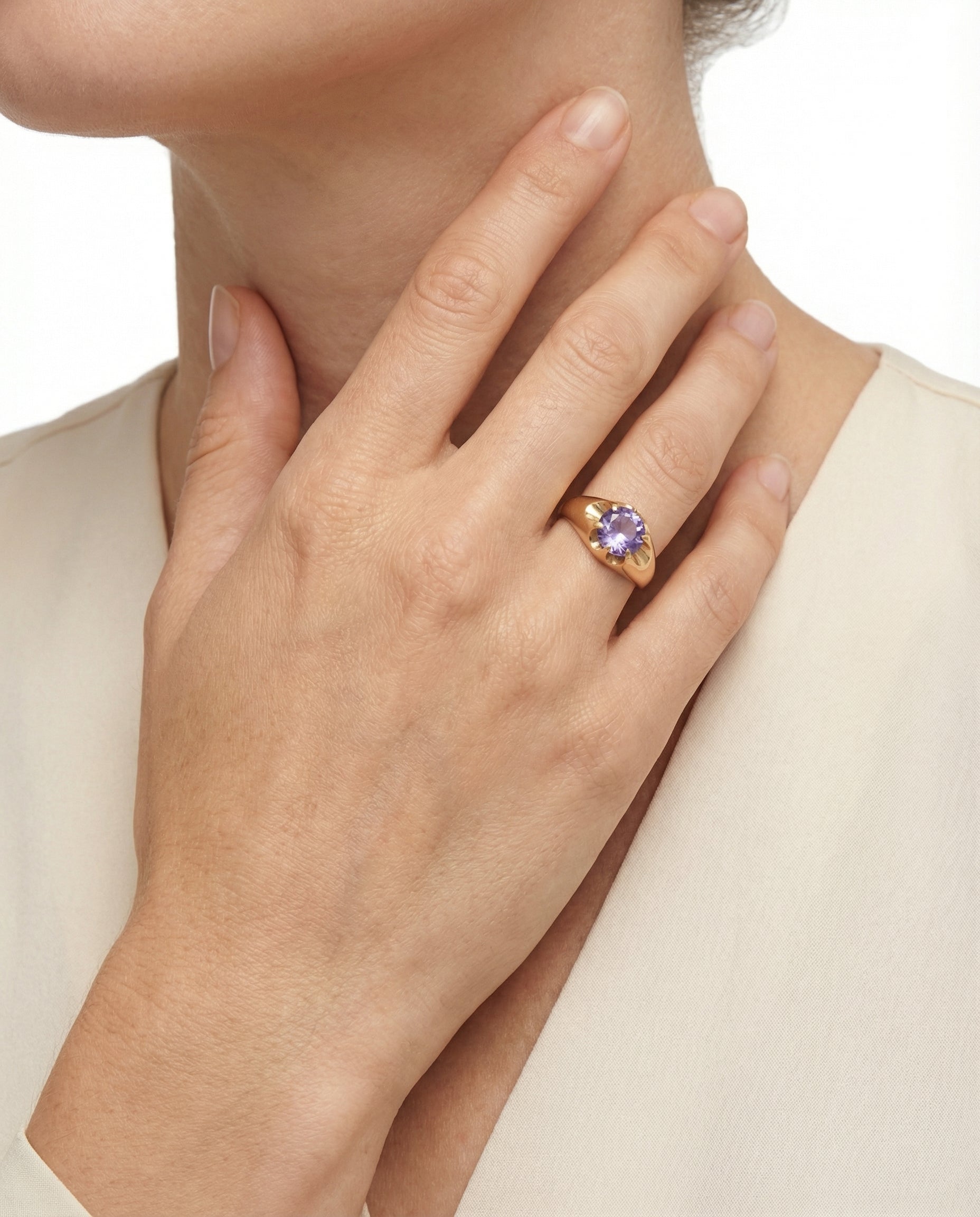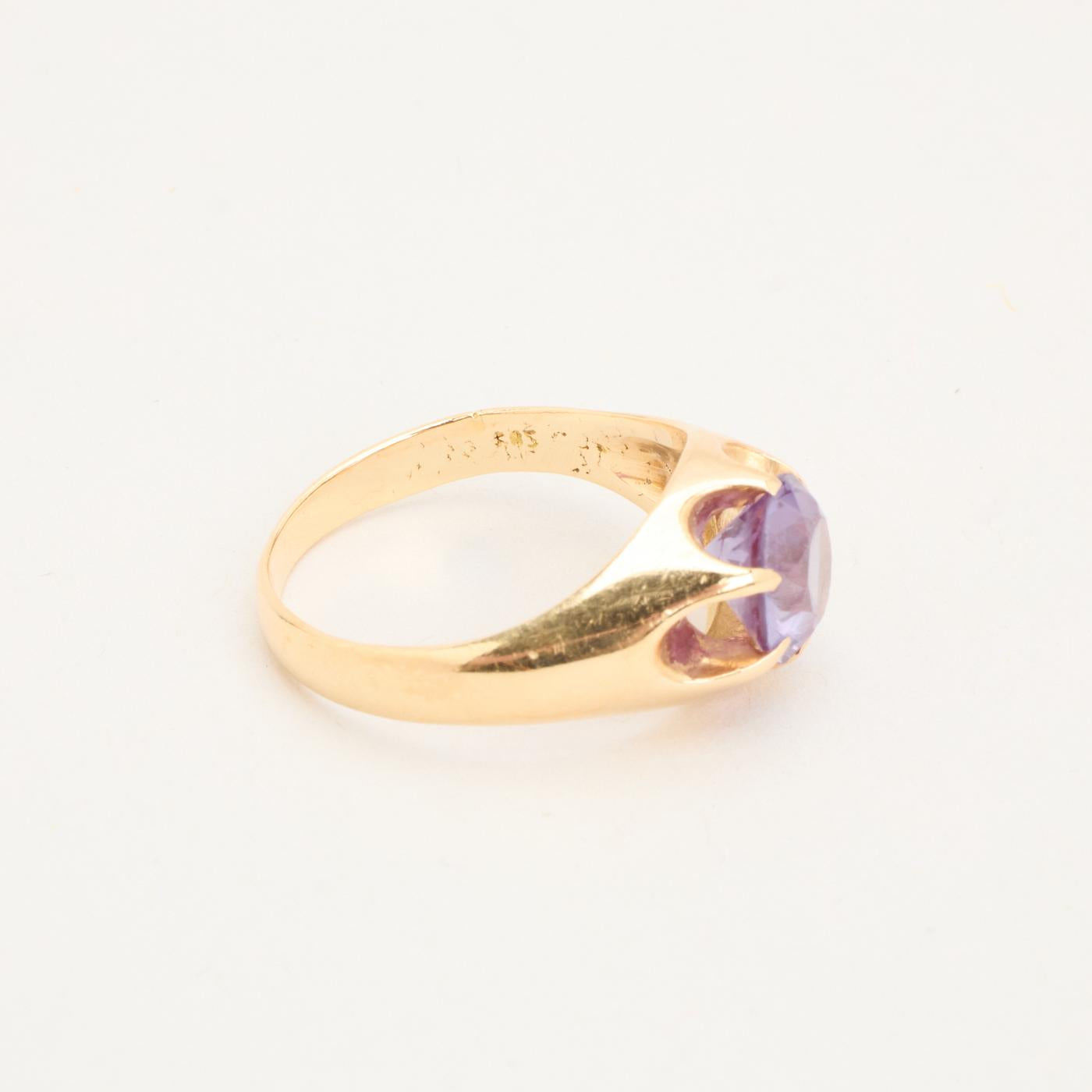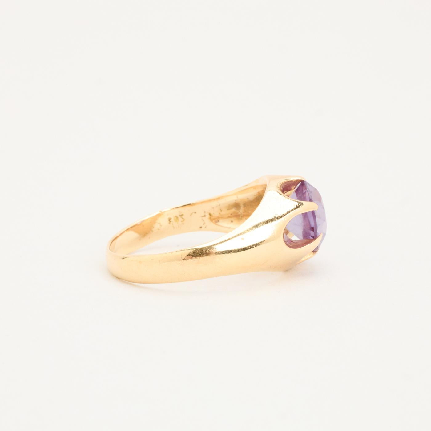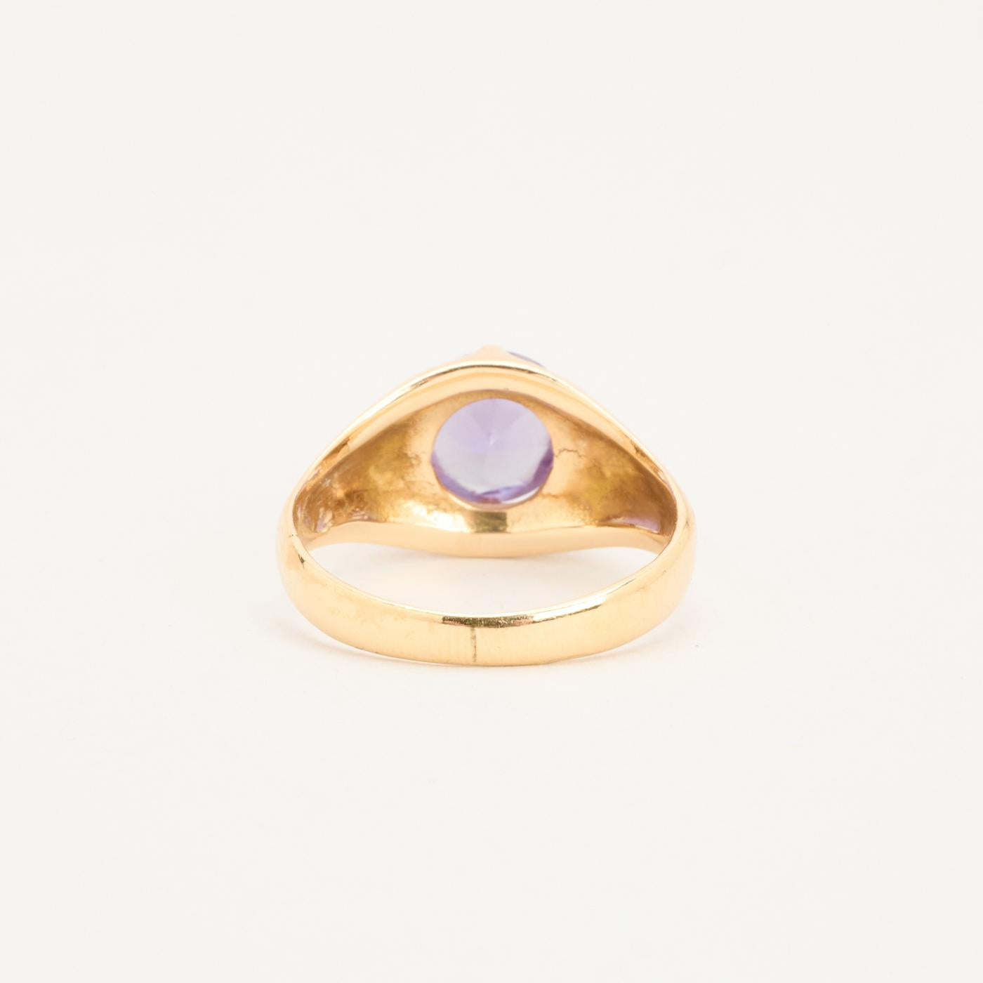 Signetring i 14 karat med lilla sten str. 55 - 56