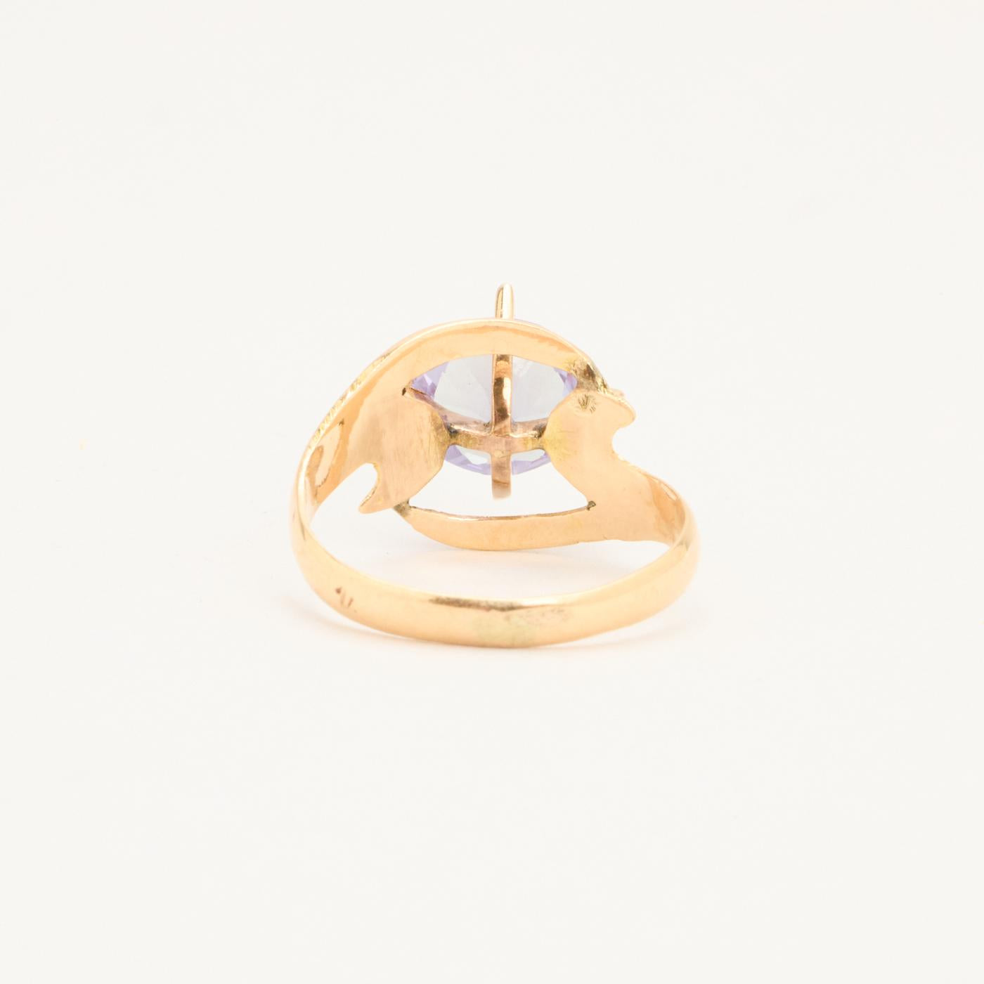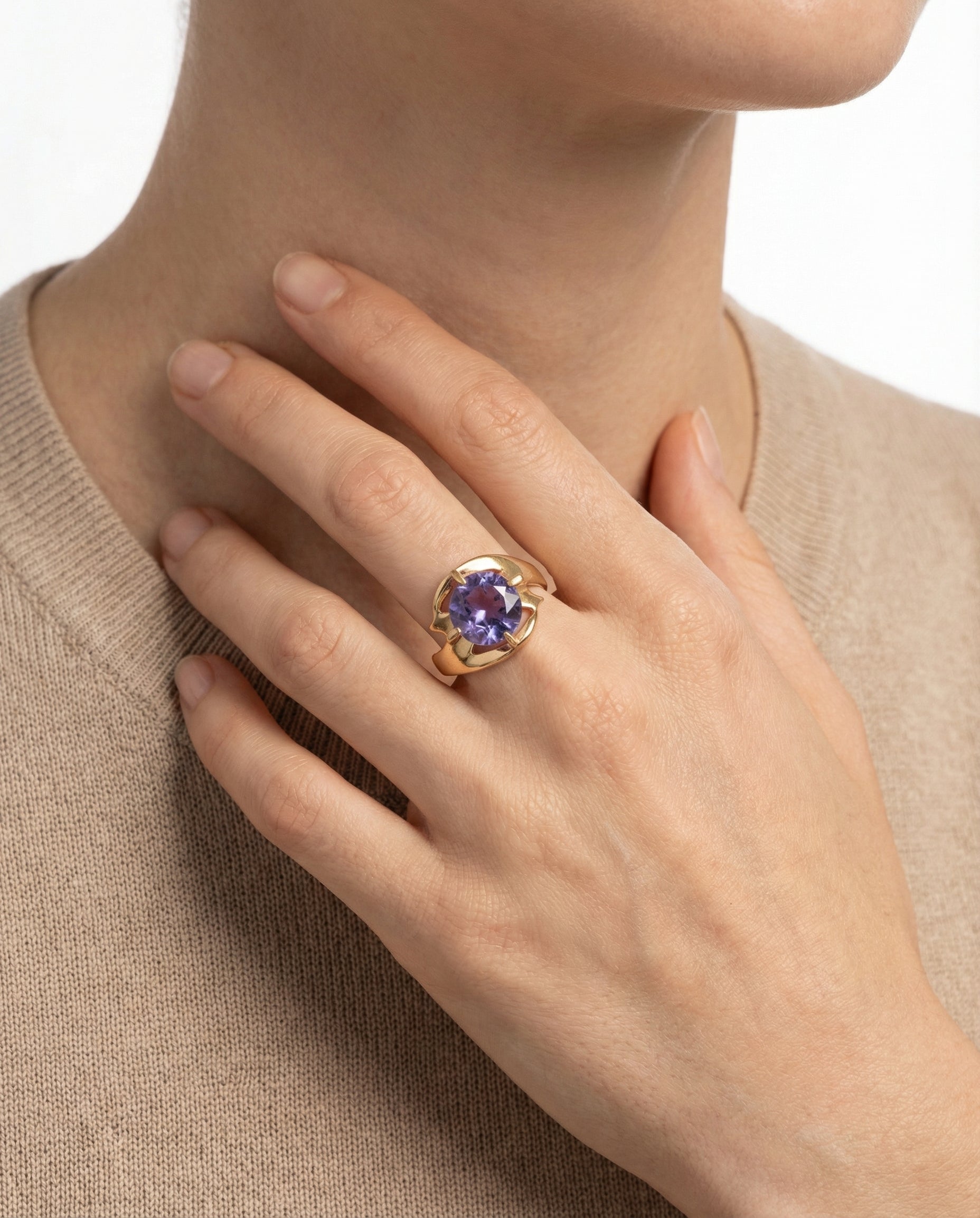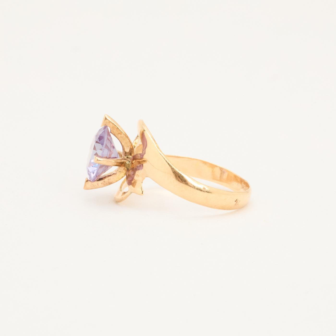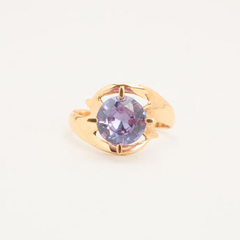 Cocktailring i 14K guld med lilla sten, Str. 52