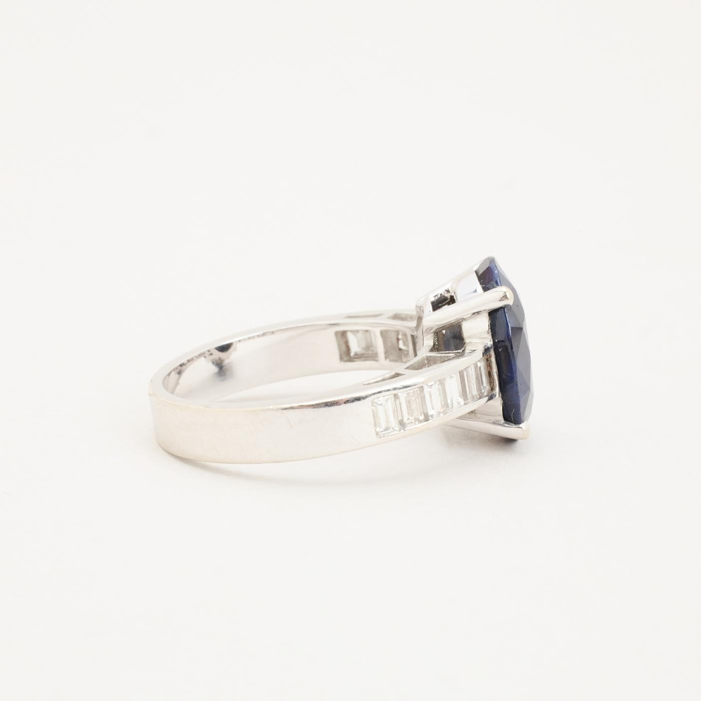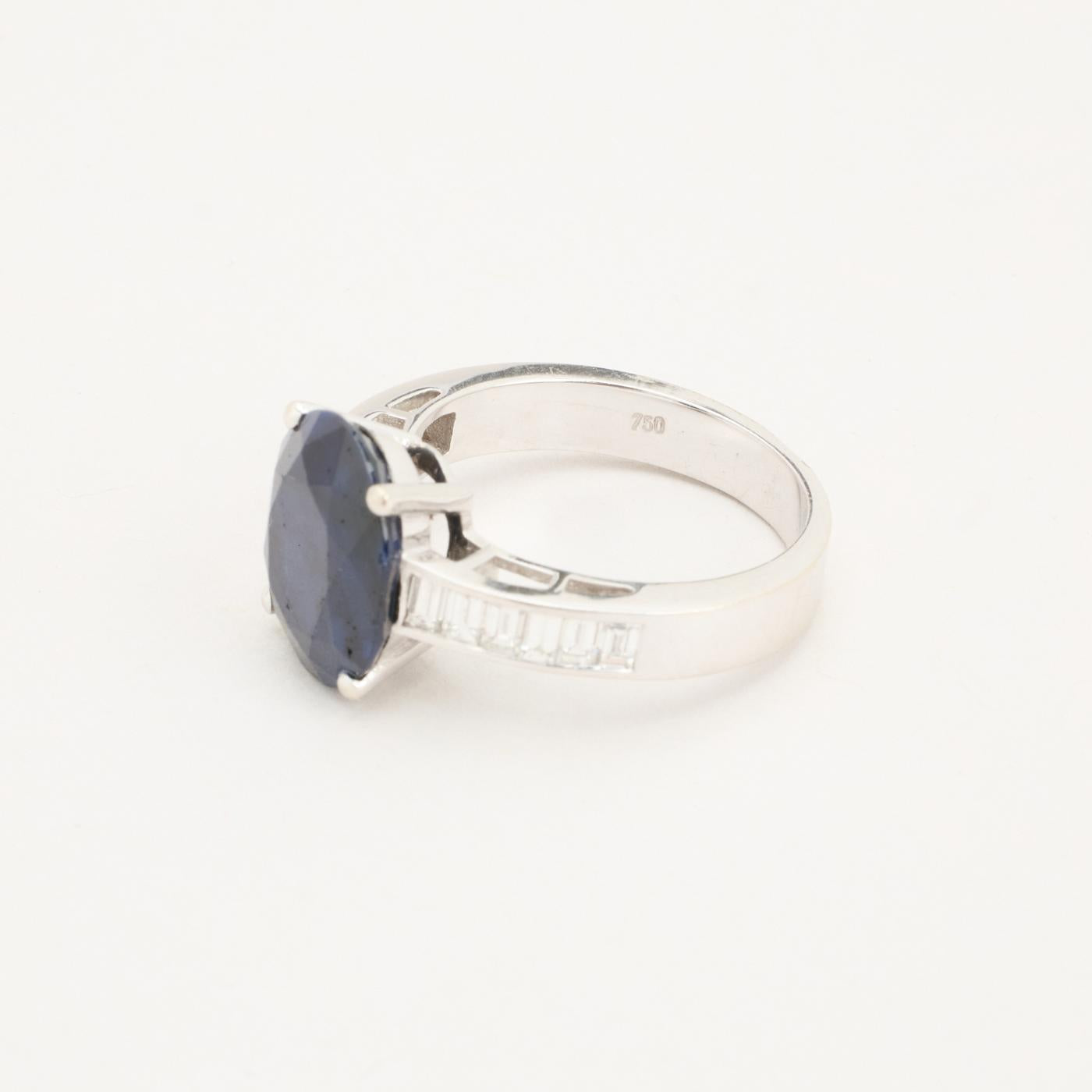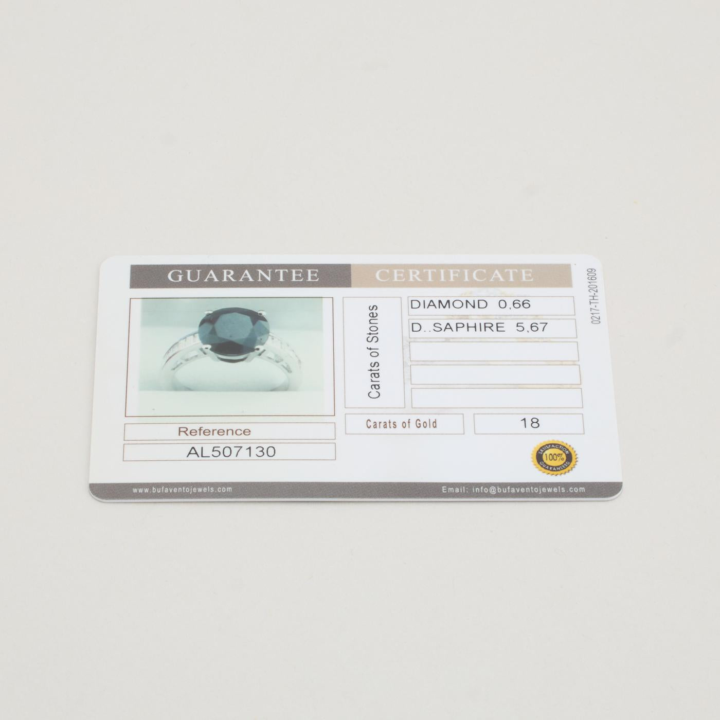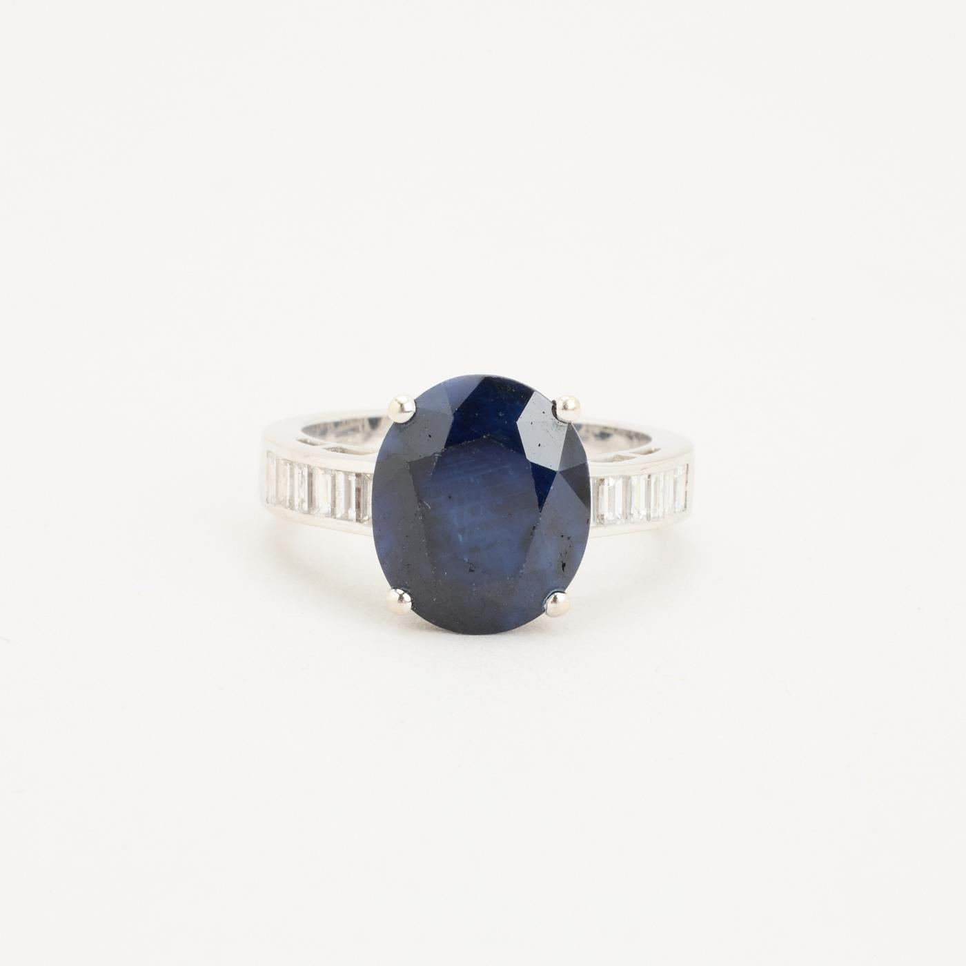 Cocktailring i 18K hvidguld med diamanter og en safir, Str. 54