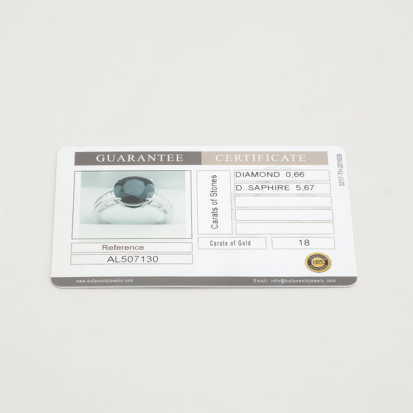 Cocktailring i 18K hvidguld med diamanter (0.66 ct) og en safir, Str. 54
