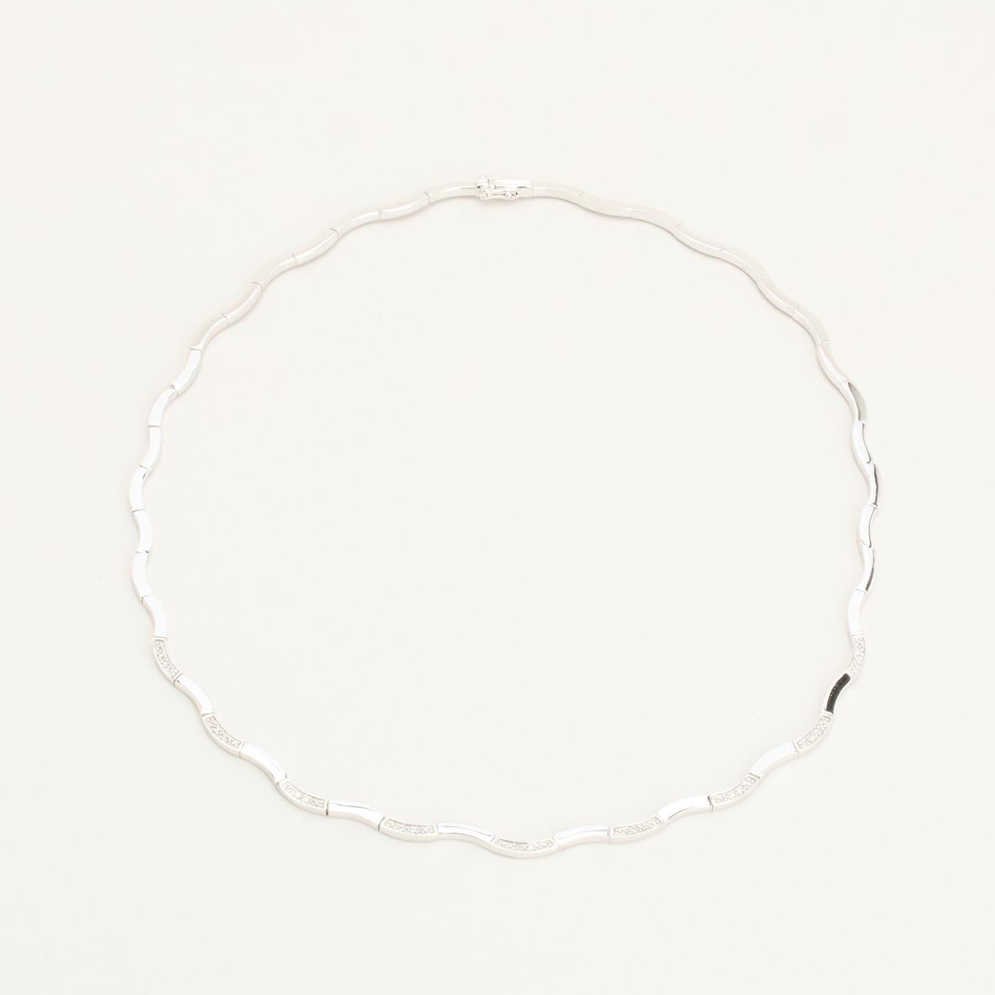 Collier i 14K hvidguld med flere hvide sten (0.1 ct), 42.5 cm