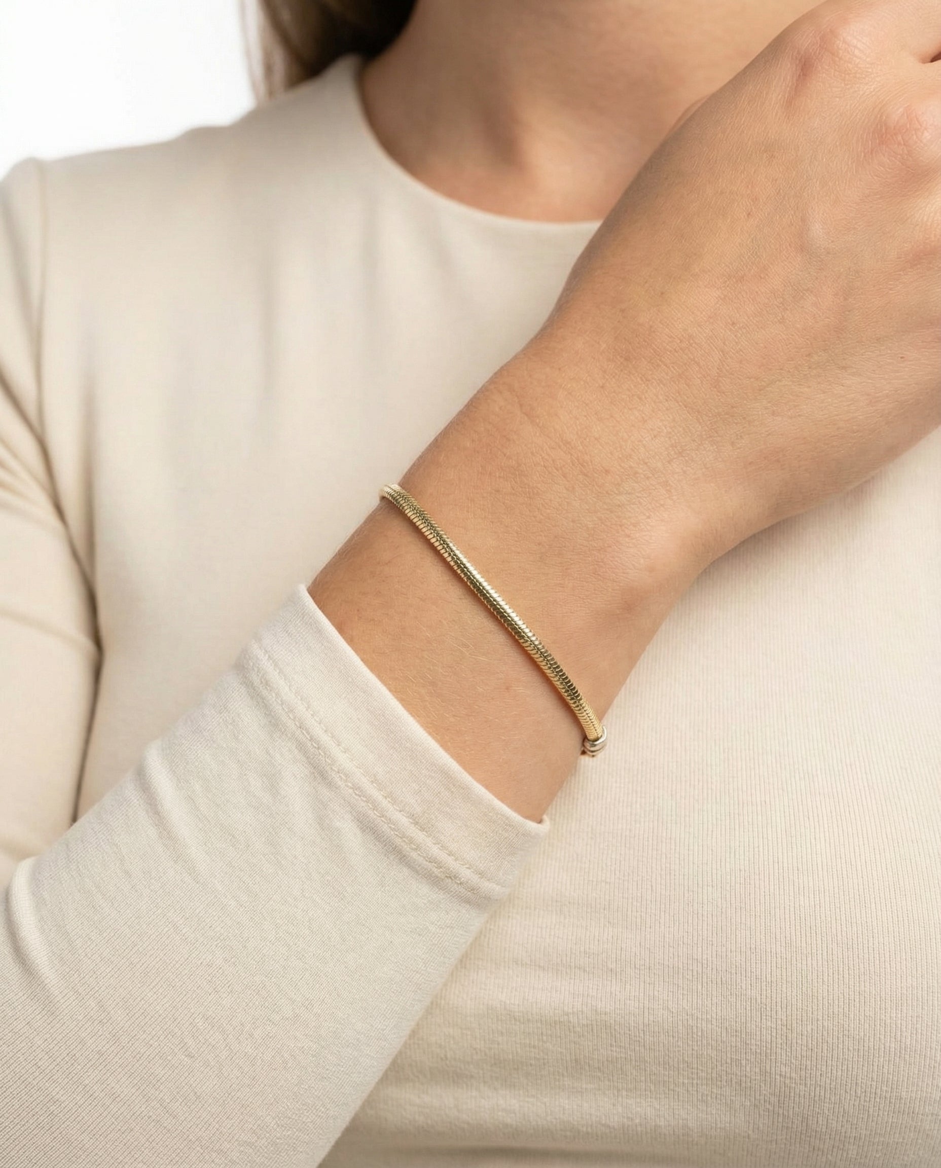 Model: Flad slangekæde Armbånd i 14 karat, 18 cm