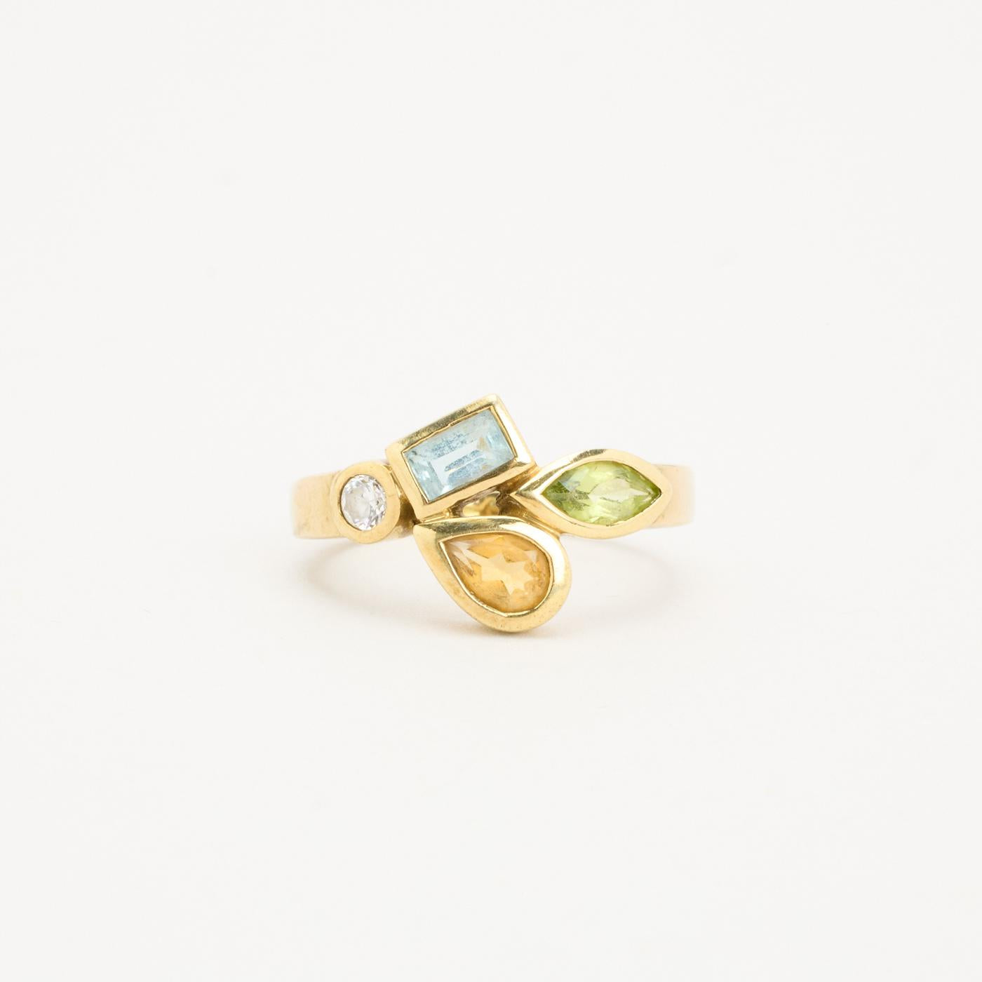 Clusterring i 8K guld med flere hvide sten, Str. 54
