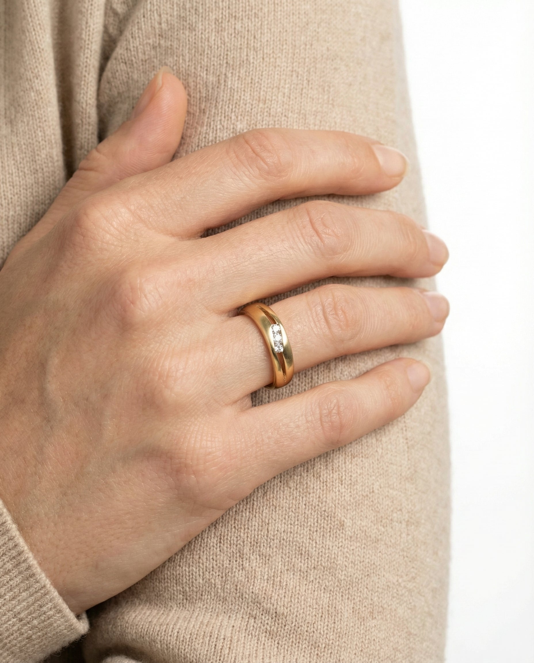 Crossoverring i 8K guld med flere zirkoniaer, Str. 55