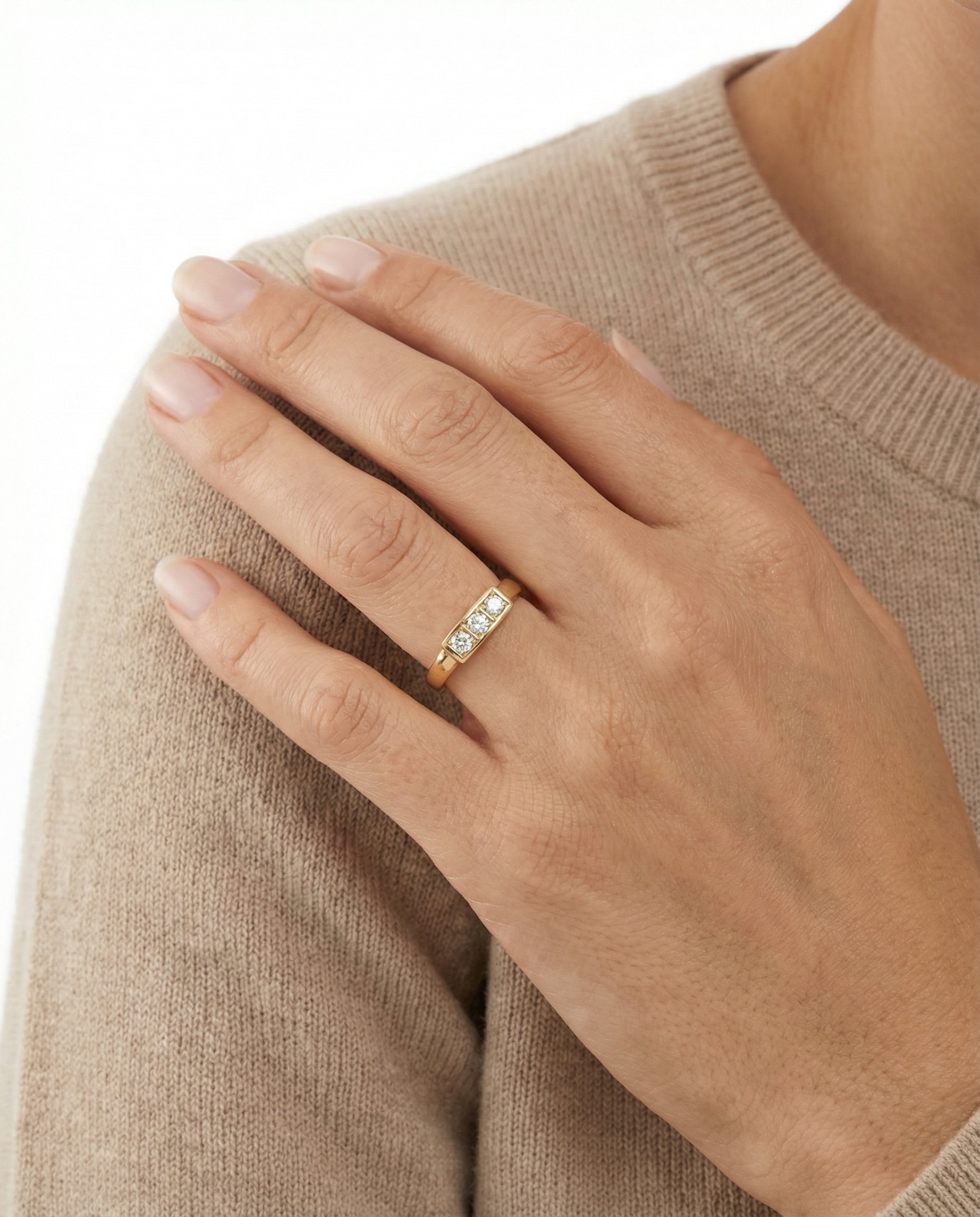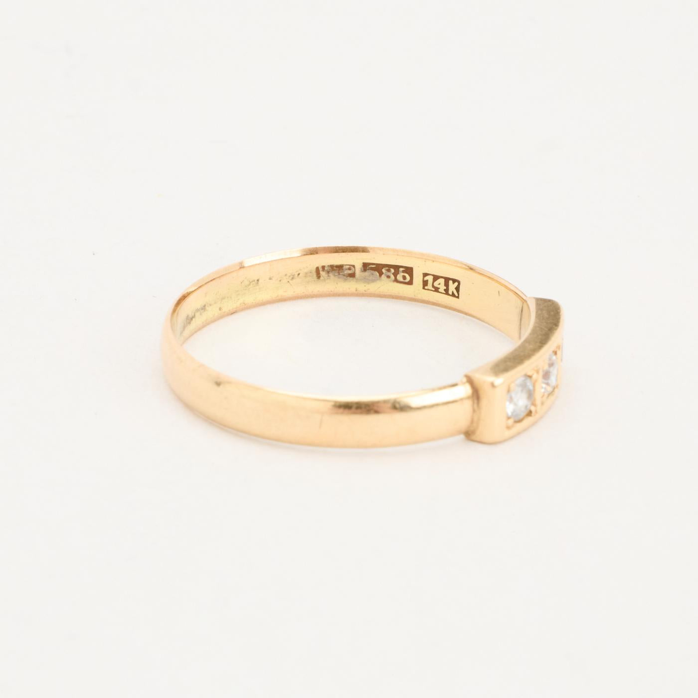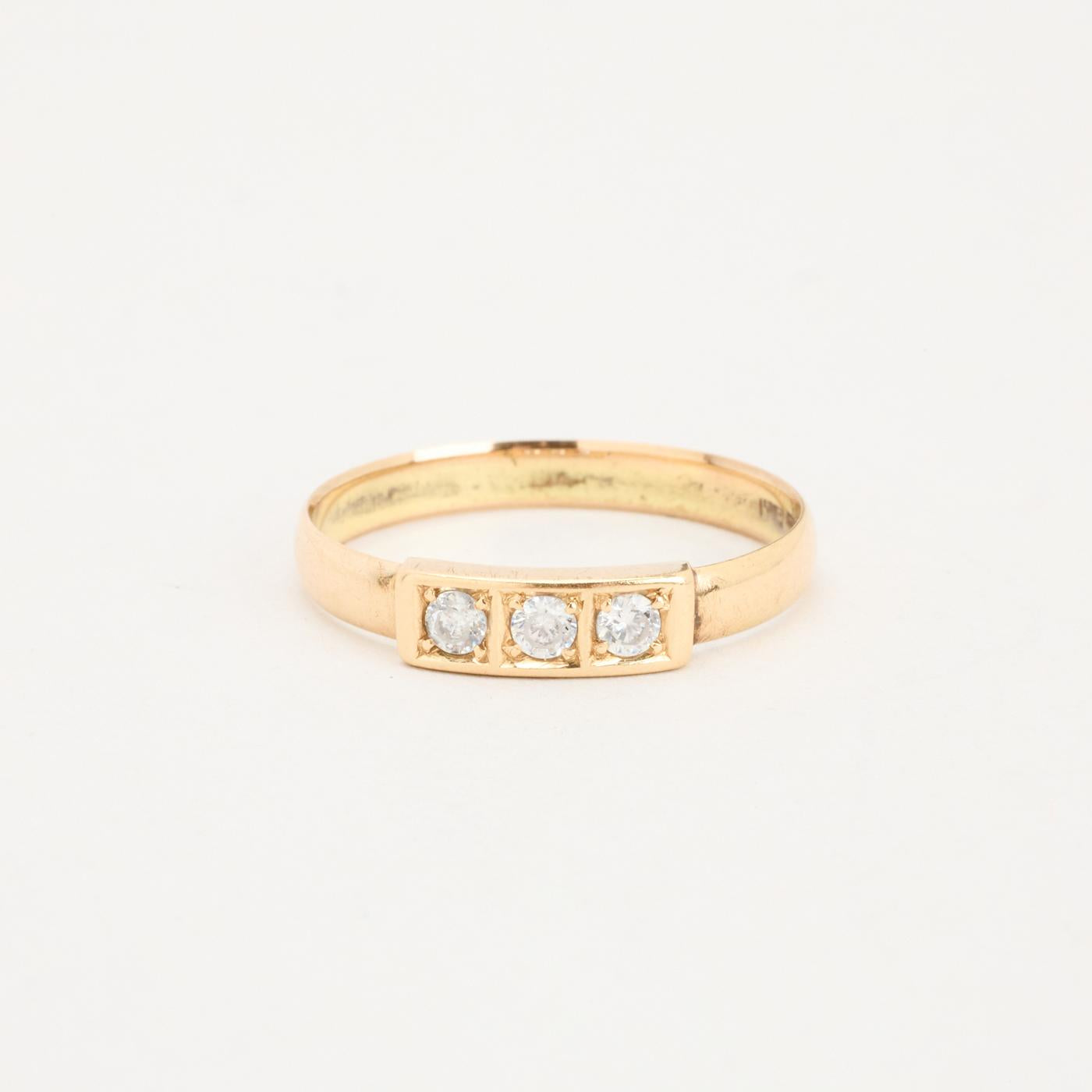 Trestensring i 14K guld med flere zirkoniaer, Str. 61, 2.3 g