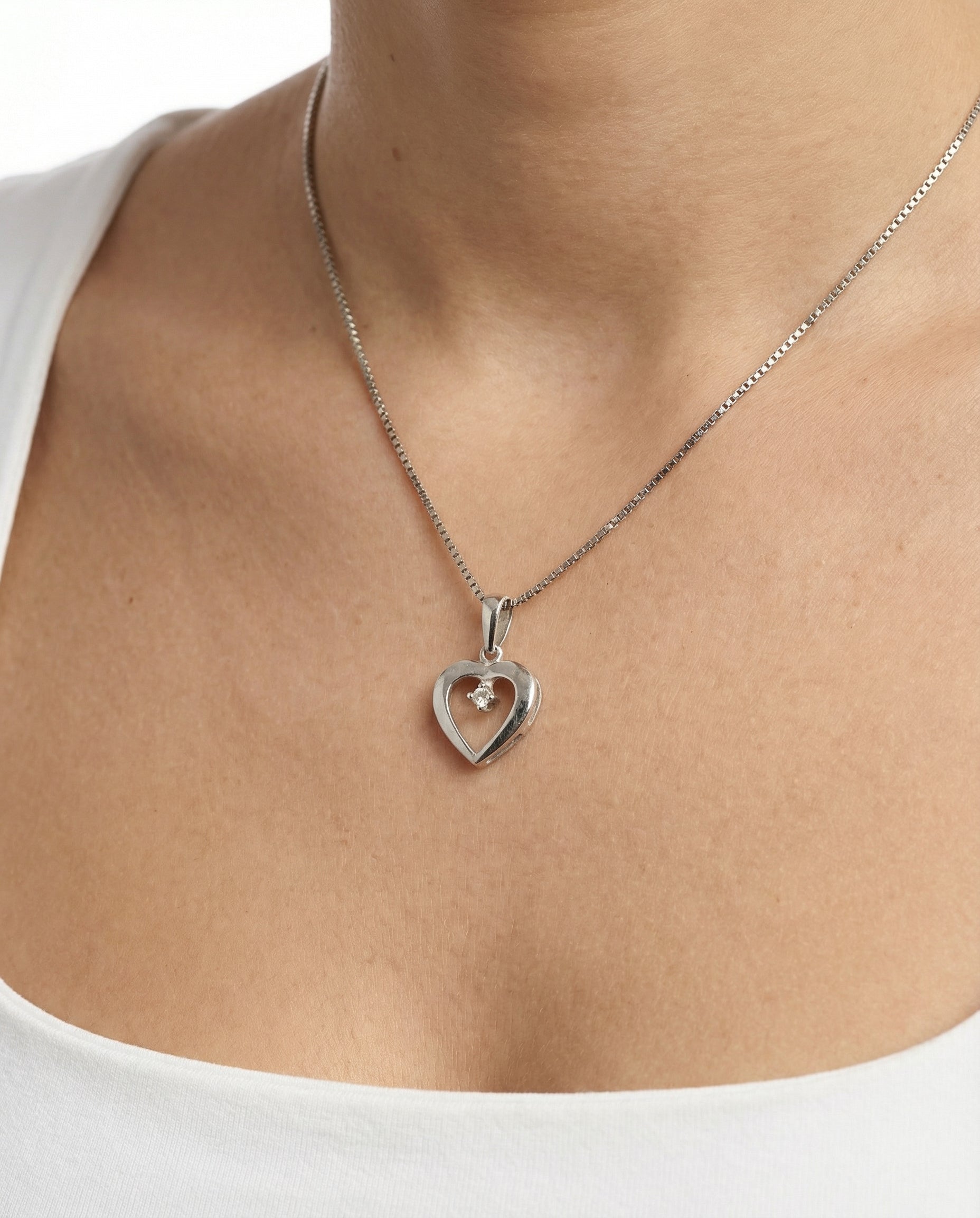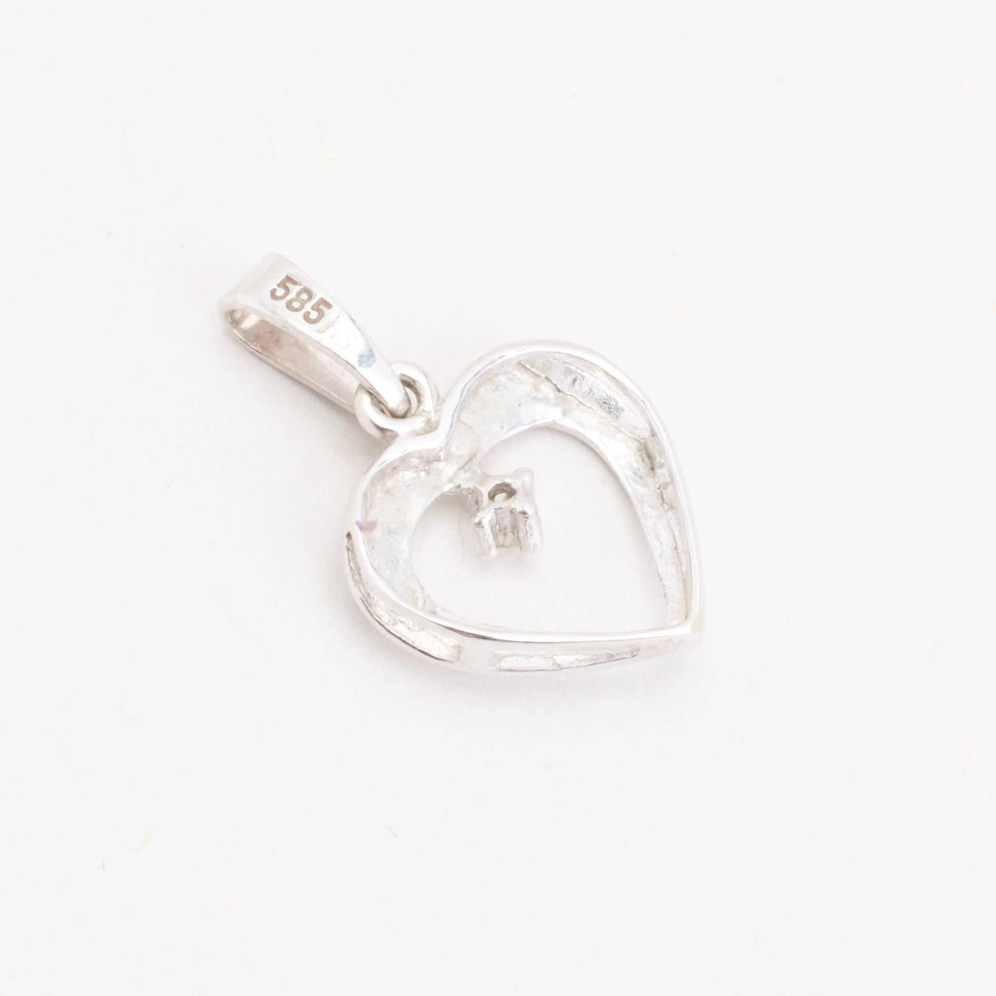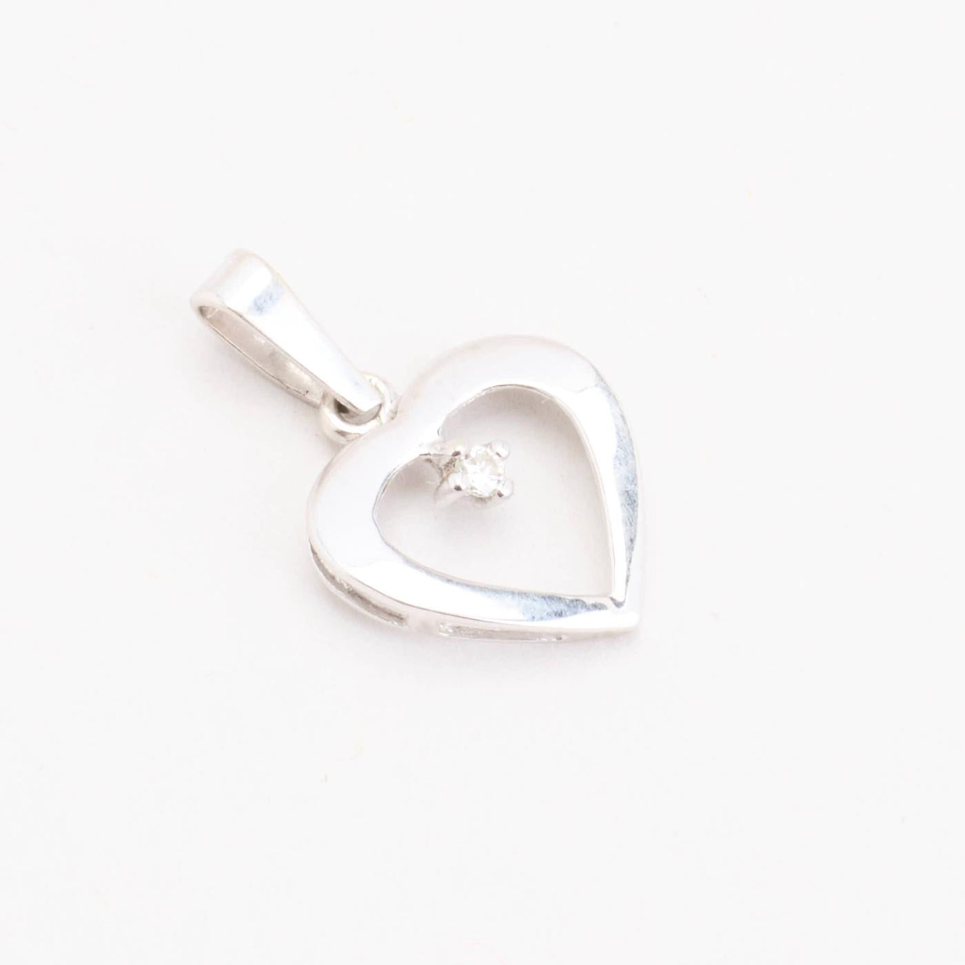 Hjerte vedhæng i 14K hvidguld med en diamant (0.02 ct), 1.8 cm