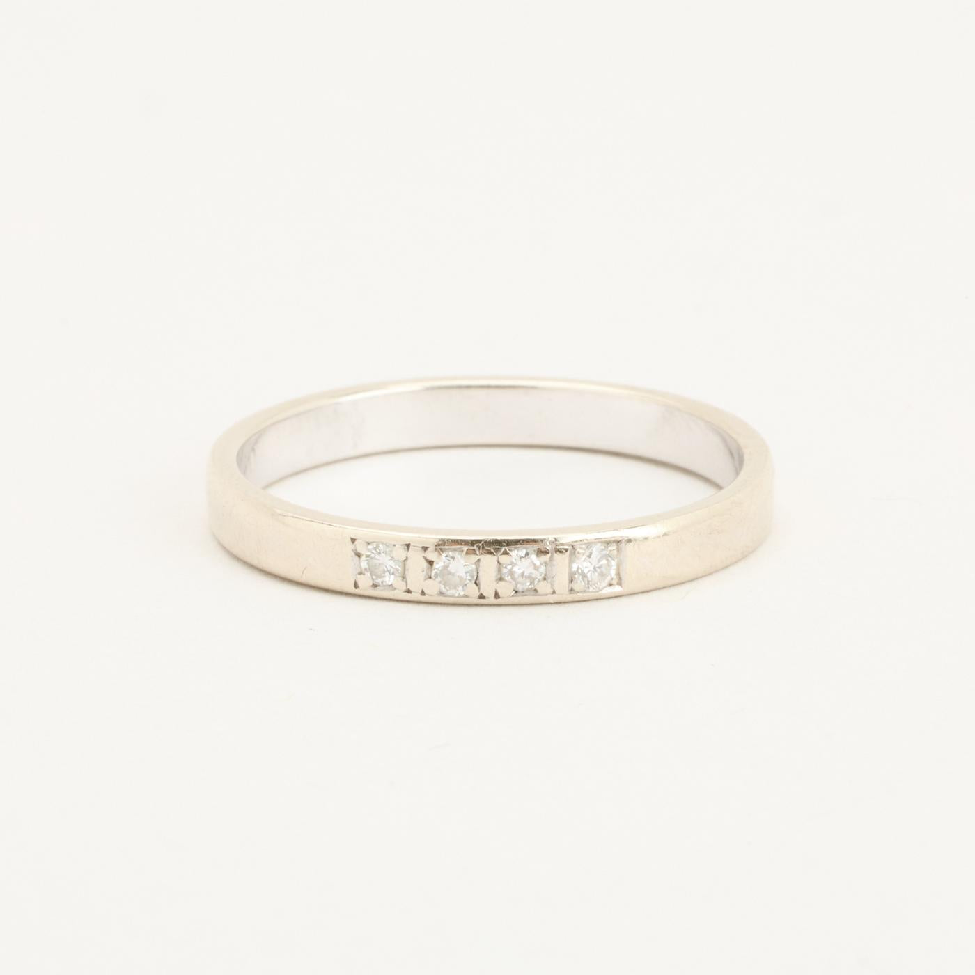 Alliancering i 14K hvidguld med diamanter (0.06 ct), Str. 56