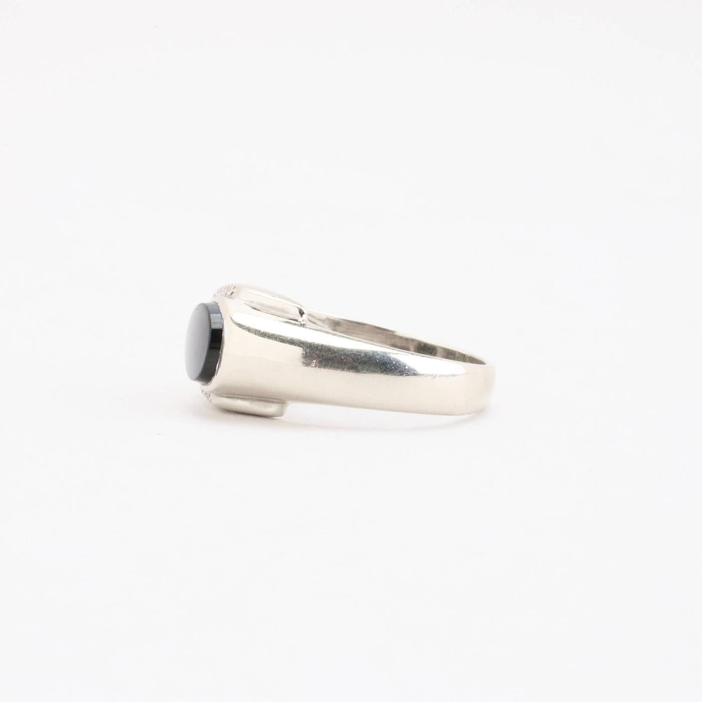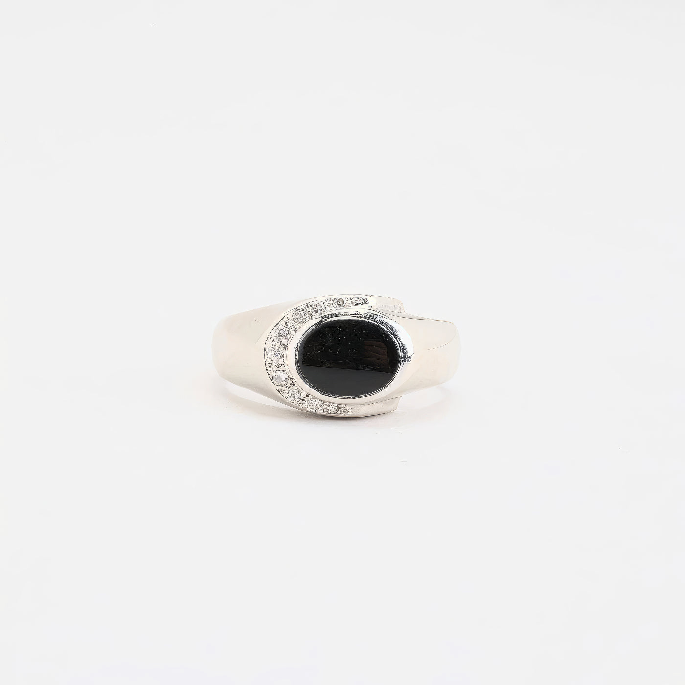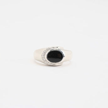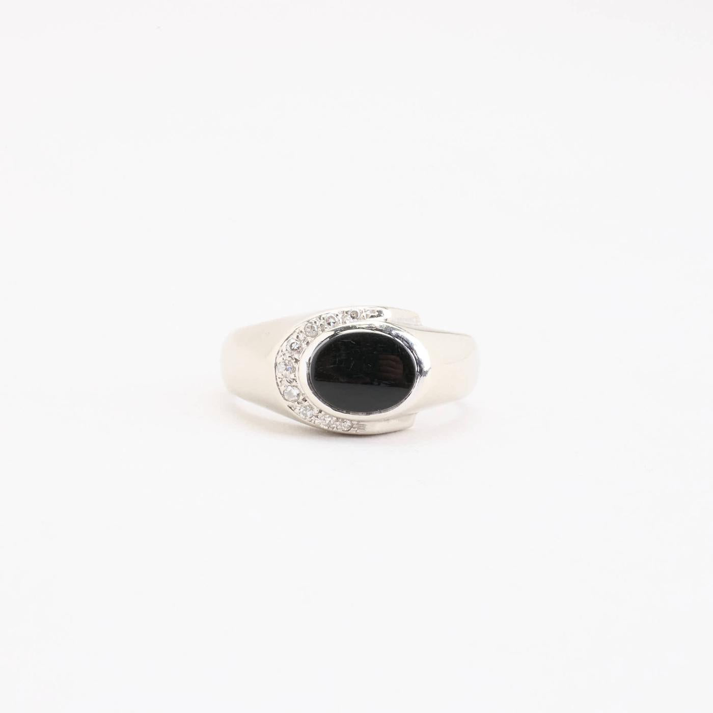 Signetring i 14K hvidguld med en diamant (0.09 ct) og en onyks, Str. 60, 6.2 g