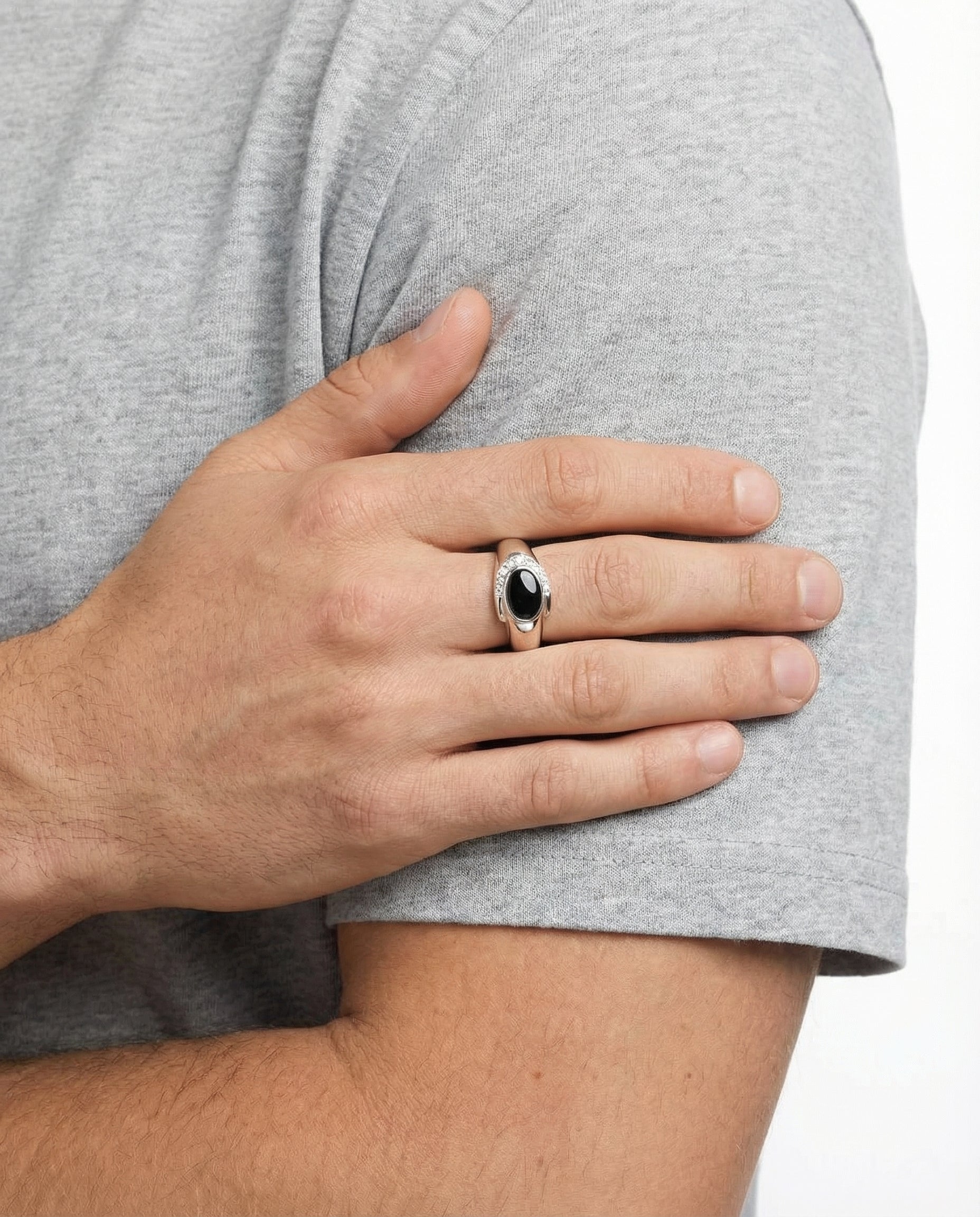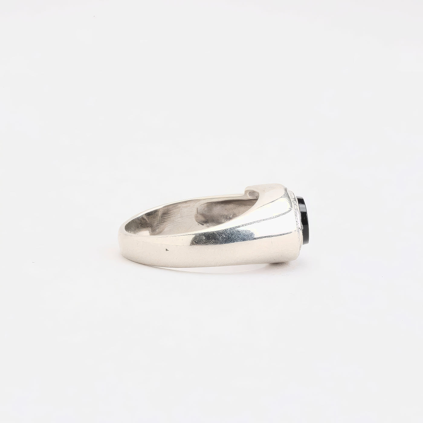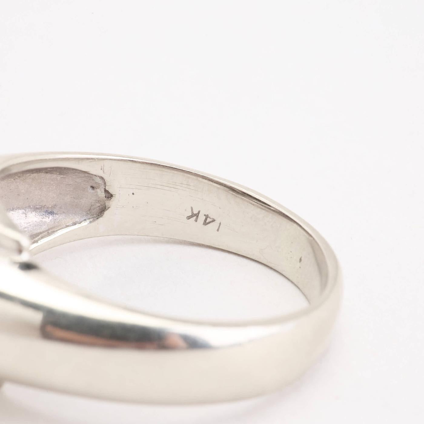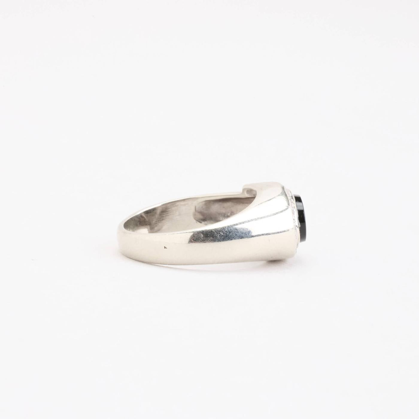 Signetring i 14K hvidguld med en diamant (0.09 ct) og en onyks, Str. 60, 6.2 g