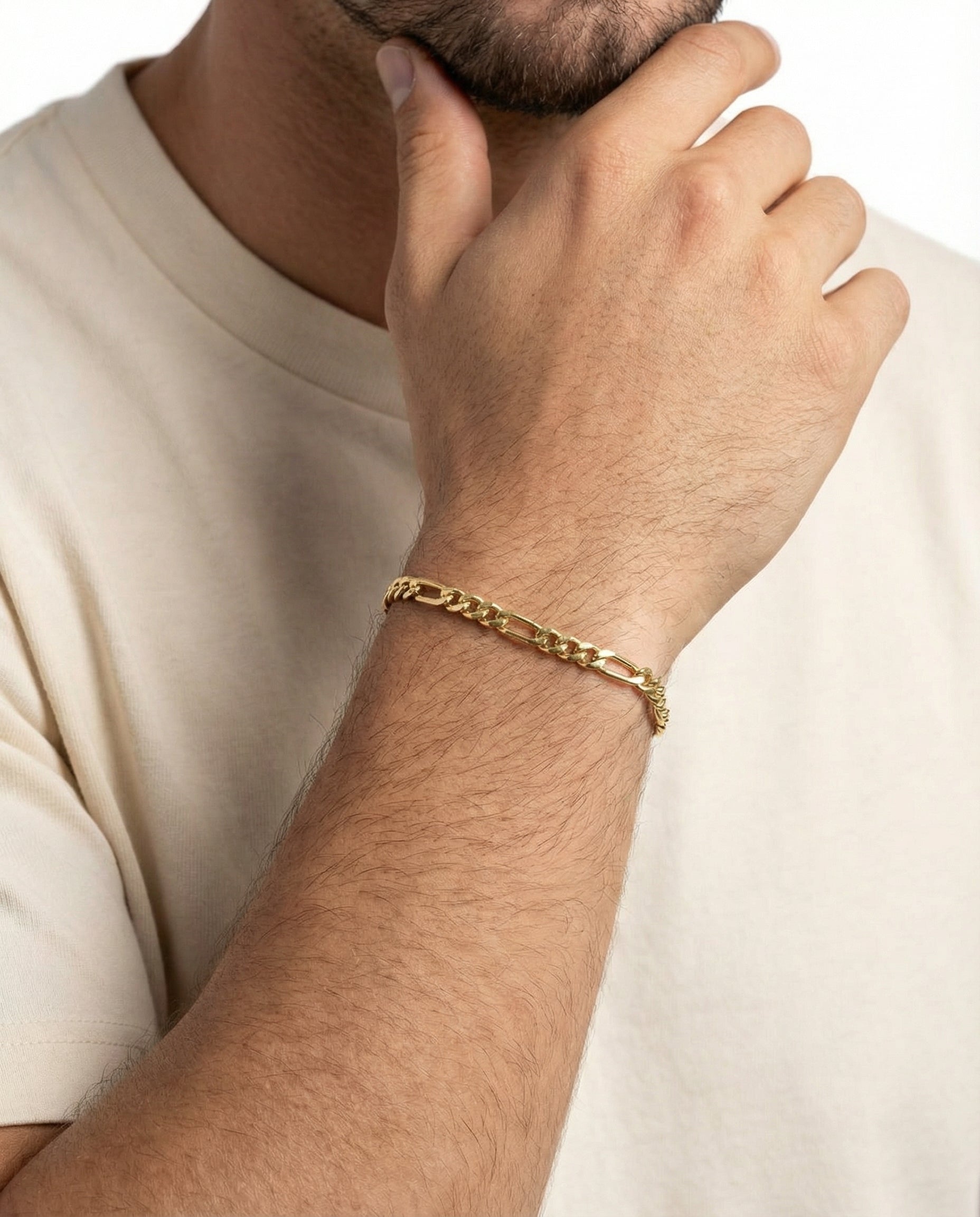 Model: Figaro Armbånd i 14K guld, 21.5 cm, 6.98 g
