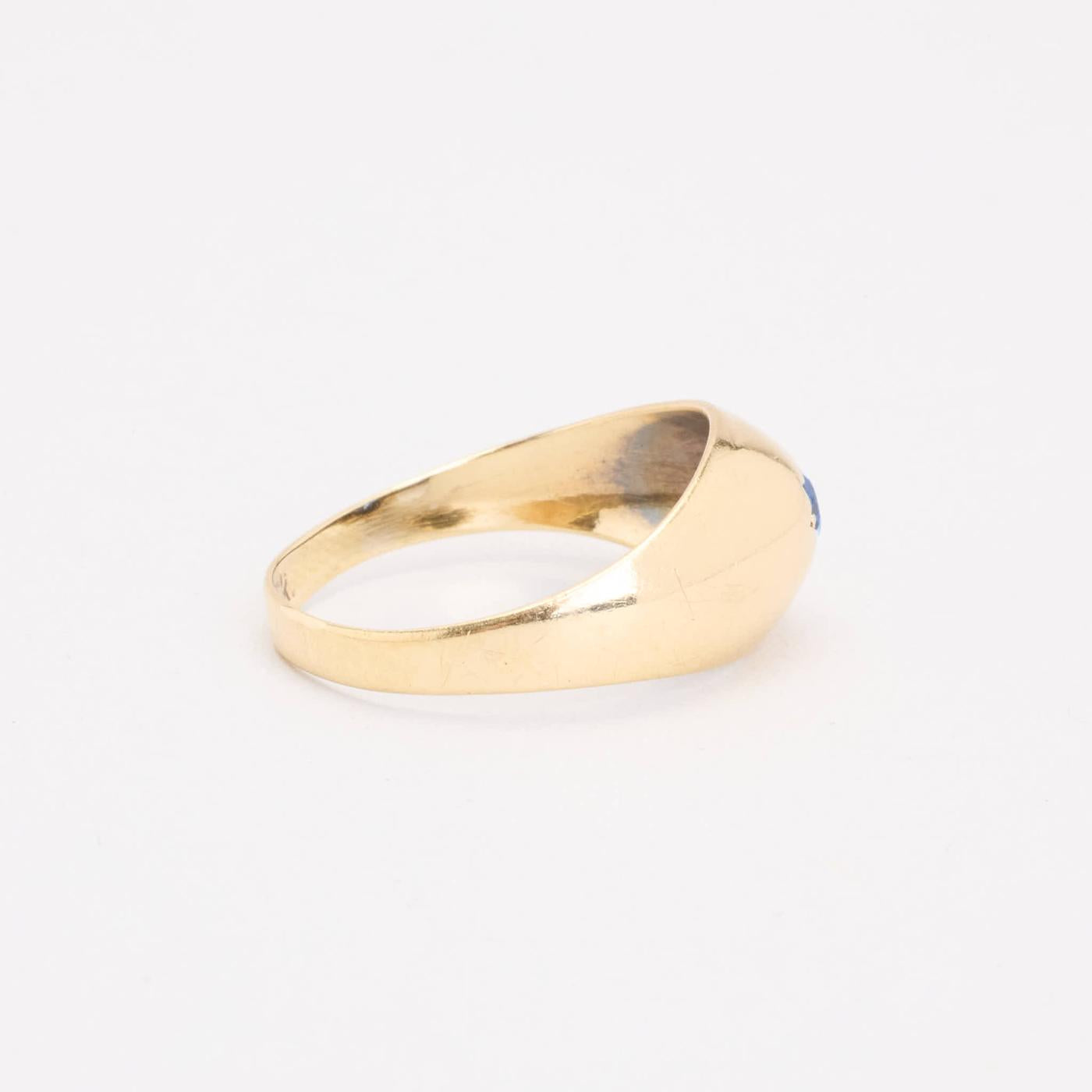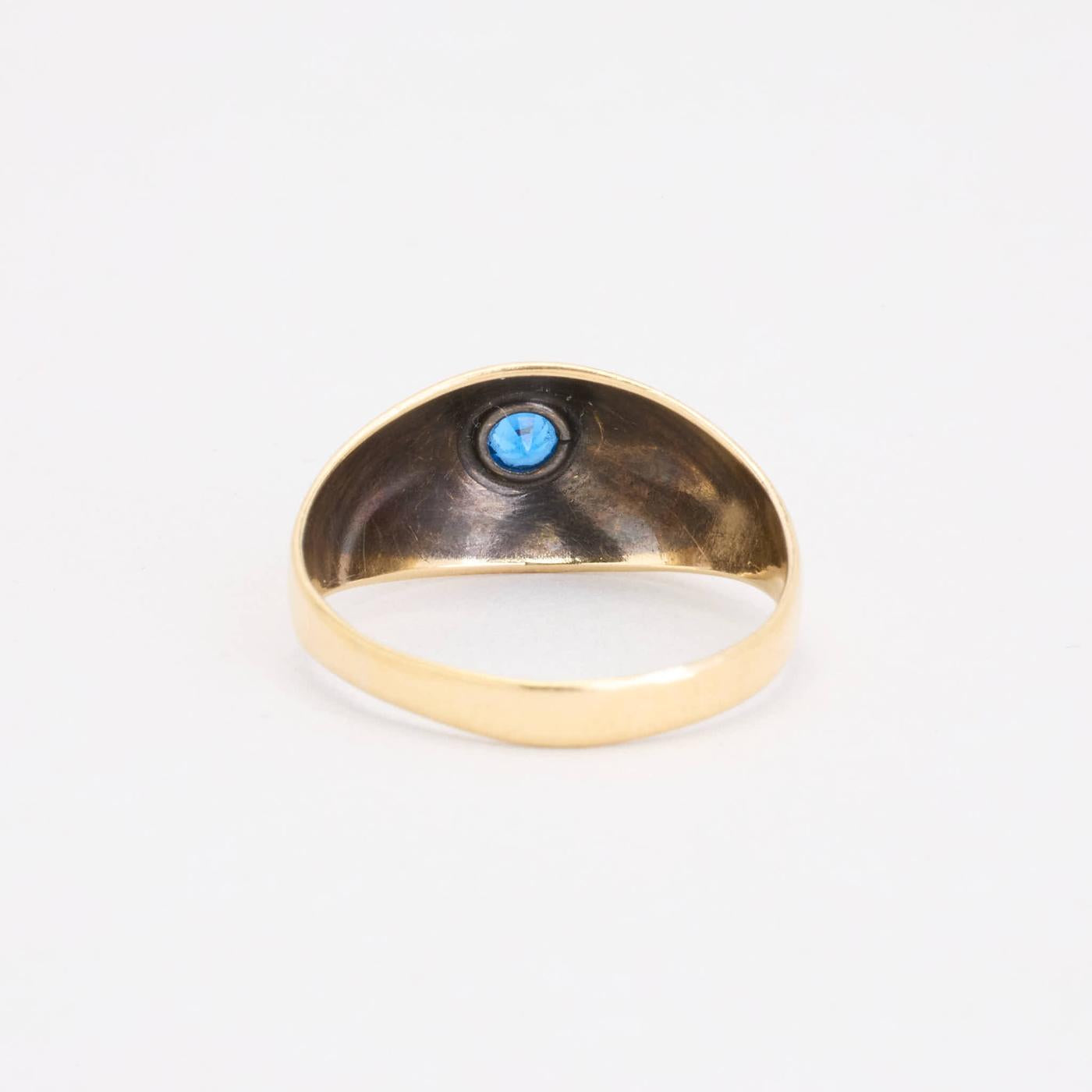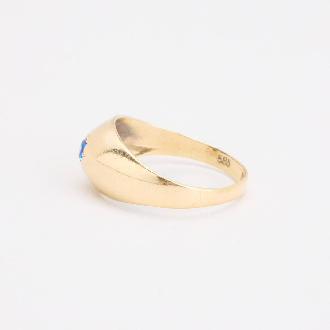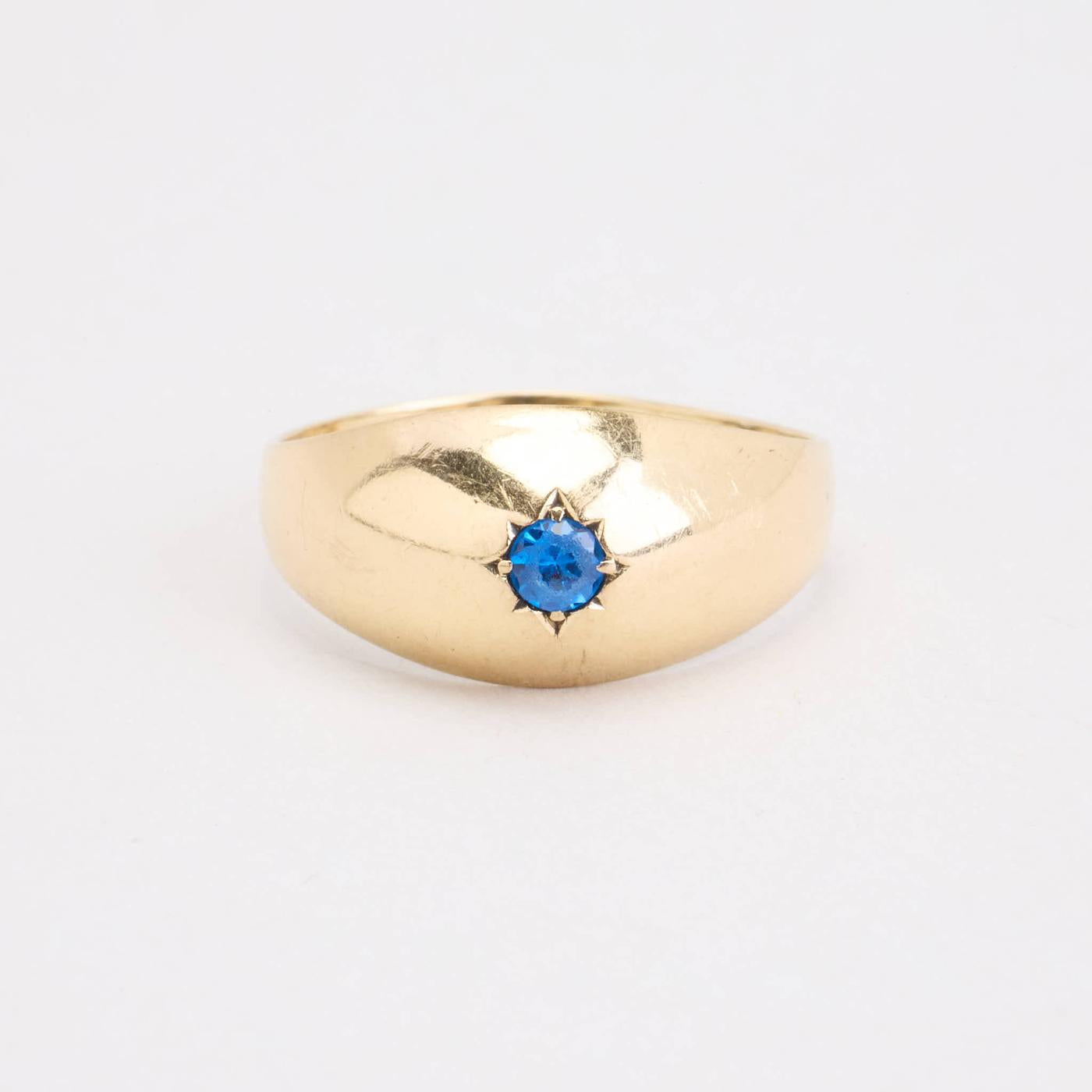 Gypsyring i 14K guld med en blå sten, Str. 54