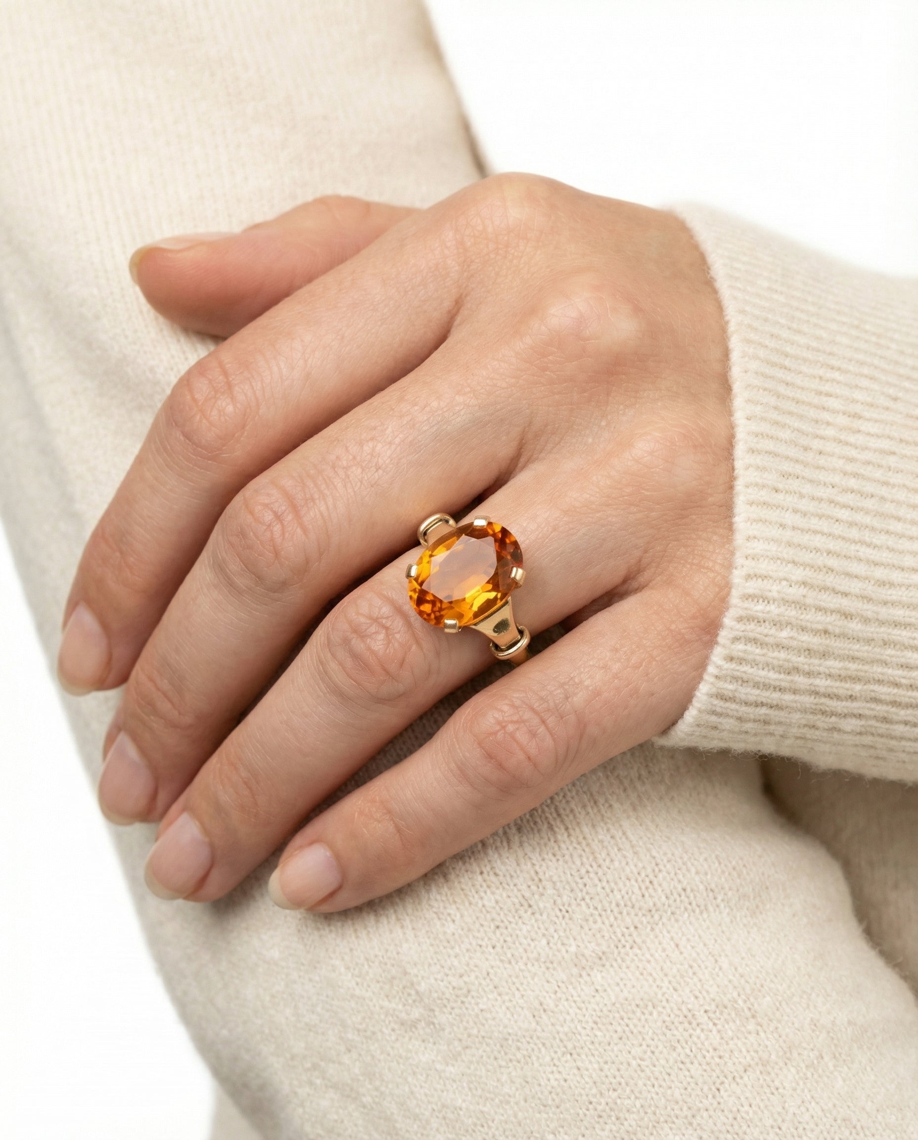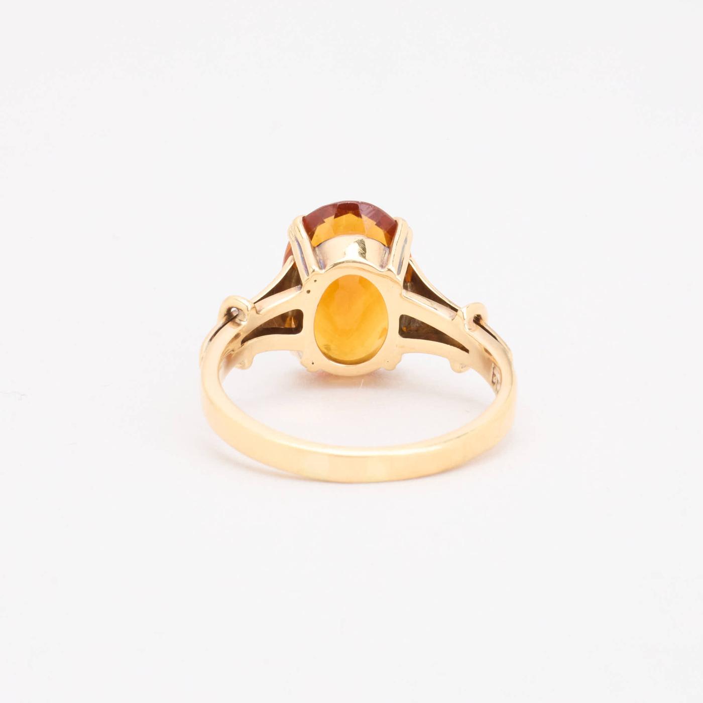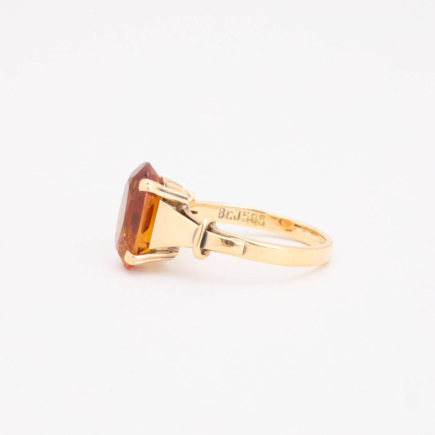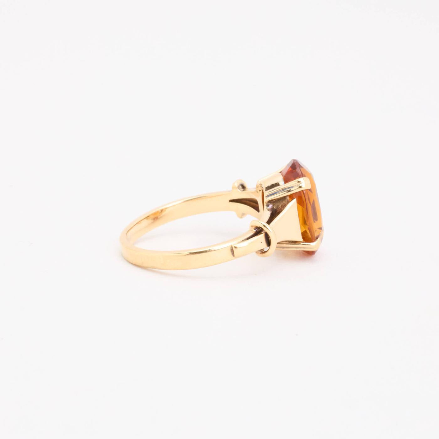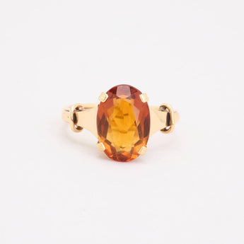 Cocktailring i 14K guld med orange sten, Str. 50