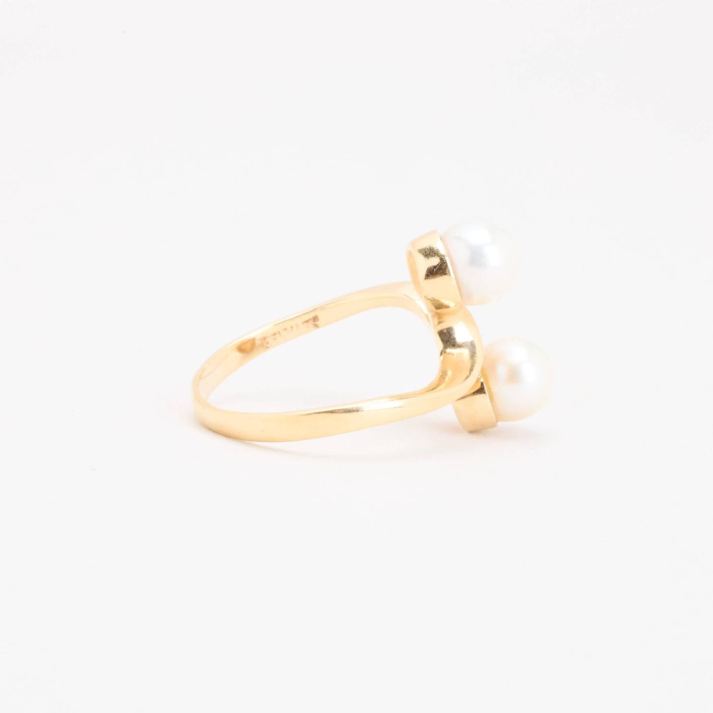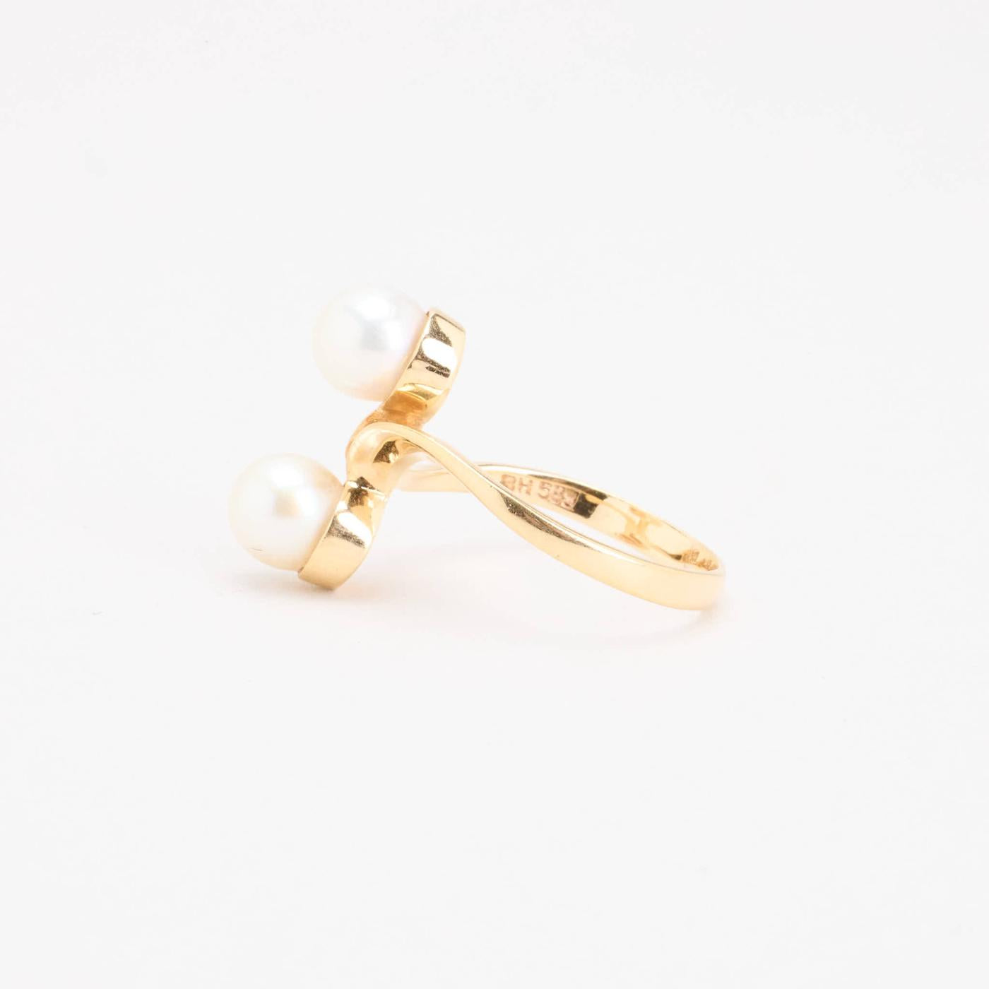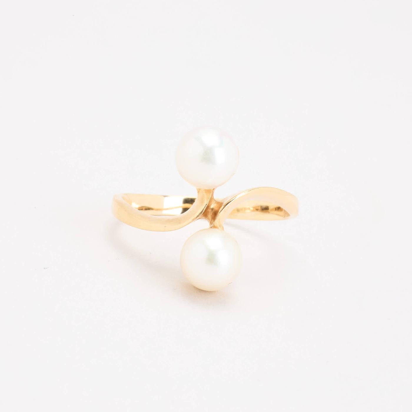 Toi et Moi ring i 14 karat med en Perle str. 64