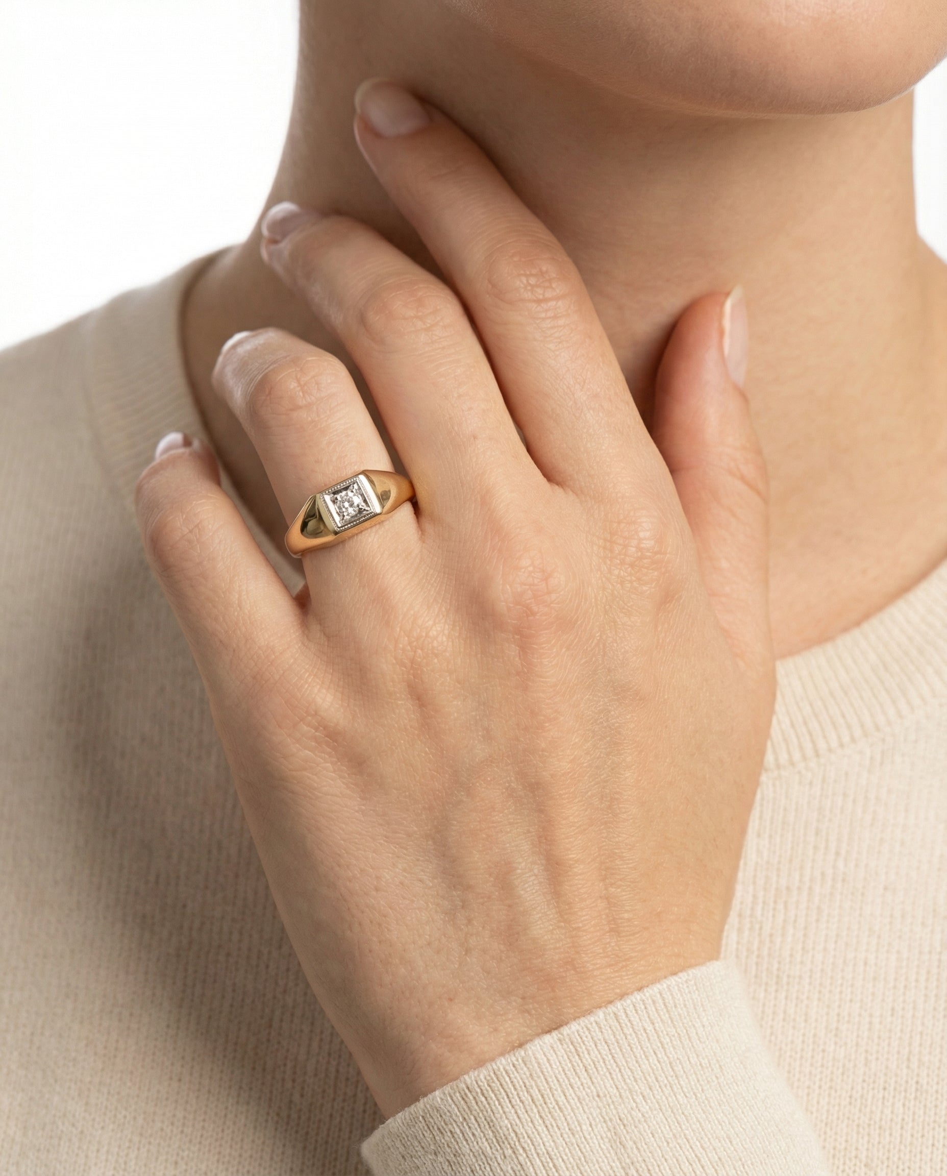 Signetring med diamant (0.05 ct) i 14 karat str. 51