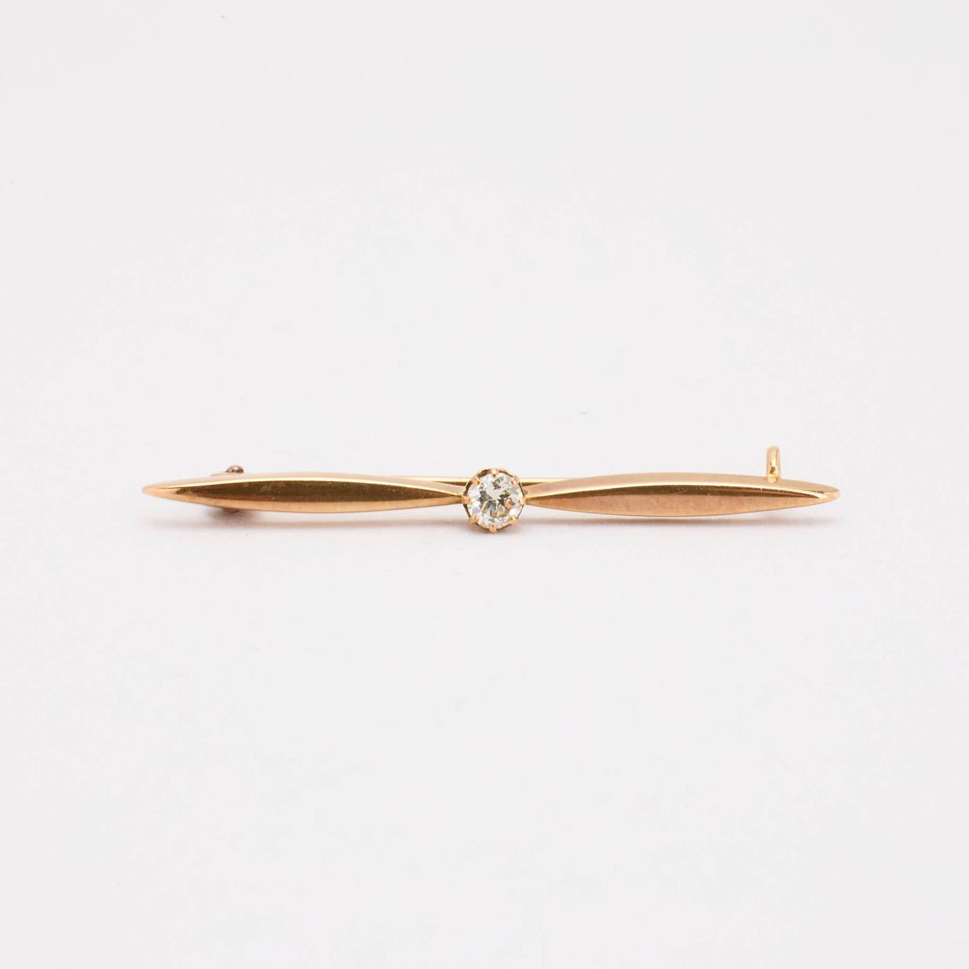 Broche i 14K guld med en diamant (0.16 ct), 4.1 cm