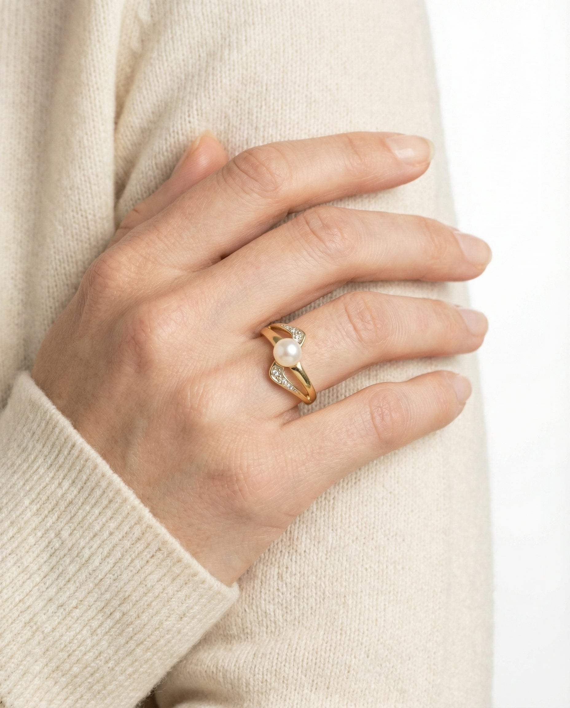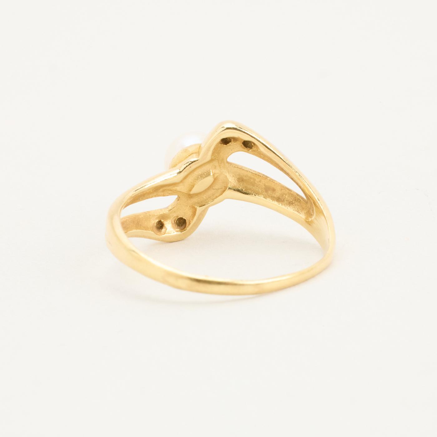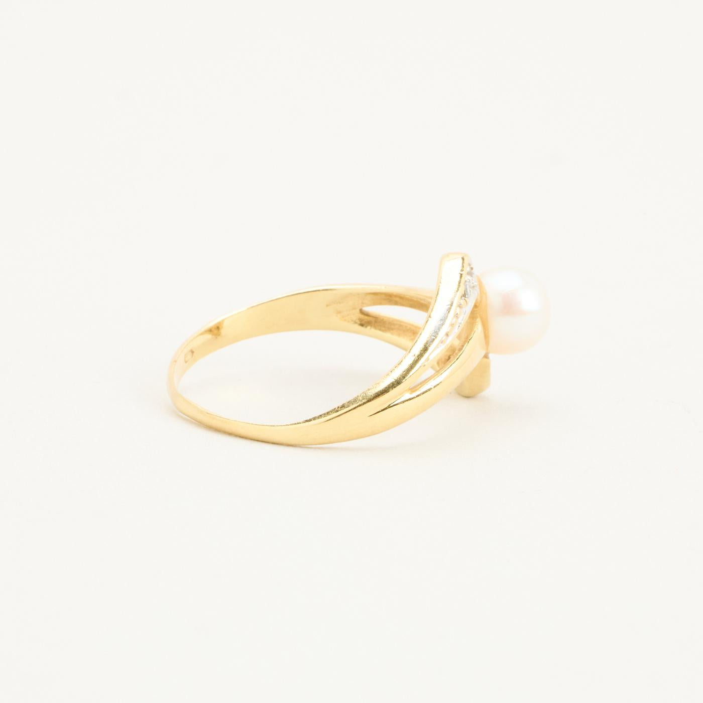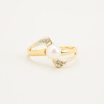 Perlering i 14K guld med en perle og flere zirkonia, Str. 54