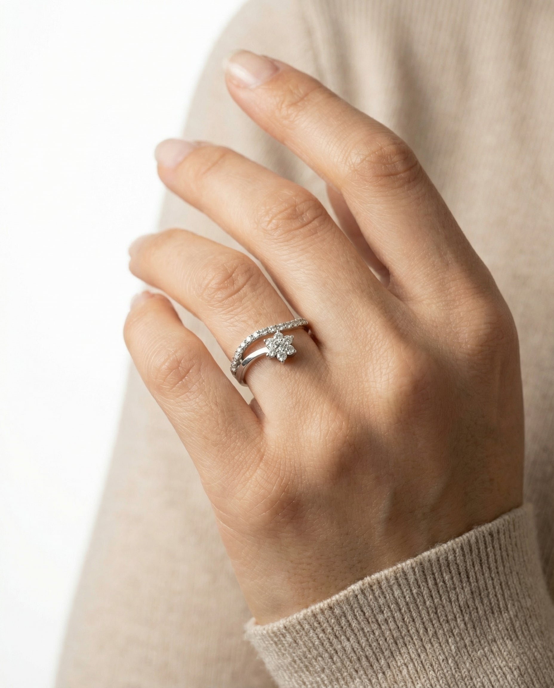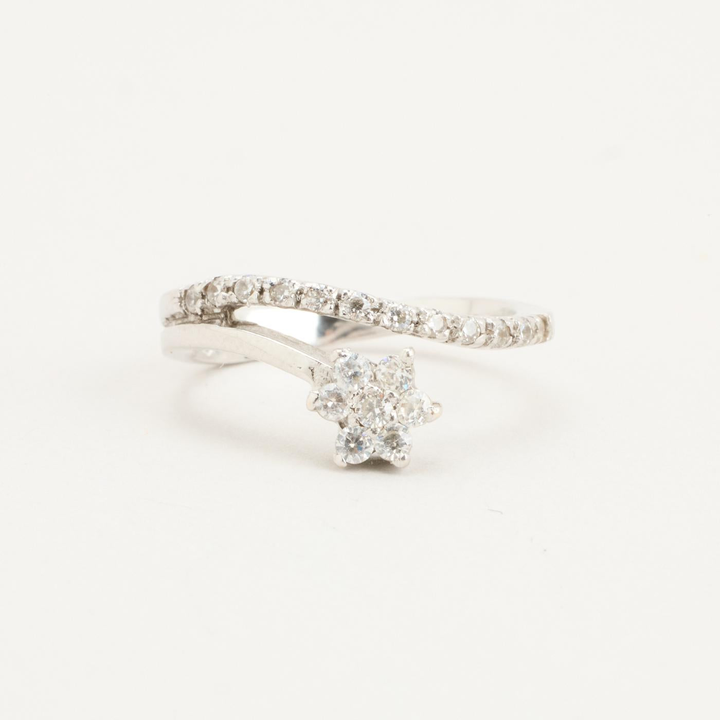 Blomsterring i 18K hvidguld med zirconer, Str. 48