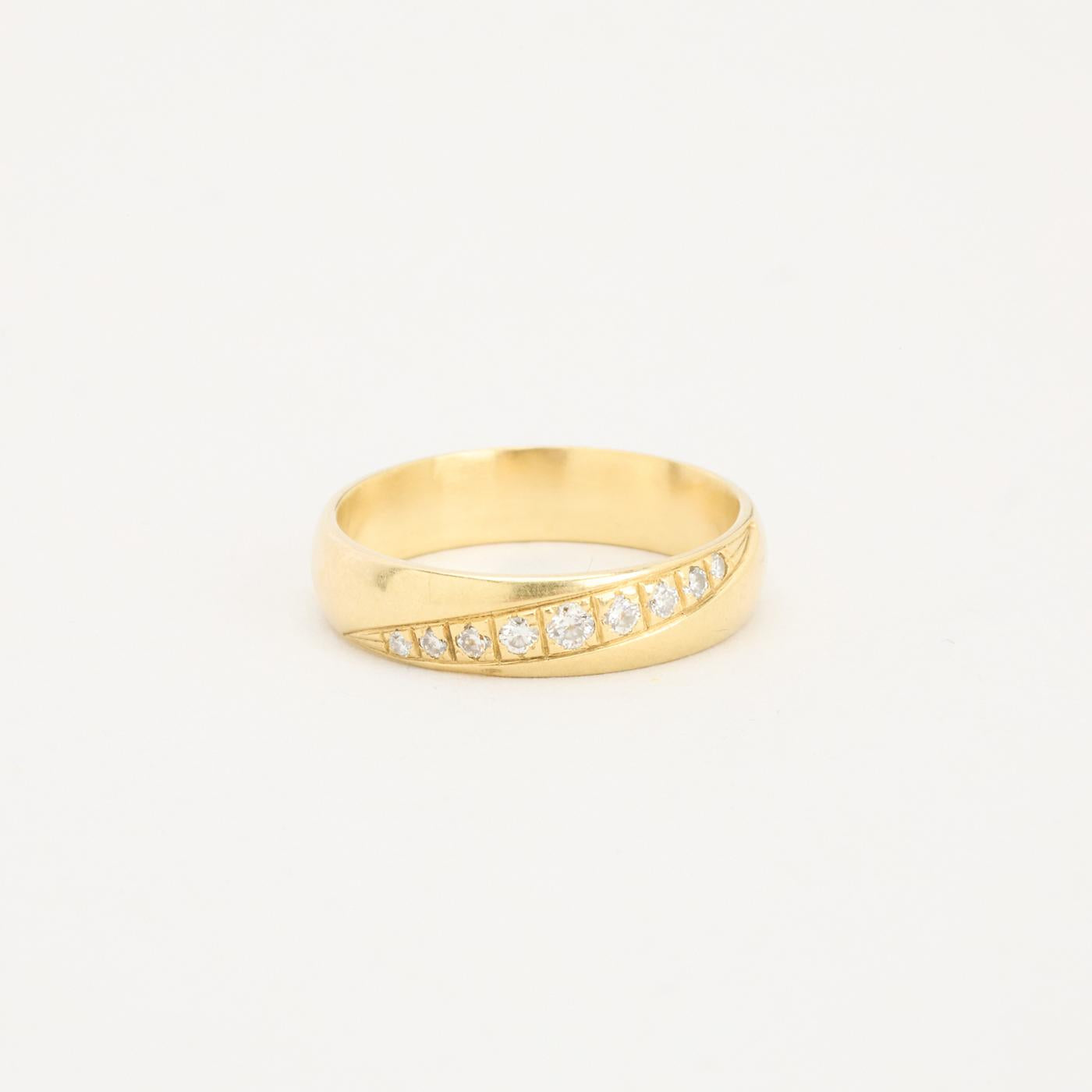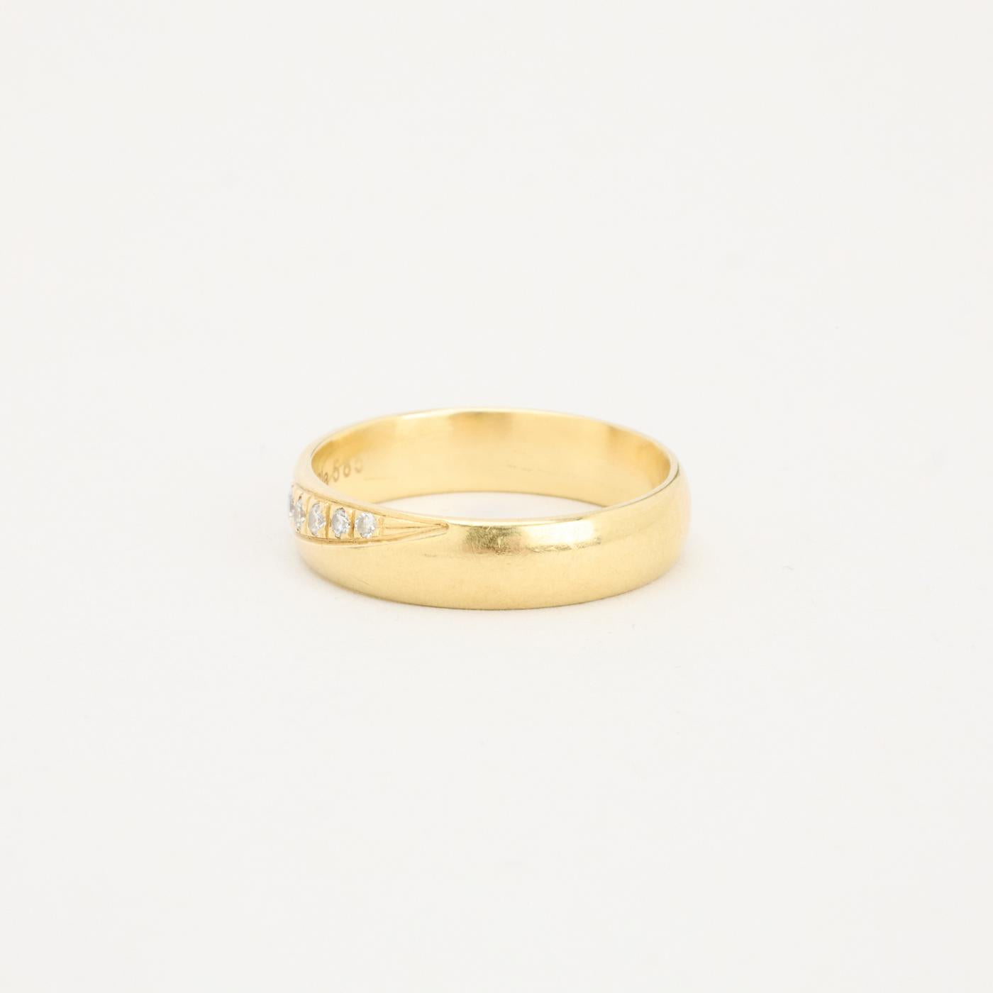 Bånd i 14K guld med hvide sten (0.11 ct), Str. 53, 3.65 g