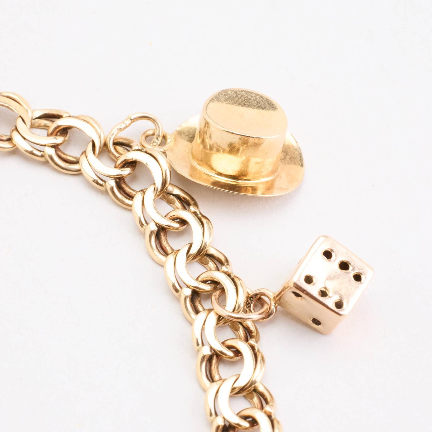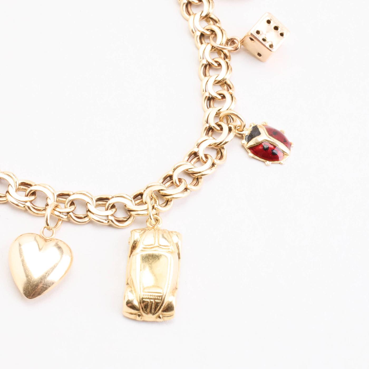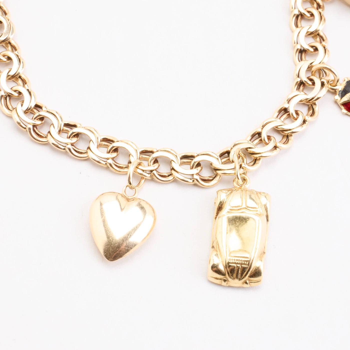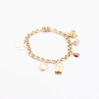 Bismarck charm-armbånd i 14K guld med røde sten, 19 cm