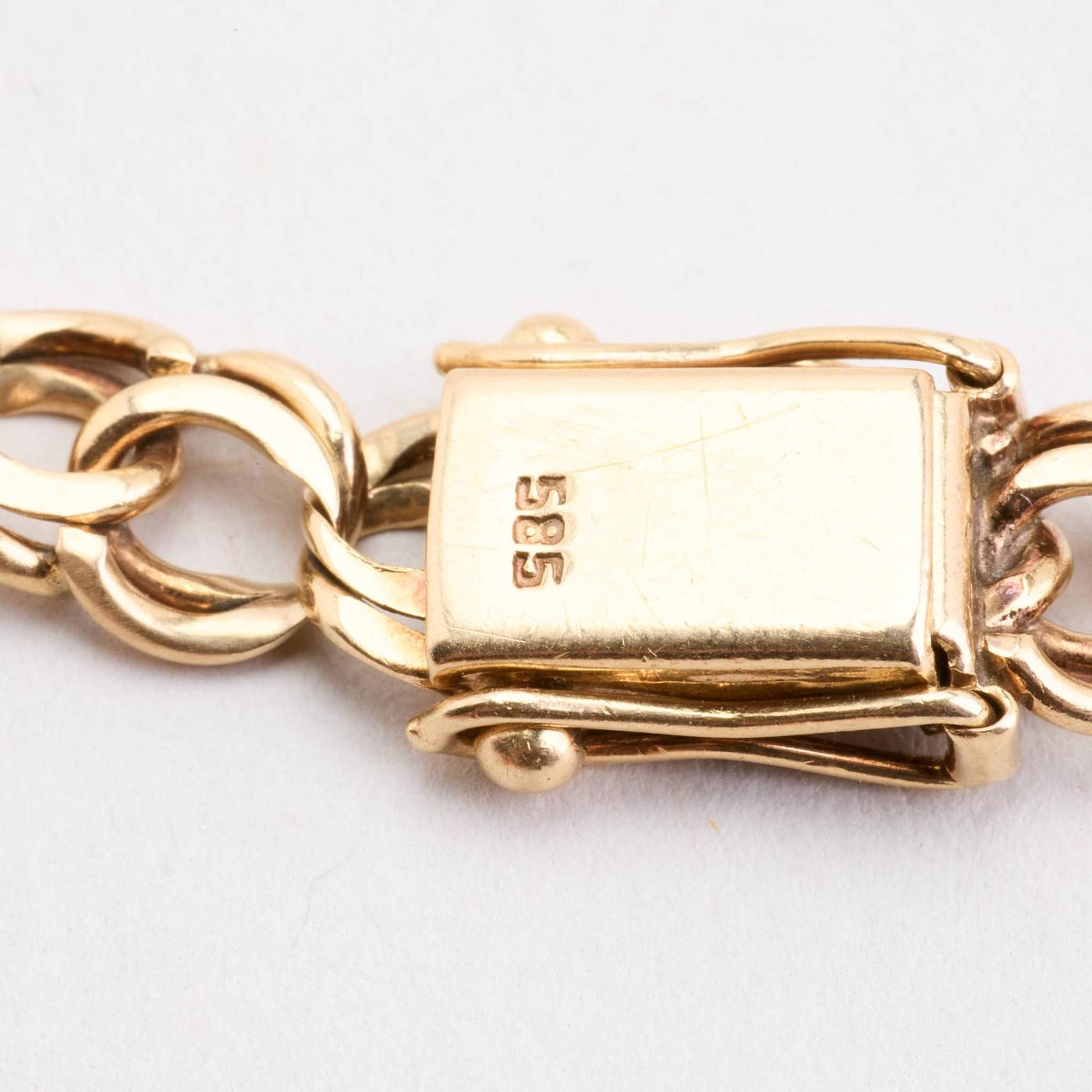 Model: Bismarck charm-armbånd i 14K guld med røde sten, 19 cm