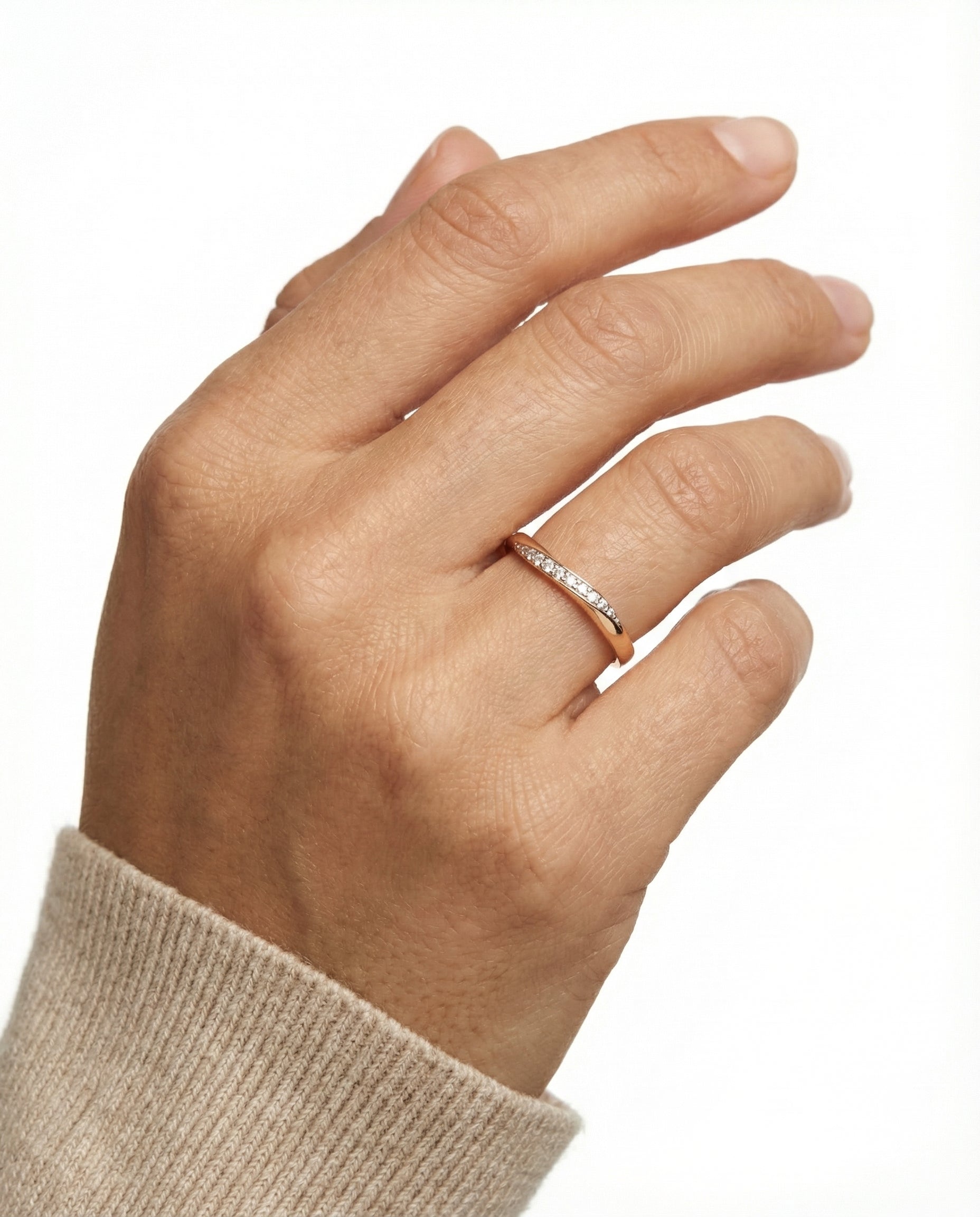 Alliancering i 14K rosaguld med en zirkonia, str. 57, 1.4 g