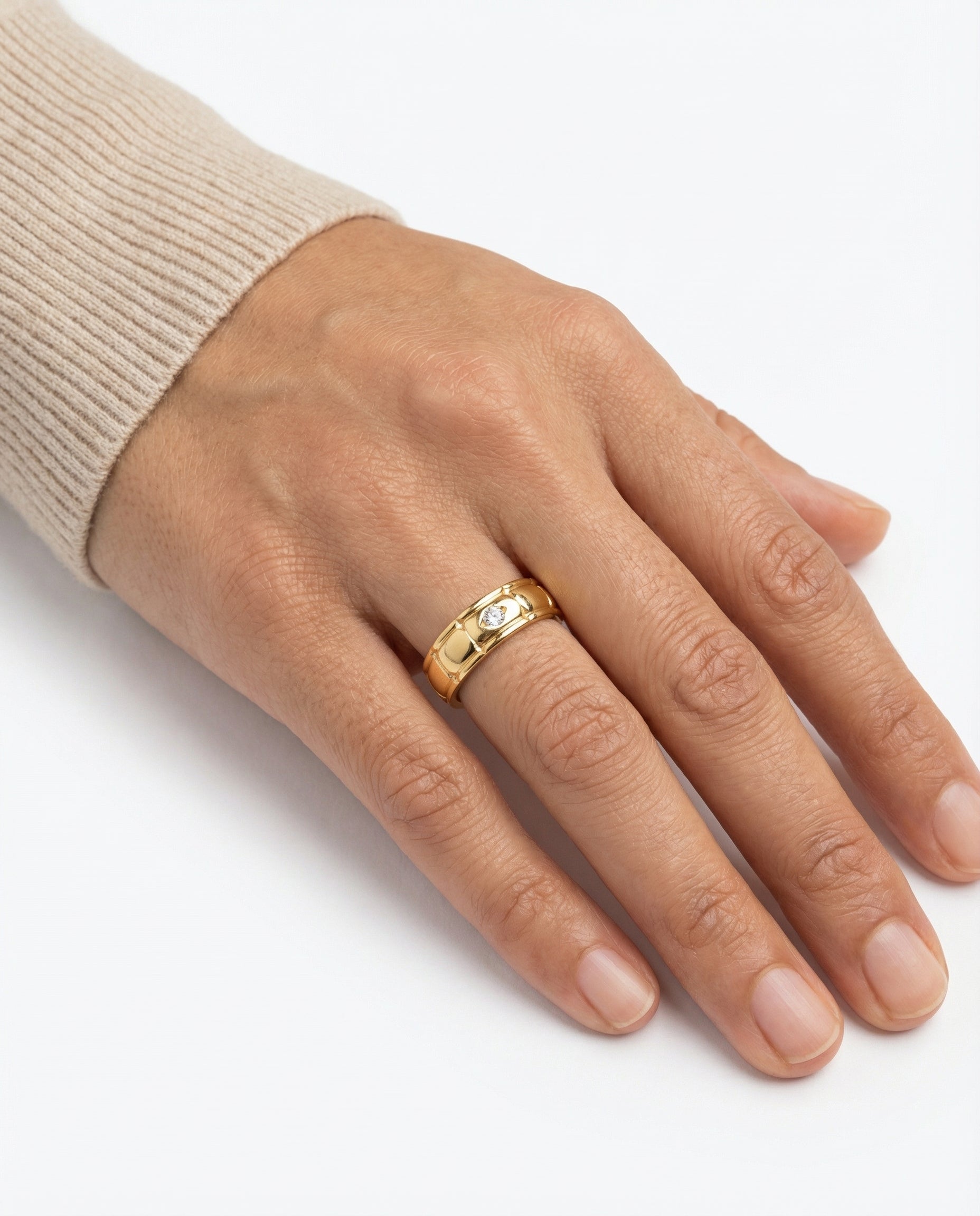 Gypsyring i 18K guld med zirkonia, Str. 54