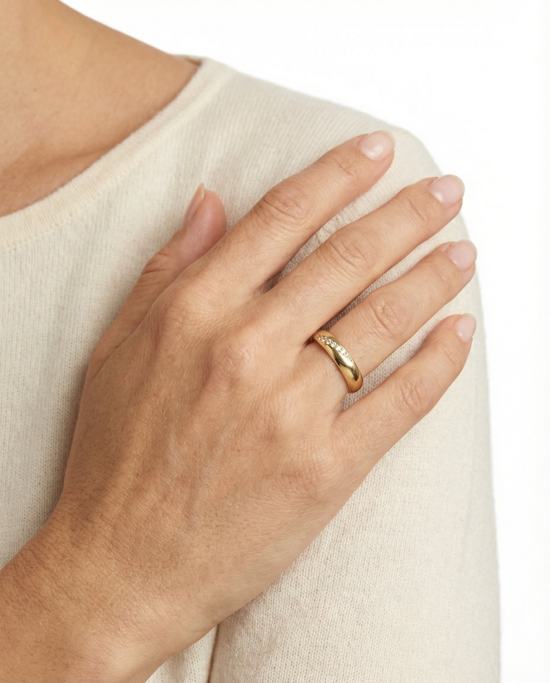 Når du får tilpasset din ring, frasiger du dig fortrydelsesretten, da smykket ændres specifikt til dig. Bemærk: Tilpassede smykker har længere leveringstid og kan tage op til en måned.