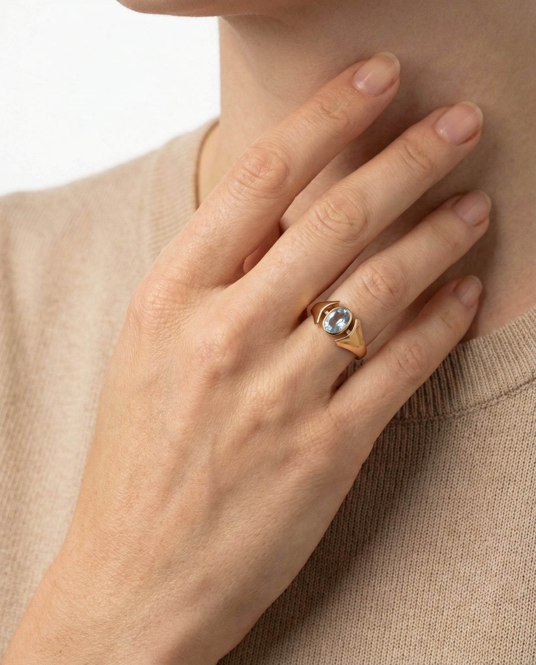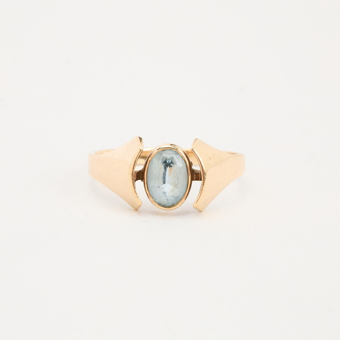 Statement ring i 8K guld med en lyseblå sten, Str. 55, 1.89 g