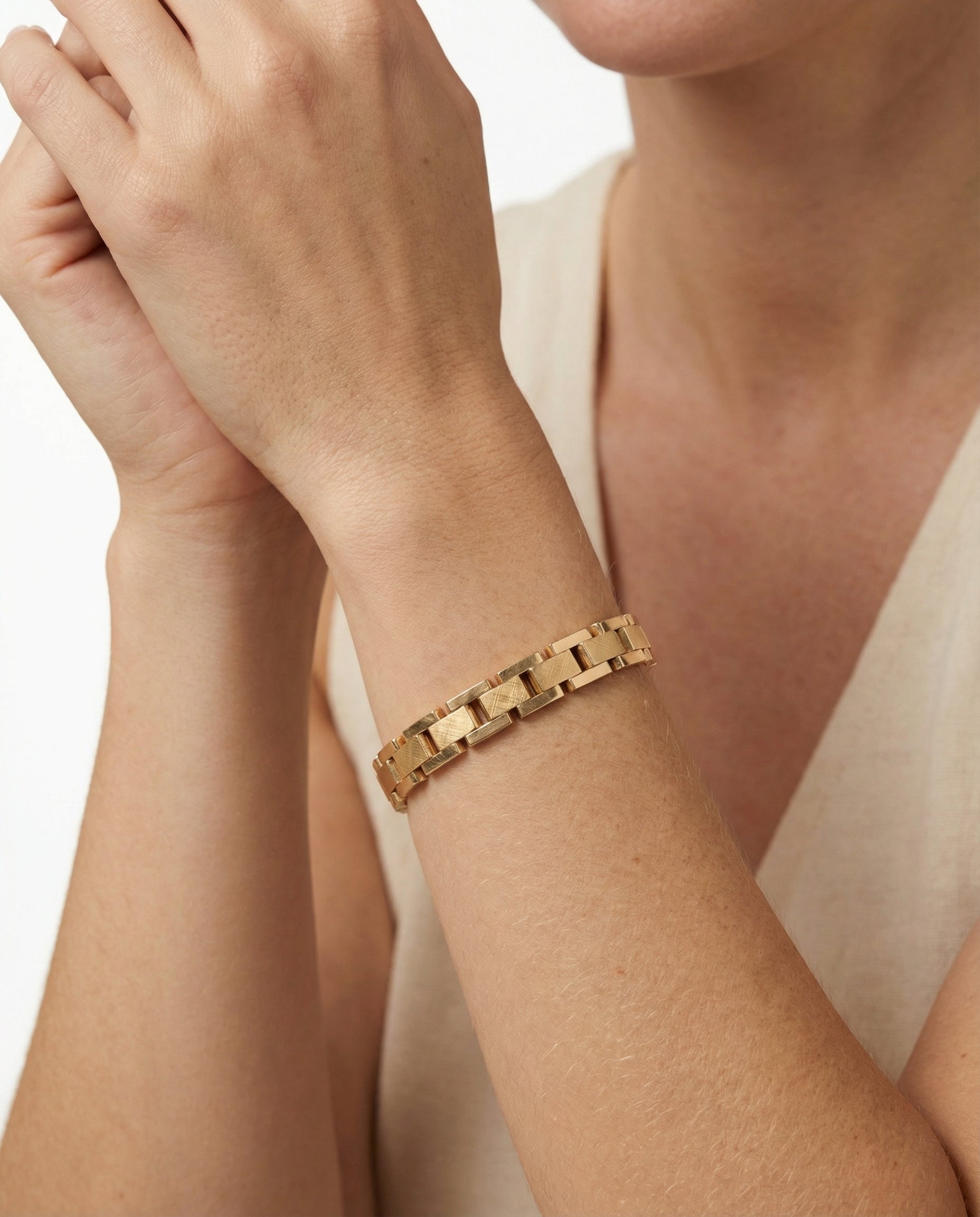 Model: Blok Armbånd i 14 karat, 18.5 cm