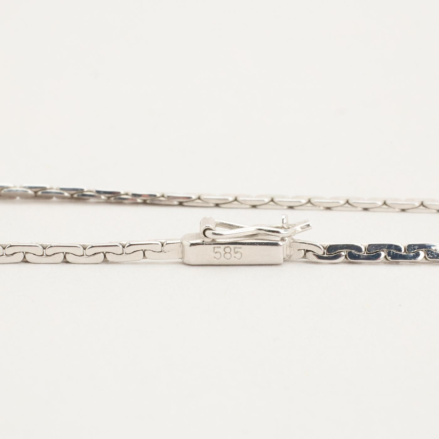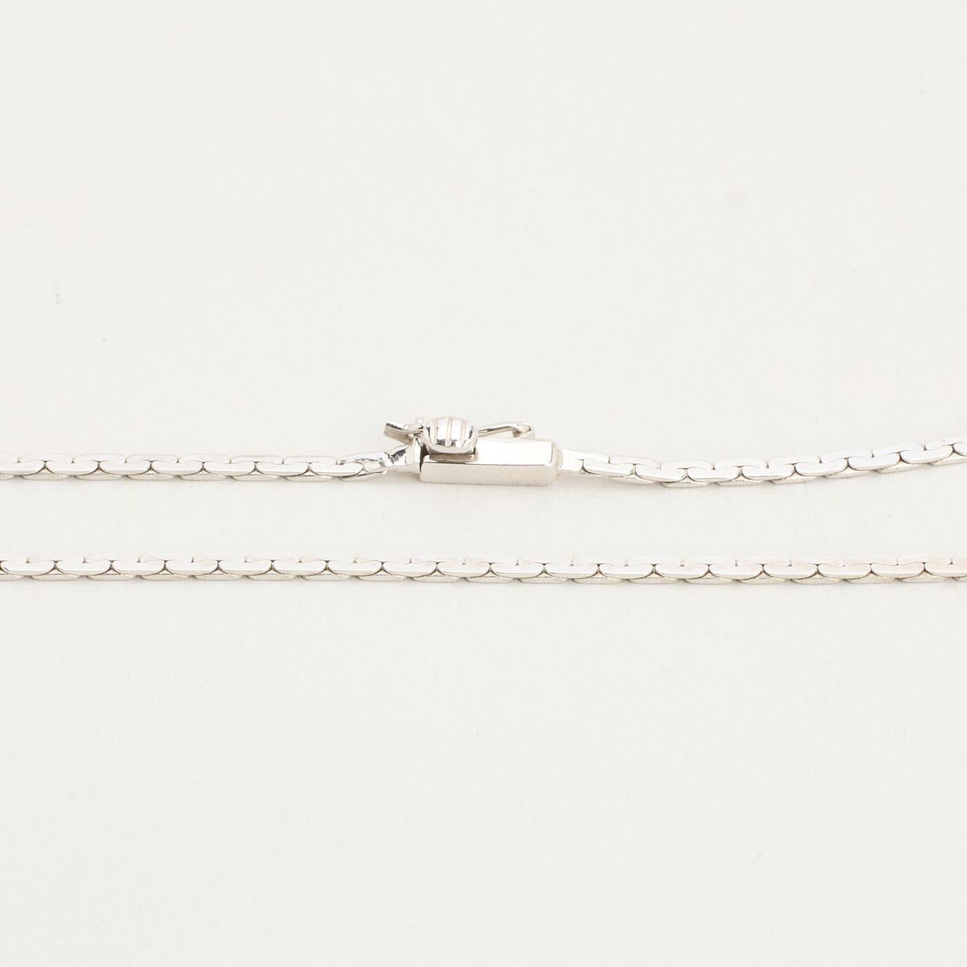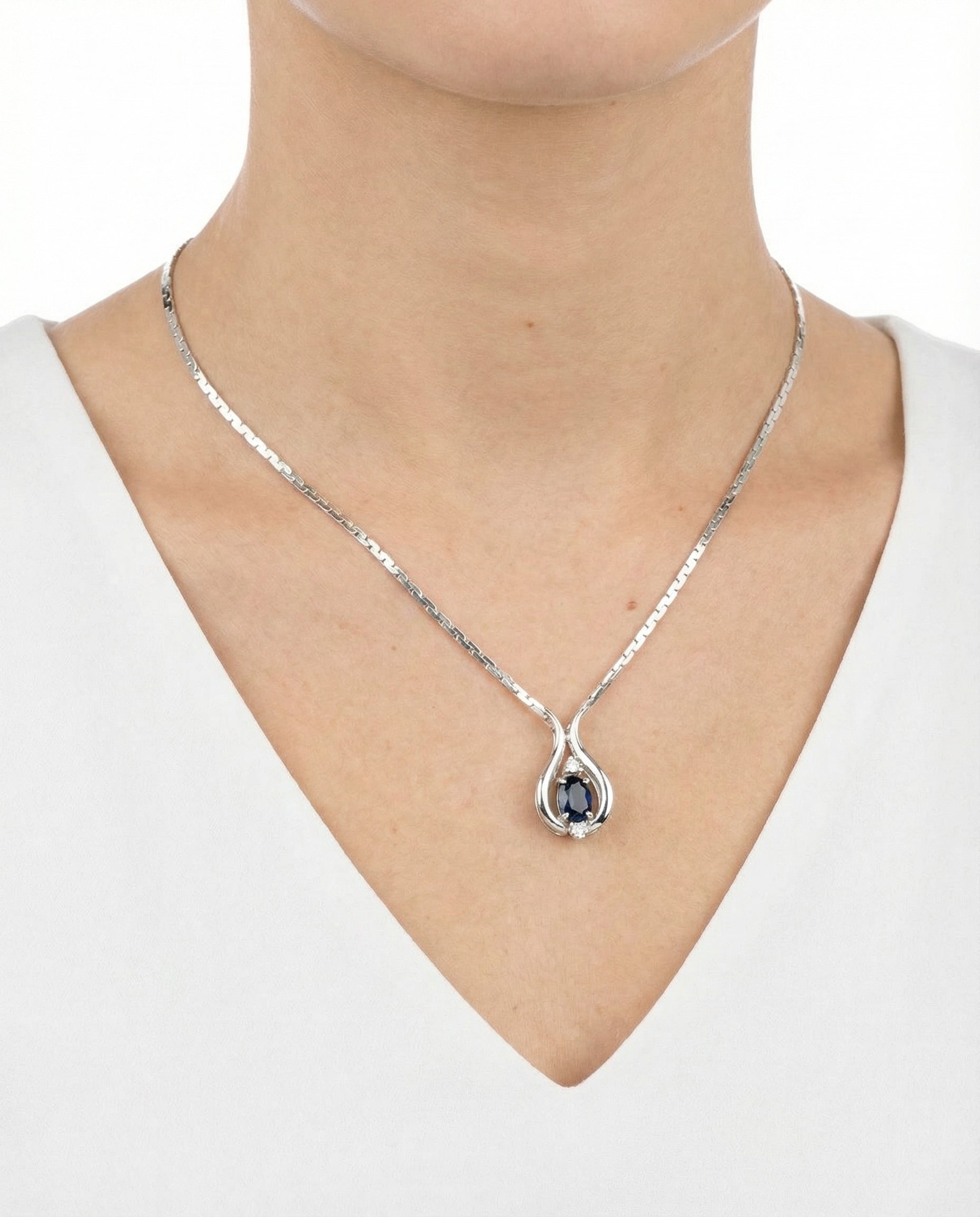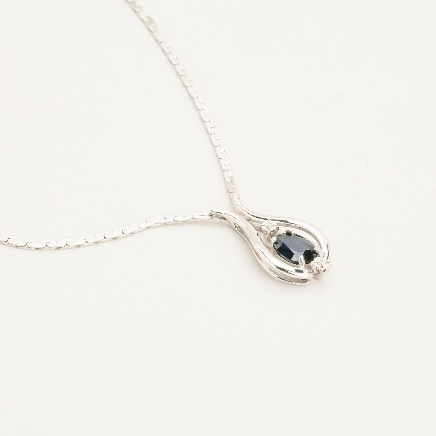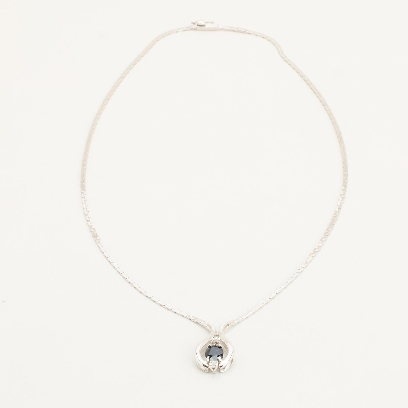 Collier i 14K hvidguld med en diamant (0.02 ct) og en safir, 43 cm