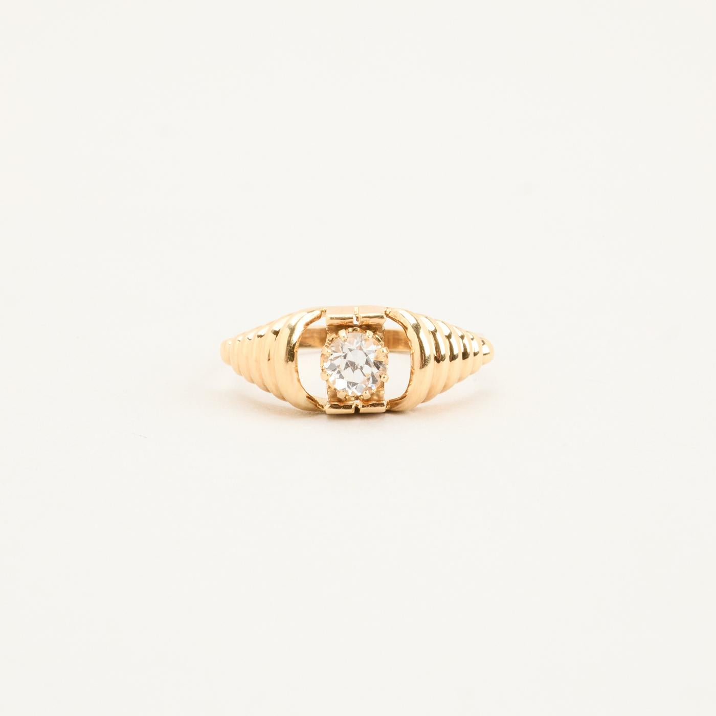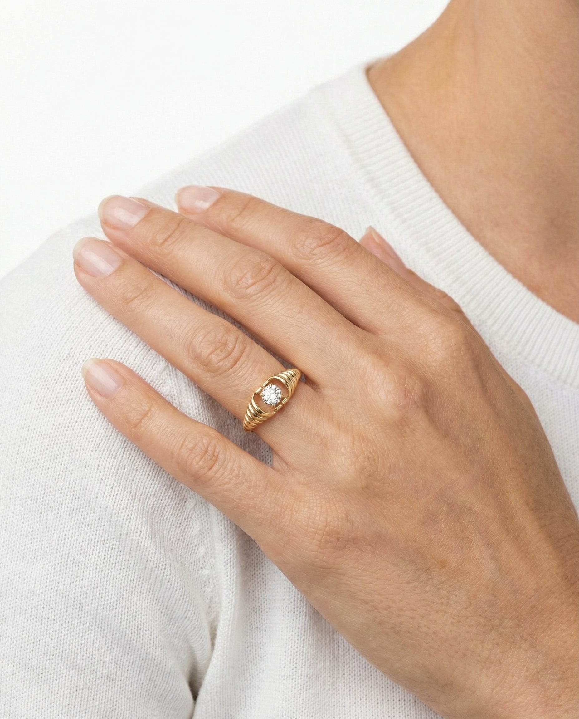 Gypsyring i 14K guld med en hvid sten, Str. 57