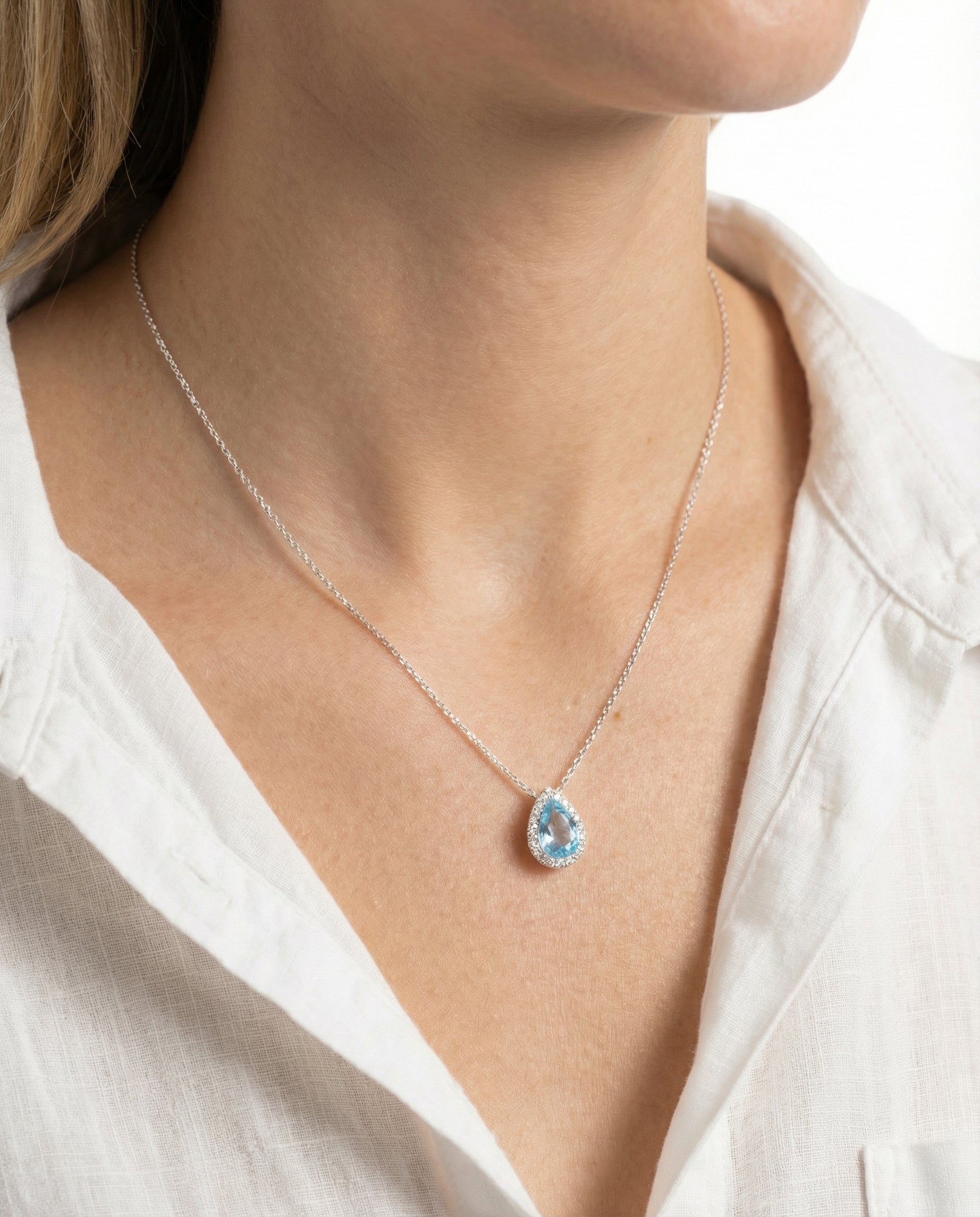 Ankerkæde i 14K hvidguld med diamanter (0.06 ct), 42 cm