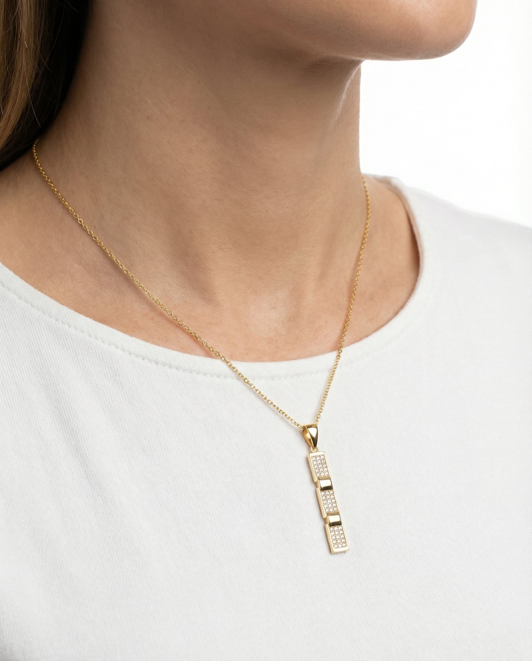 Vedhæng i 18K guld med hvide sten, 3.8 cm