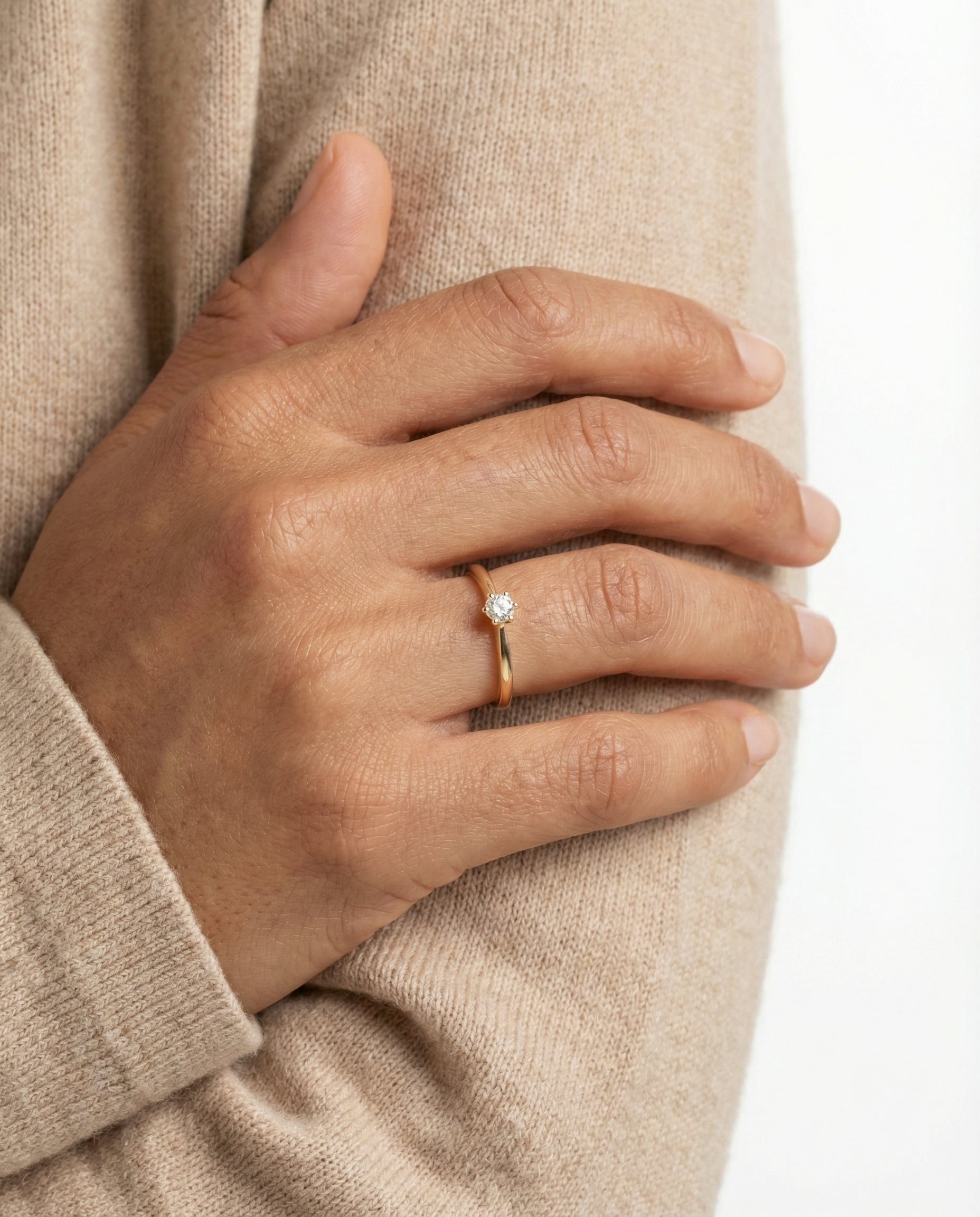 Solitairering med diamant (0.06 ct) i 14 karat str. 50
