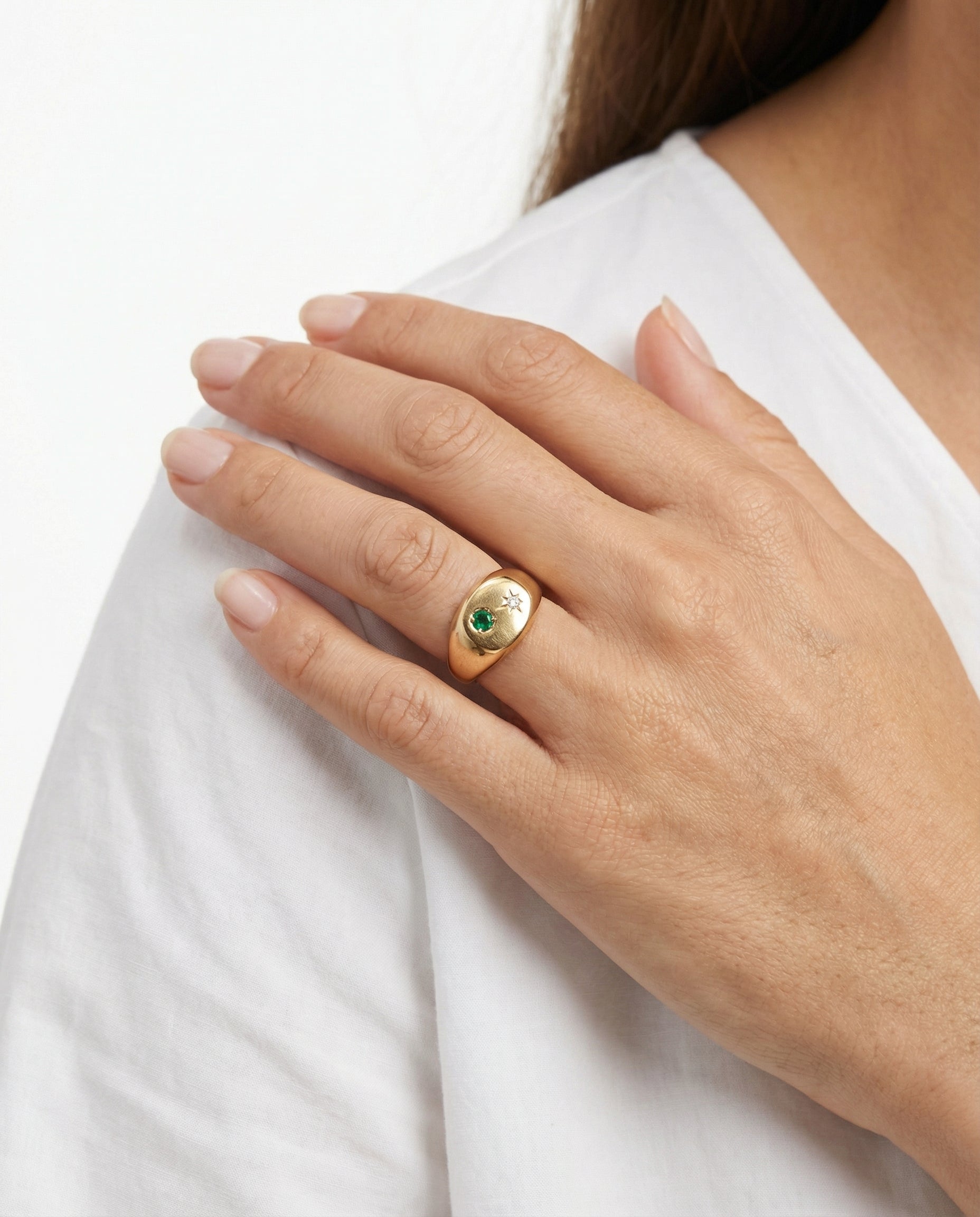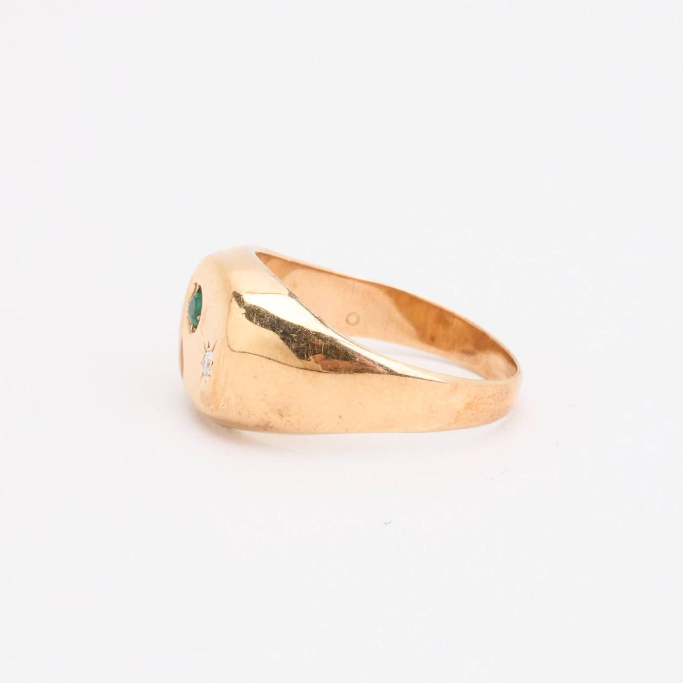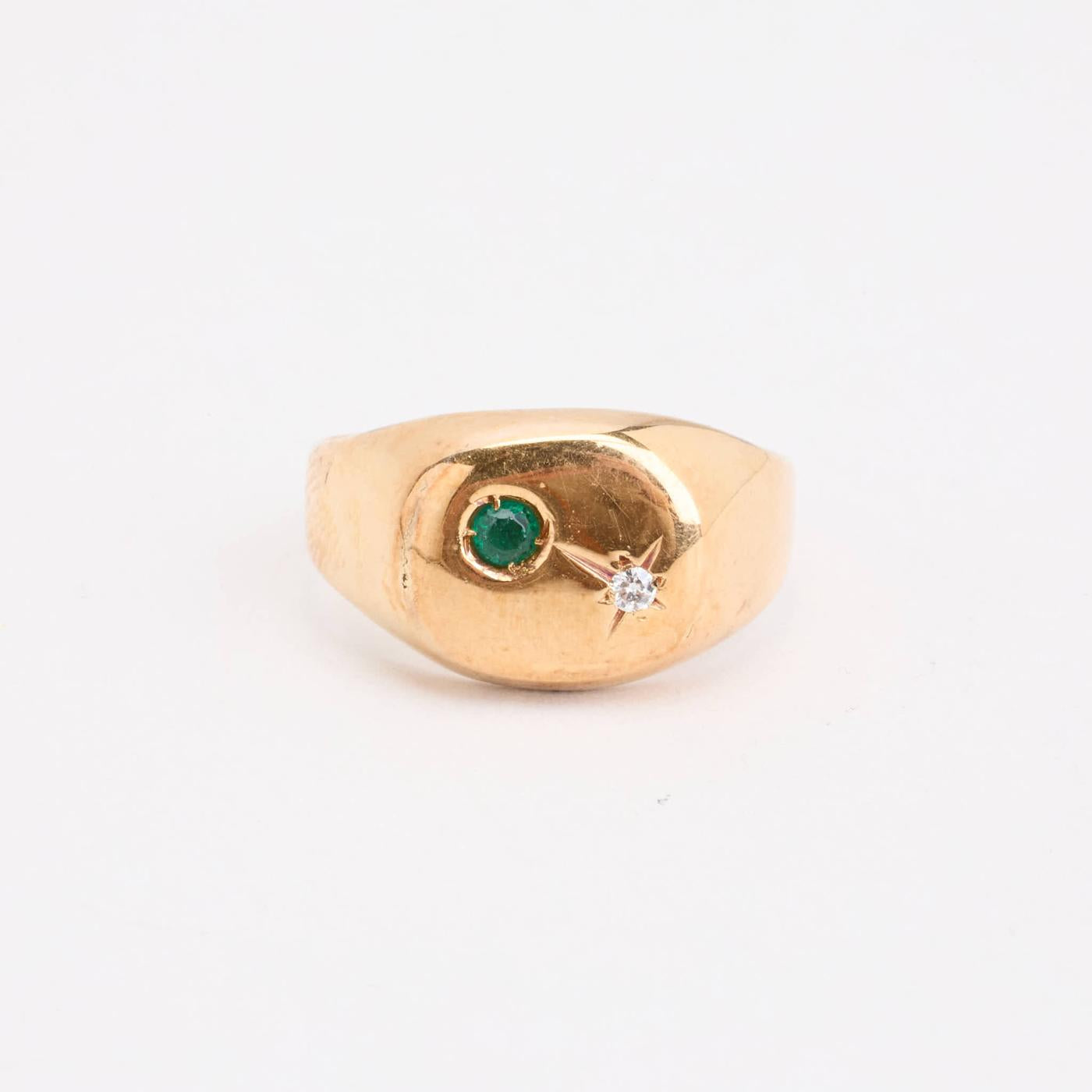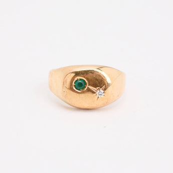 Signetring med diamant (0.01 ct) i 14 karat med en Smaragd str. 54