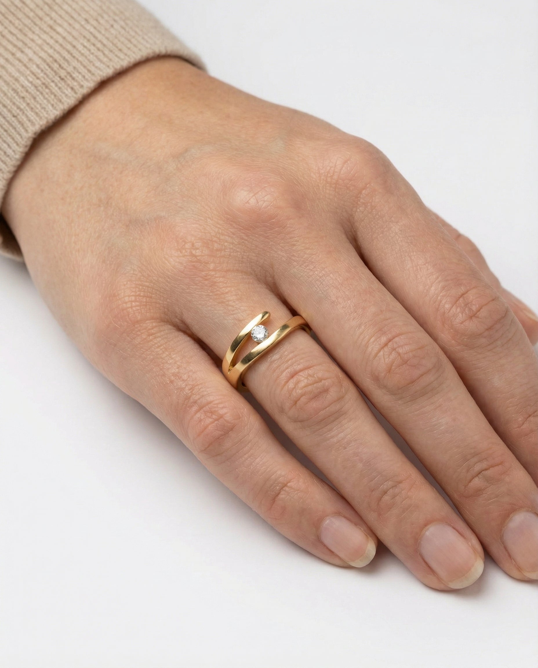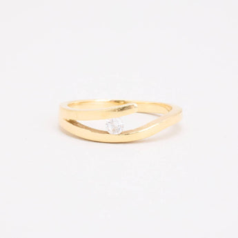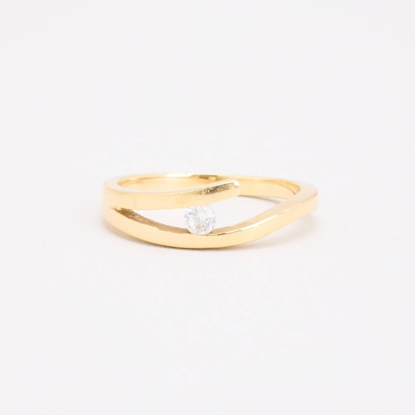 Crossoverring i 14K guld med zirkonia, Str. 55