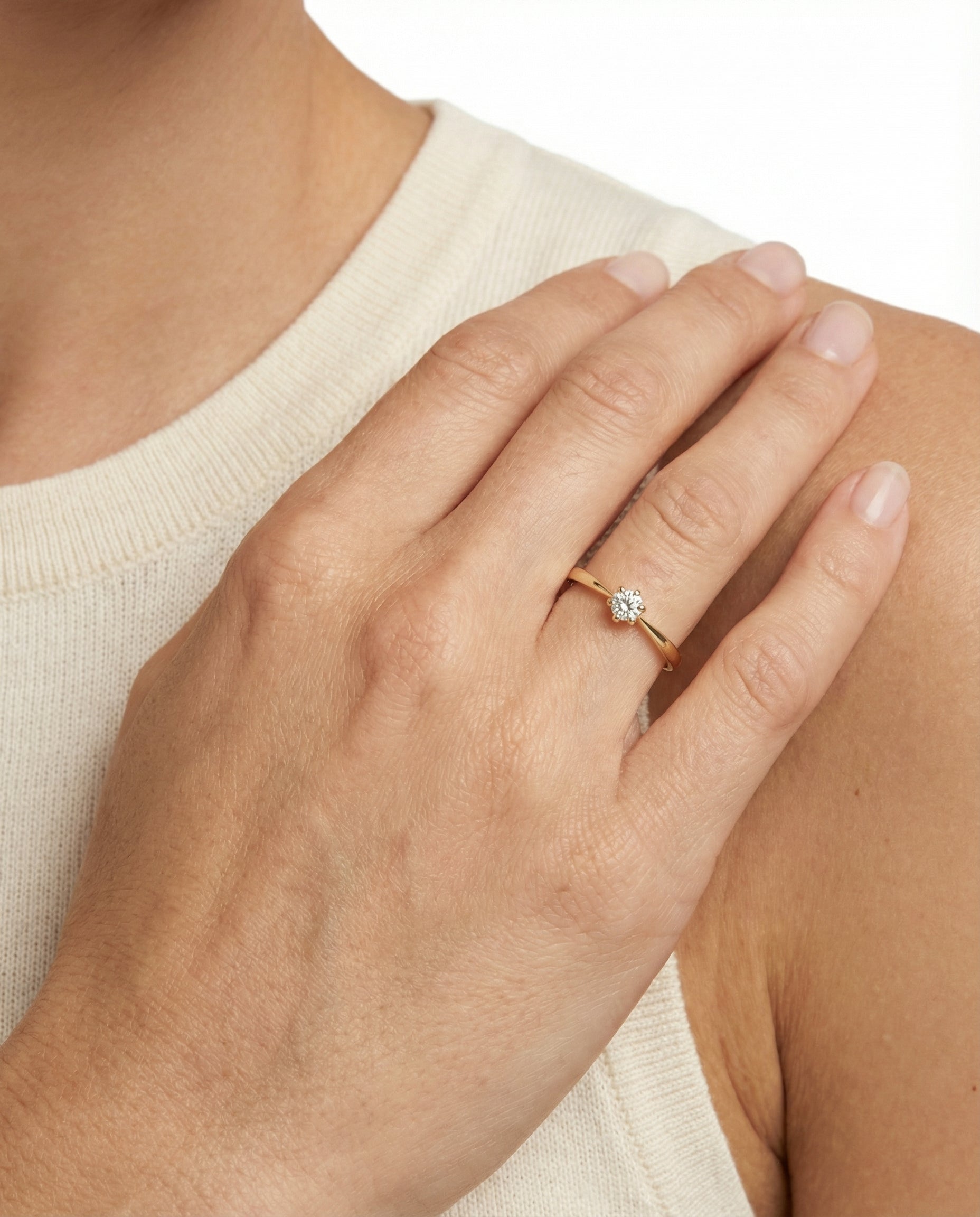 Solitairering i 14K guld med en diamant (0.05 ct), Str. 54, 1.6 g